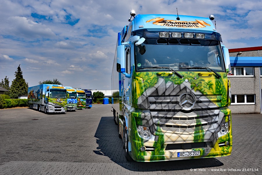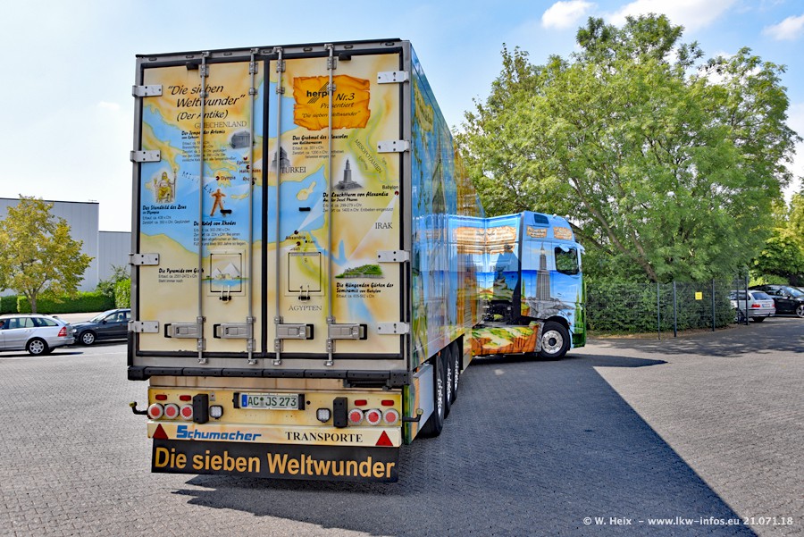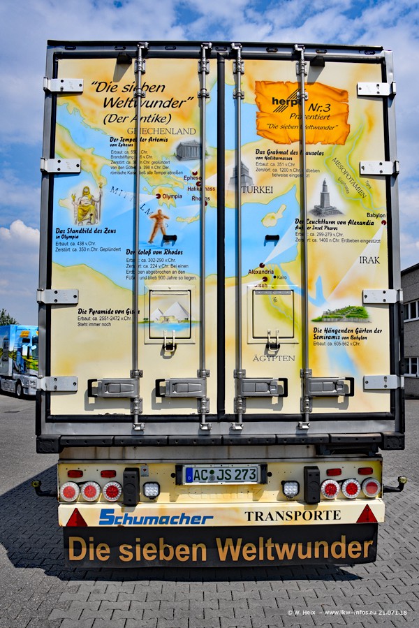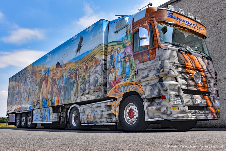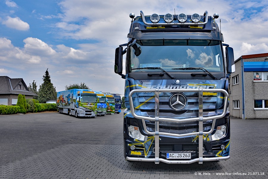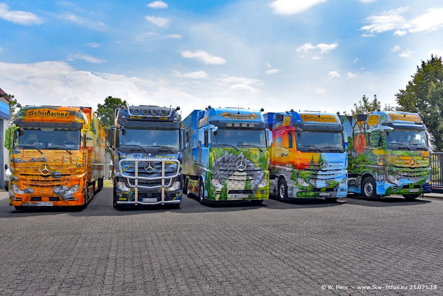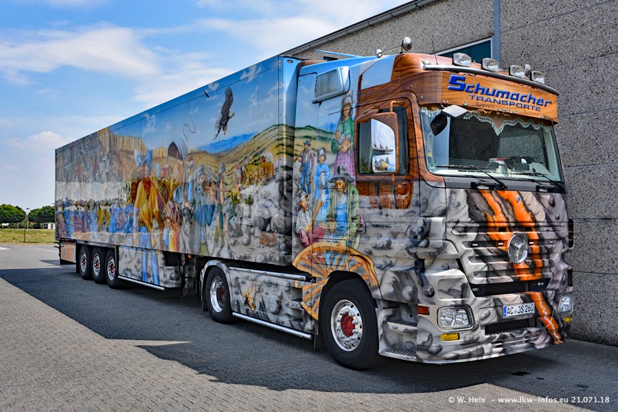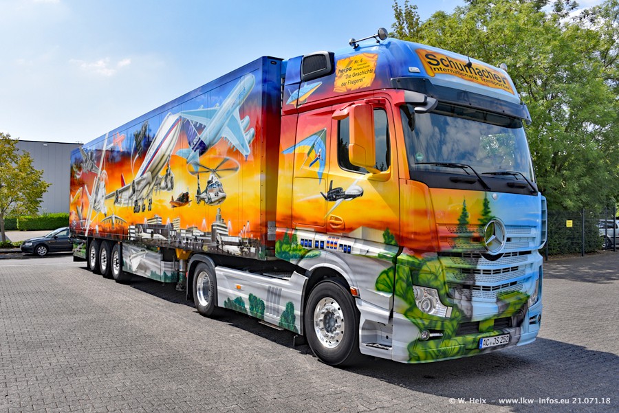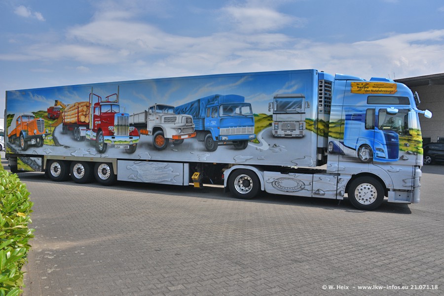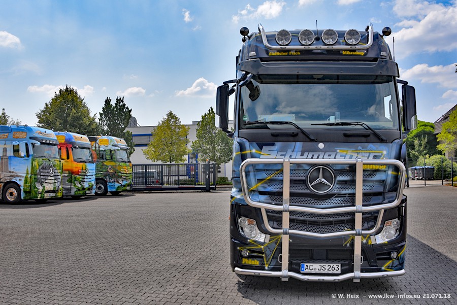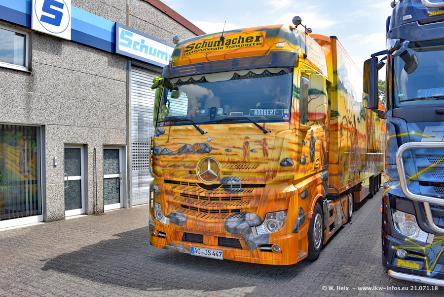 Dieser Besuch bei der Firma Schumacher war die geplante Fortsetzung des im März 2017 abgebrochenen Fotoshootings (siehe Teil 7). Diesmal war das Wetter perfekt und wir hatten genug Zeit. Ich habe nur die Showtrucks der Herpa-Serie "Herpa präsentiert Weltgeschichte..." fotografiert, diie normalen weißen LKW habe ich nicht berücksichtigt. Der größte Teil steht auch auf einem anderen Gelände in Würselen.