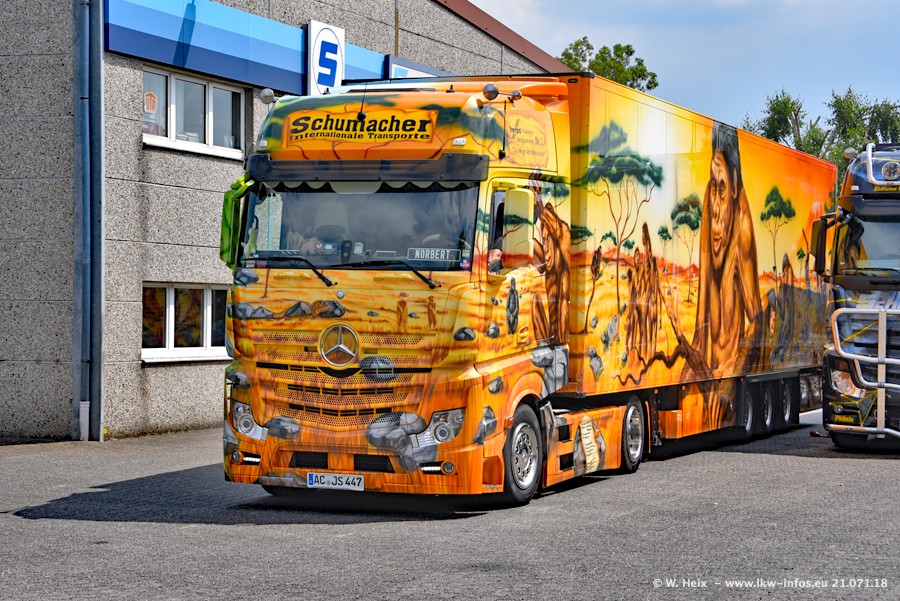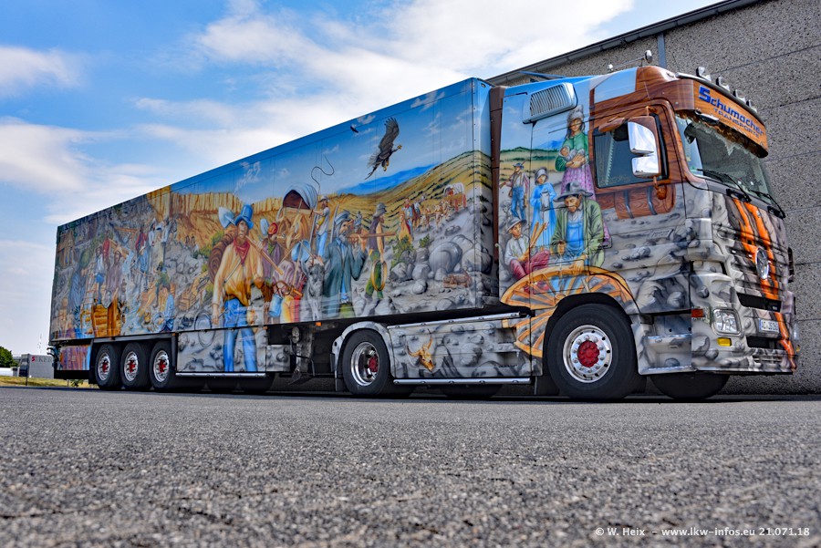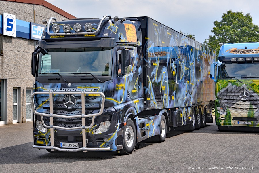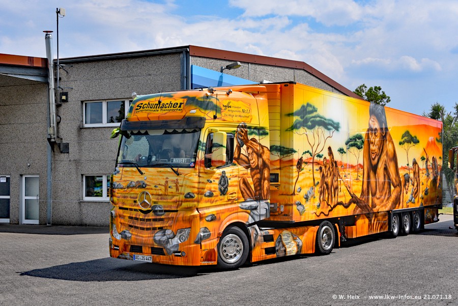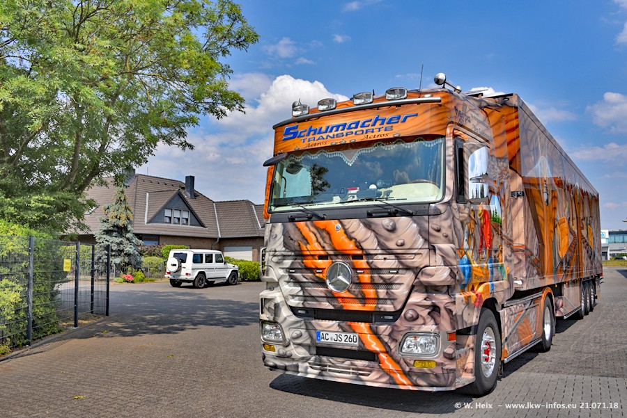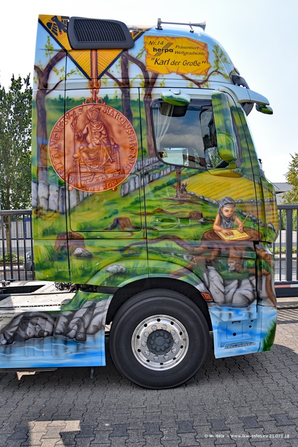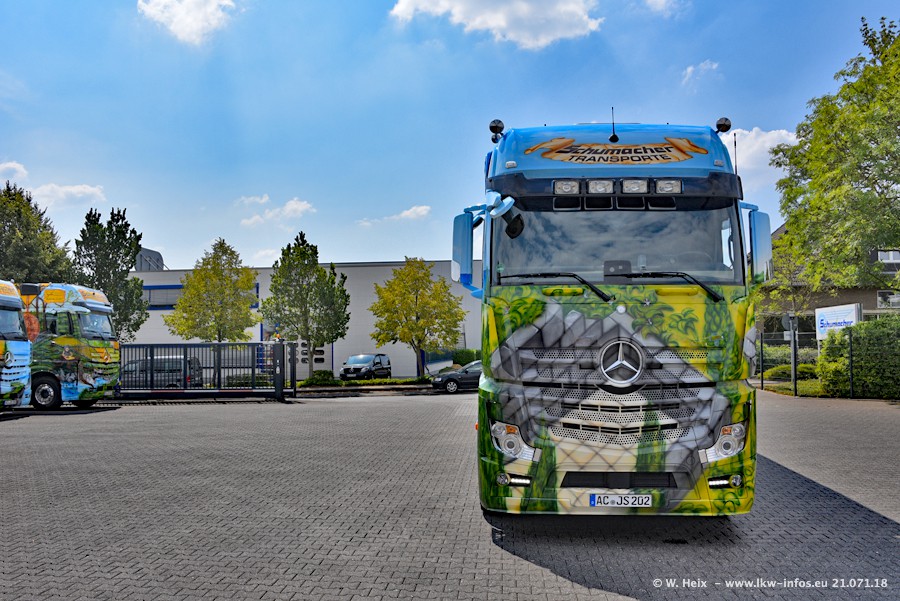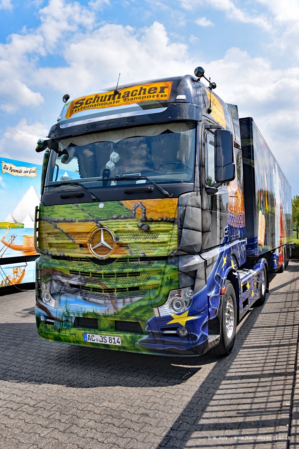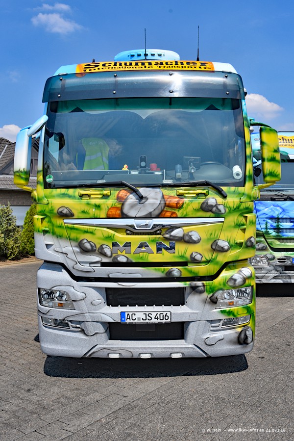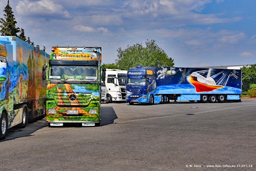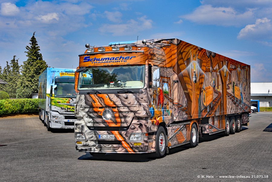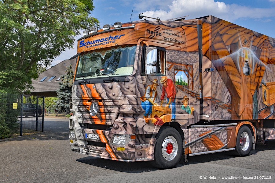 Dieser Besuch bei der Firma Schumacher war die geplante Fortsetzung des im März 2017 abgebrochenen Fotoshootings (siehe Teil 7). Diesmal war das Wetter perfekt und wir hatten genug Zeit. Ich habe nur die Showtrucks der Herpa-Serie "Herpa präsentiert Weltgeschichte..." fotografiert, diie normalen weißen LKW habe ich nicht berücksichtigt. Der größte Teil steht auch auf einem anderen Gelände in Würselen.