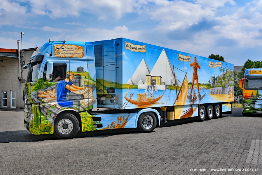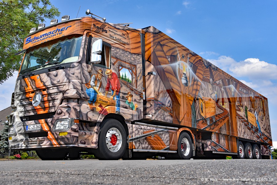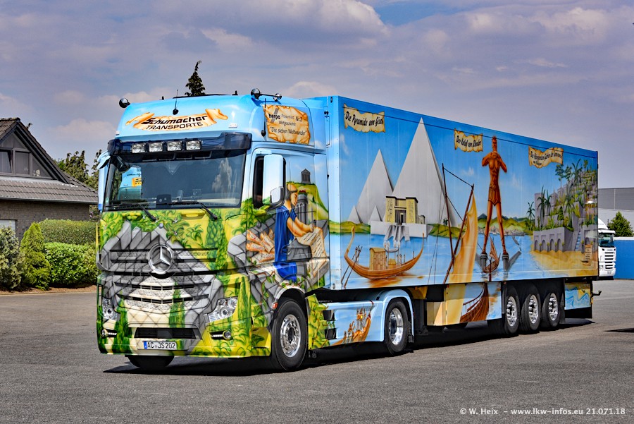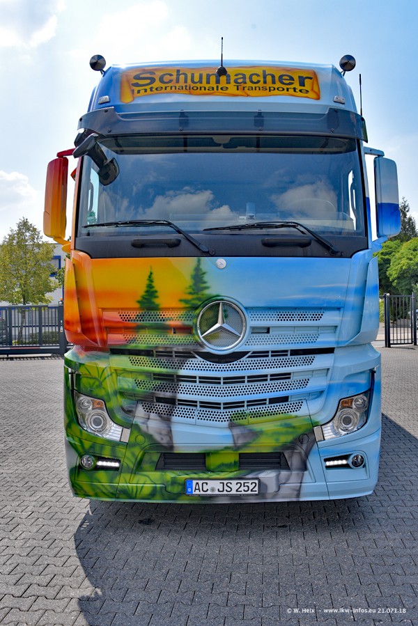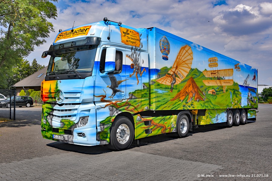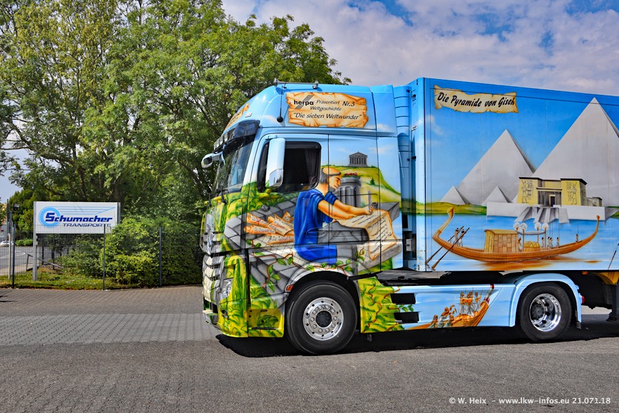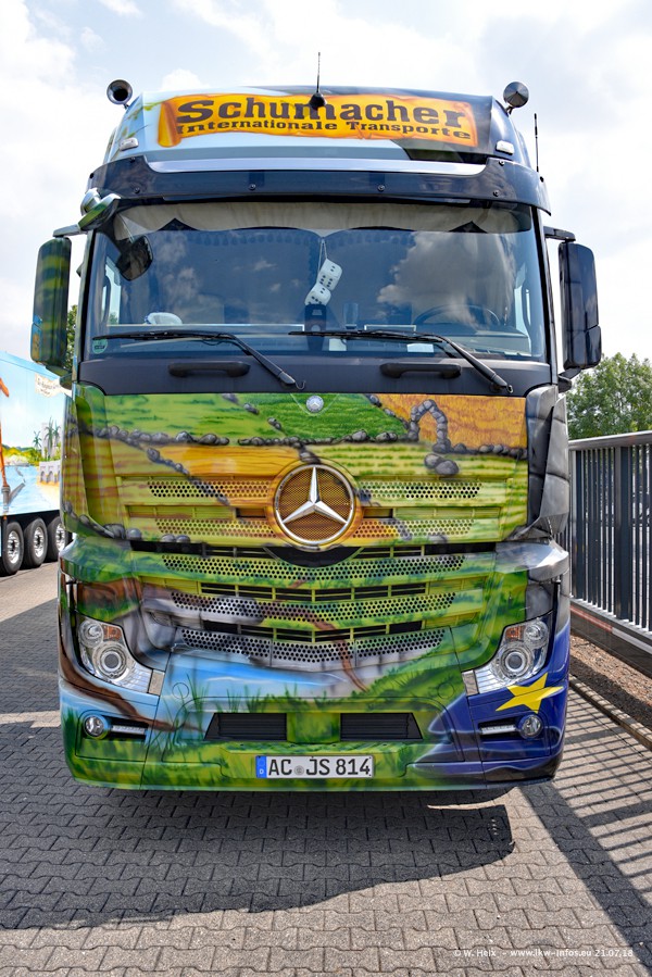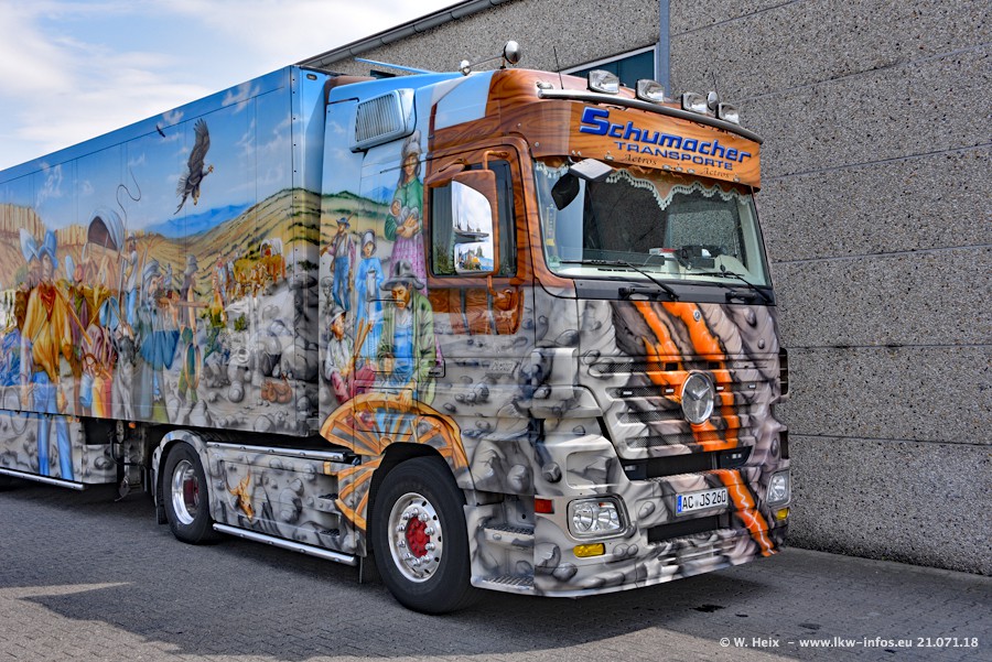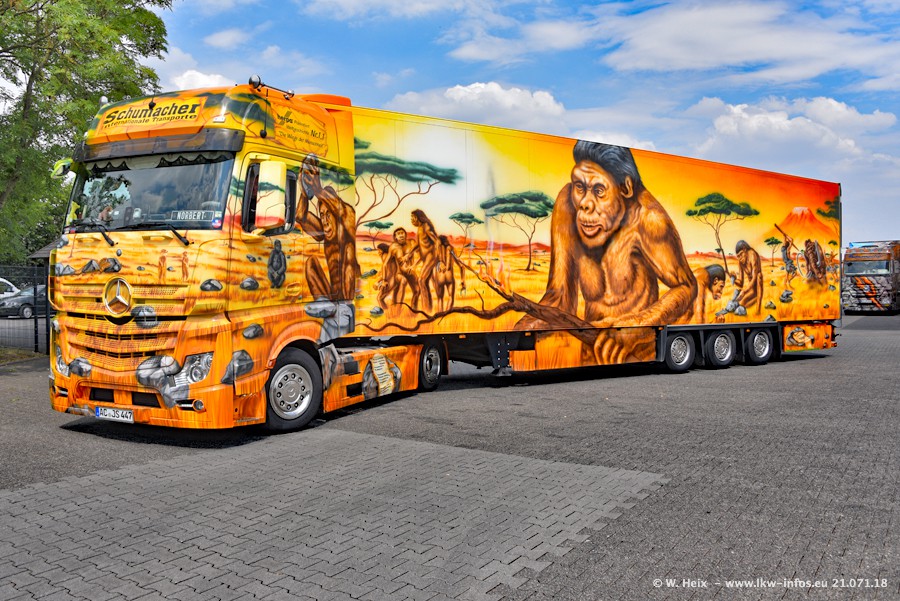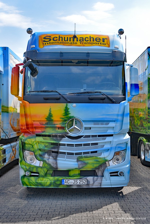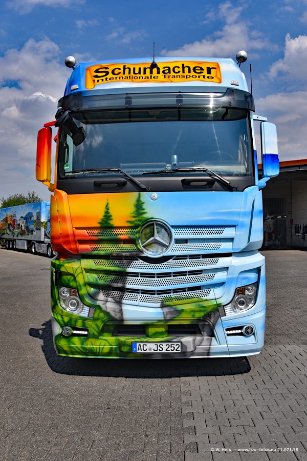 Dieser Besuch bei der Firma Schumacher war die geplante Fortsetzung des im März 2017 abgebrochenen Fotoshootings (siehe Teil 7). Diesmal war das Wetter perfekt und wir hatten genug Zeit. Ich habe nur die Showtrucks der Herpa-Serie "Herpa präsentiert Weltgeschichte..." fotografiert, diie normalen weißen LKW habe ich nicht berücksichtigt. Der größte Teil steht auch auf einem anderen Gelände in Würselen.