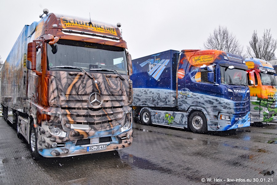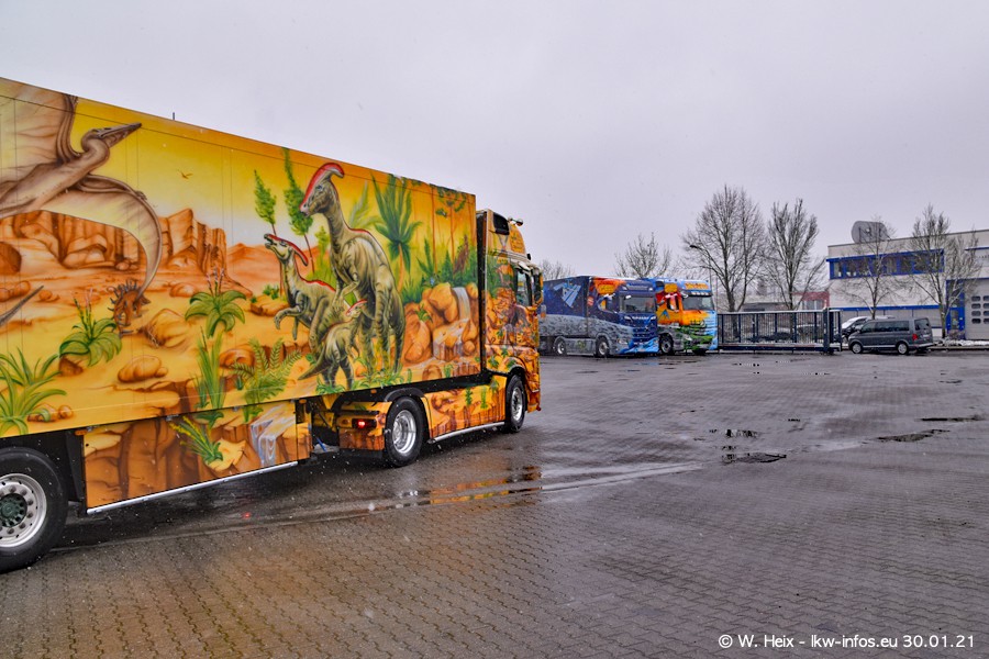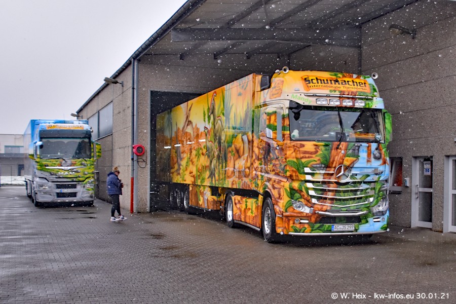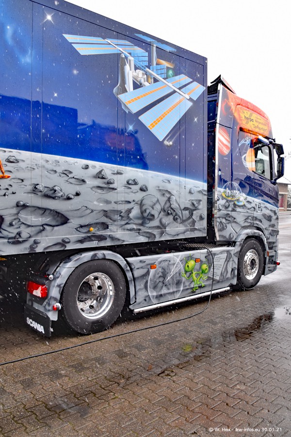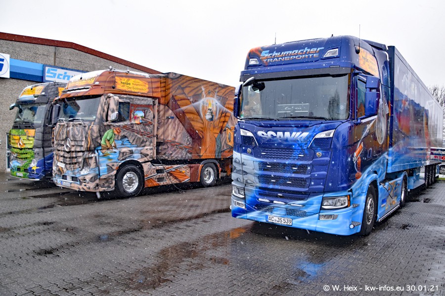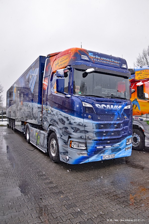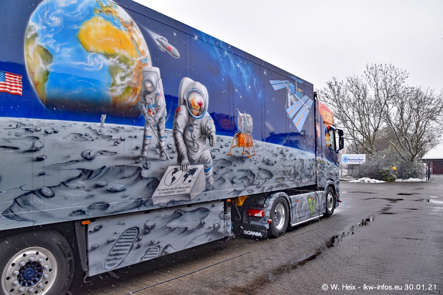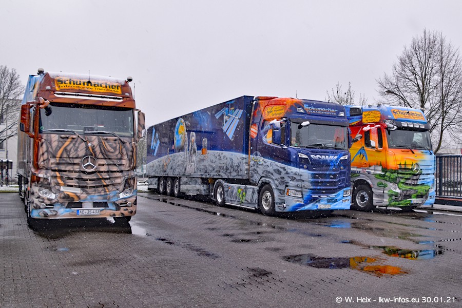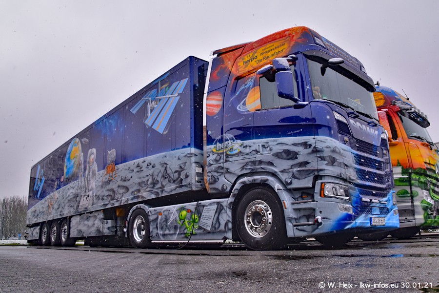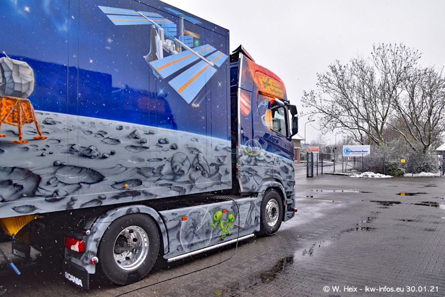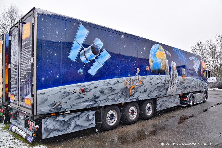 Der letzte Besuch bei Spedition Schumacher liegt fast drei Jahre zurück. Der Besuch war spontan und wegen des schlechten Wetters eigentlich nicht geplant. Und auch wenn nicht alle Showtrucks zuhause waren: Vier neue Zugmaschinen konnte ich fotografieren, darunter auch der SCANIA S NextGen "Herpa präsentiert Weltgeschichte - die Raumfahrt". Das entsprechende Modell von Herpa ist seit einigen Wochen im Handel. Die Bilder beschränken sich weitgehend auf die Showtrucks. Der größte Teil der "normalen" LKW steht auf anderen Höfen in Würselen. Ein weiterer Besuch bei besserem Wetter ist für den Frühling geplant.