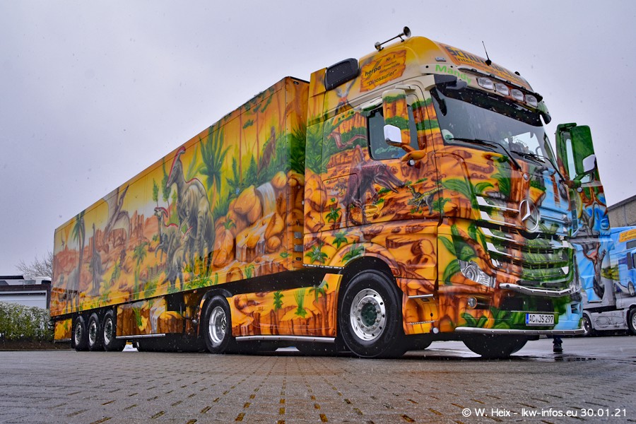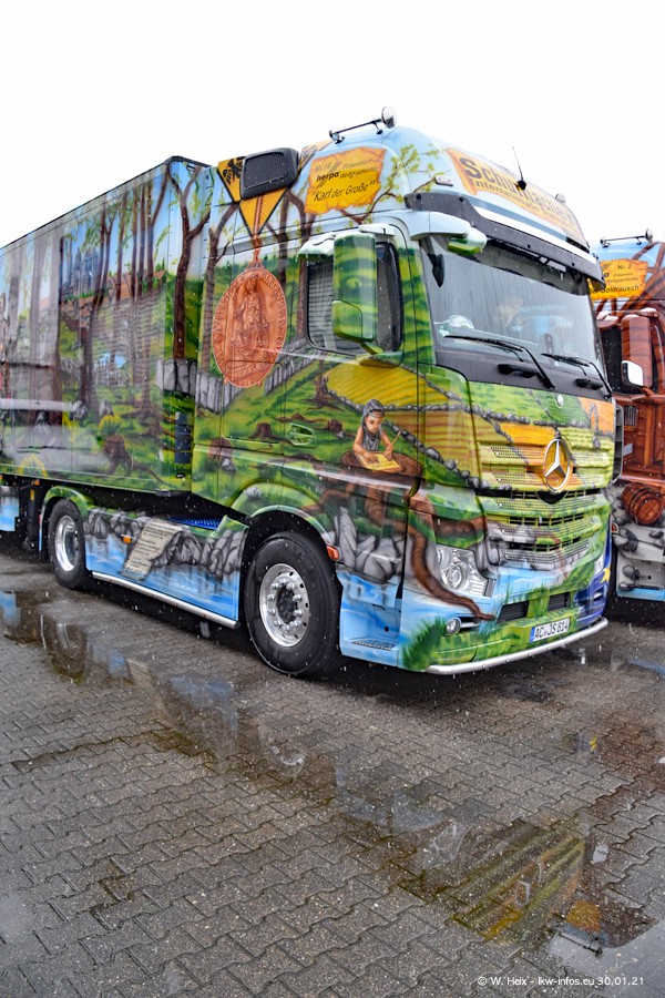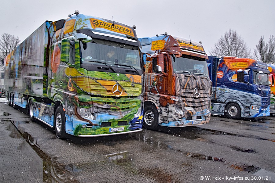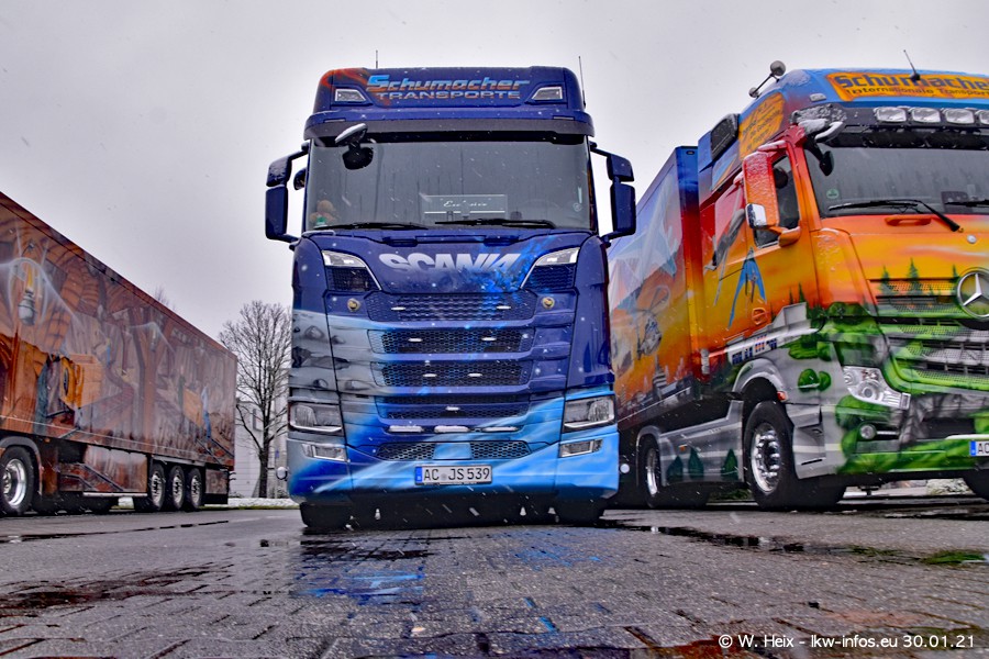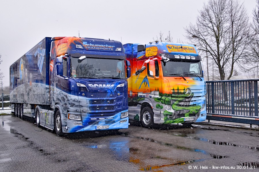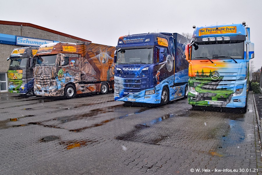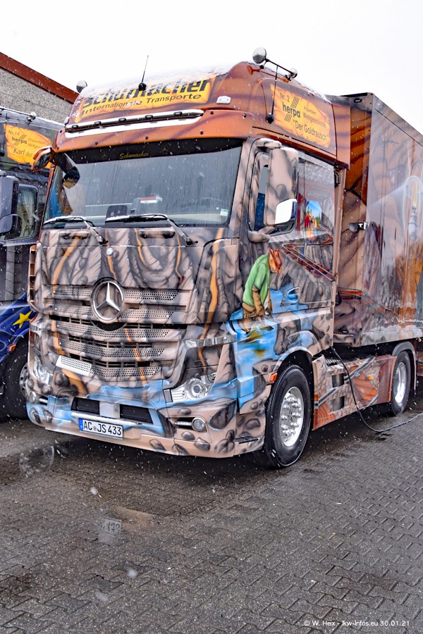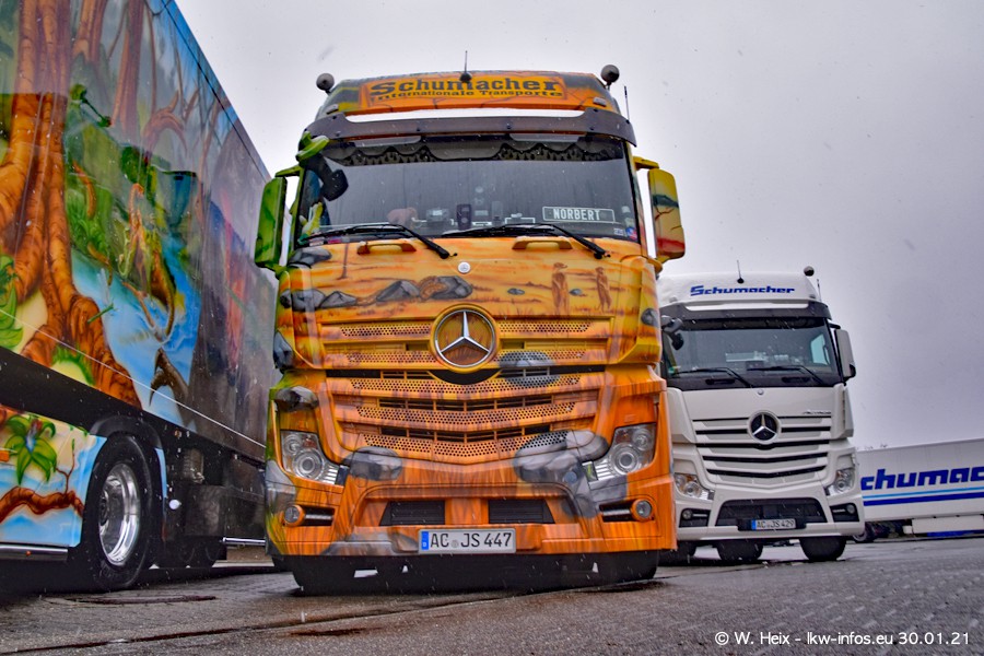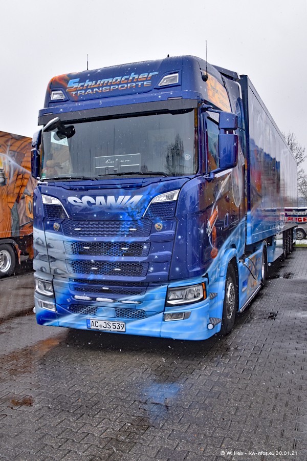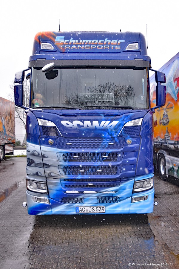 Der letzte Besuch bei Spedition Schumacher liegt fast drei Jahre zurück. Der Besuch war spontan und wegen des schlechten Wetters eigentlich nicht geplant. Und auch wenn nicht alle Showtrucks zuhause waren: Vier neue Zugmaschinen konnte ich fotografieren, darunter auch der SCANIA S NextGen "Herpa präsentiert Weltgeschichte - die Raumfahrt". Das entsprechende Modell von Herpa ist seit einigen Wochen im Handel. Die Bilder beschränken sich weitgehend auf die Showtrucks. Der größte Teil der "normalen" LKW steht auf anderen Höfen in Würselen. Ein weiterer Besuch bei besserem Wetter ist für den Frühling geplant.