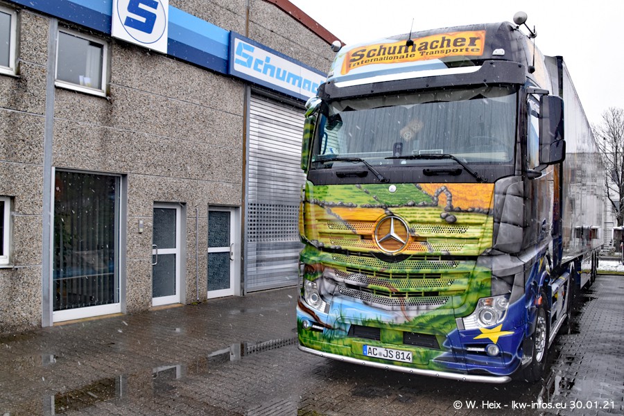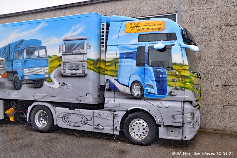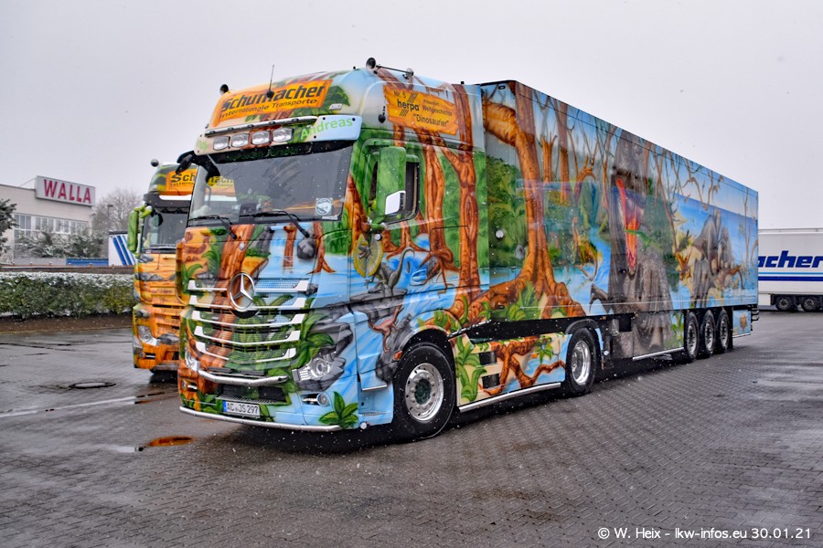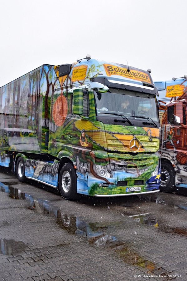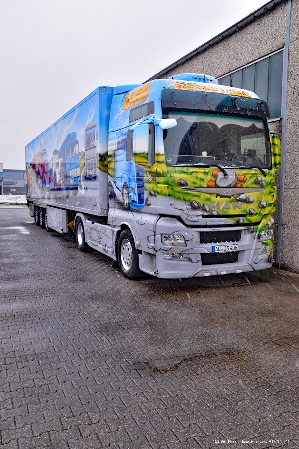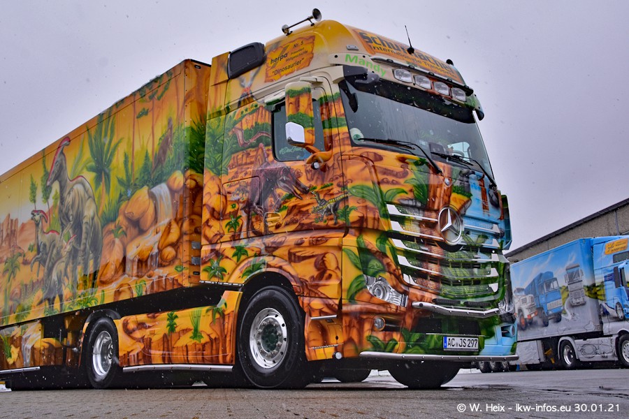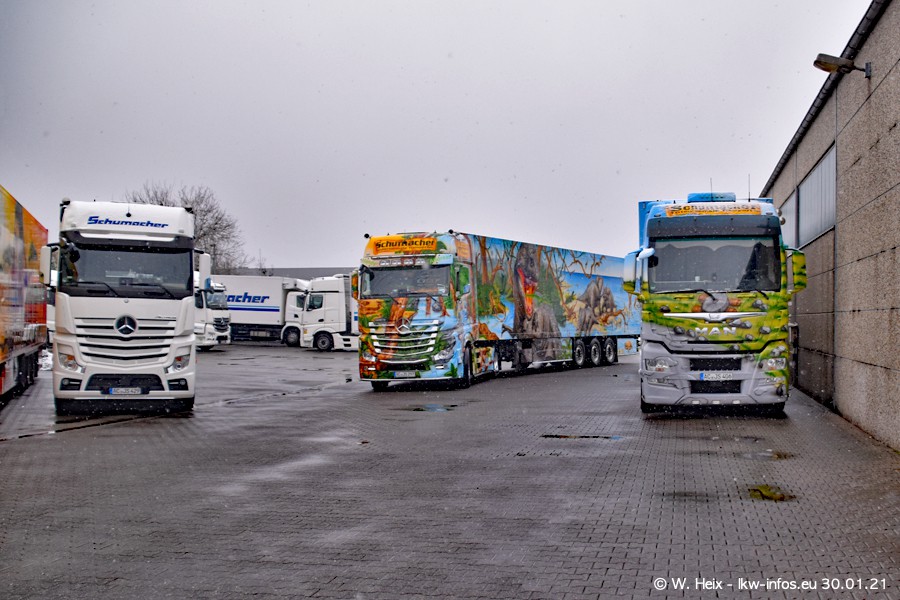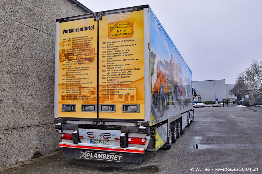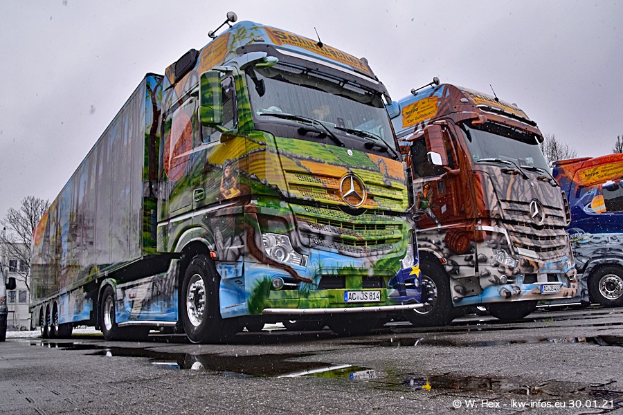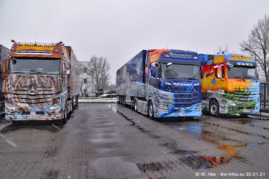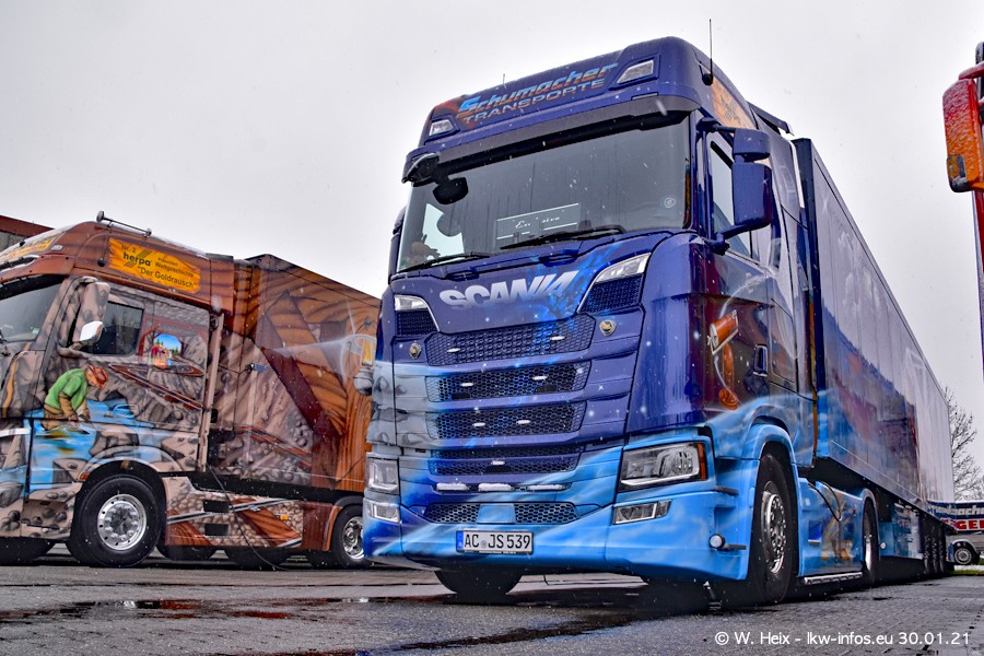 Der letzte Besuch bei Spedition Schumacher liegt fast drei Jahre zurück. Der Besuch war spontan und wegen des schlechten Wetters eigentlich nicht geplant. Und auch wenn nicht alle Showtrucks zuhause waren: Vier neue Zugmaschinen konnte ich fotografieren, darunter auch der SCANIA S NextGen "Herpa präsentiert Weltgeschichte - die Raumfahrt". Das entsprechende Modell von Herpa ist seit einigen Wochen im Handel. Die Bilder beschränken sich weitgehend auf die Showtrucks. Der größte Teil der "normalen" LKW steht auf anderen Höfen in Würselen. Ein weiterer Besuch bei besserem Wetter ist für den Frühling geplant.