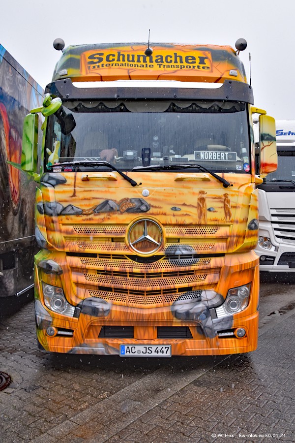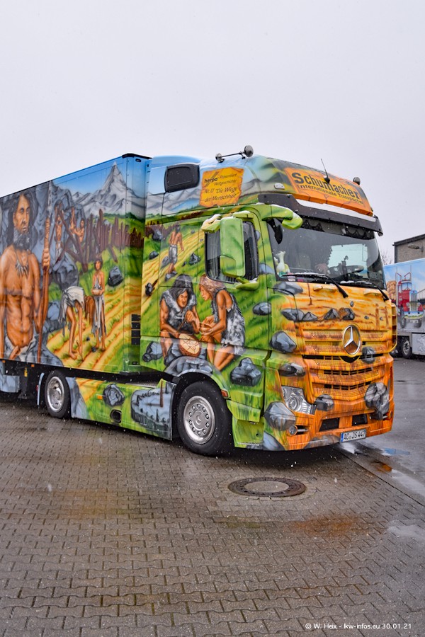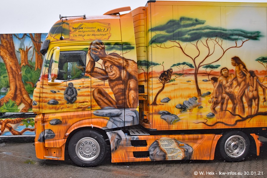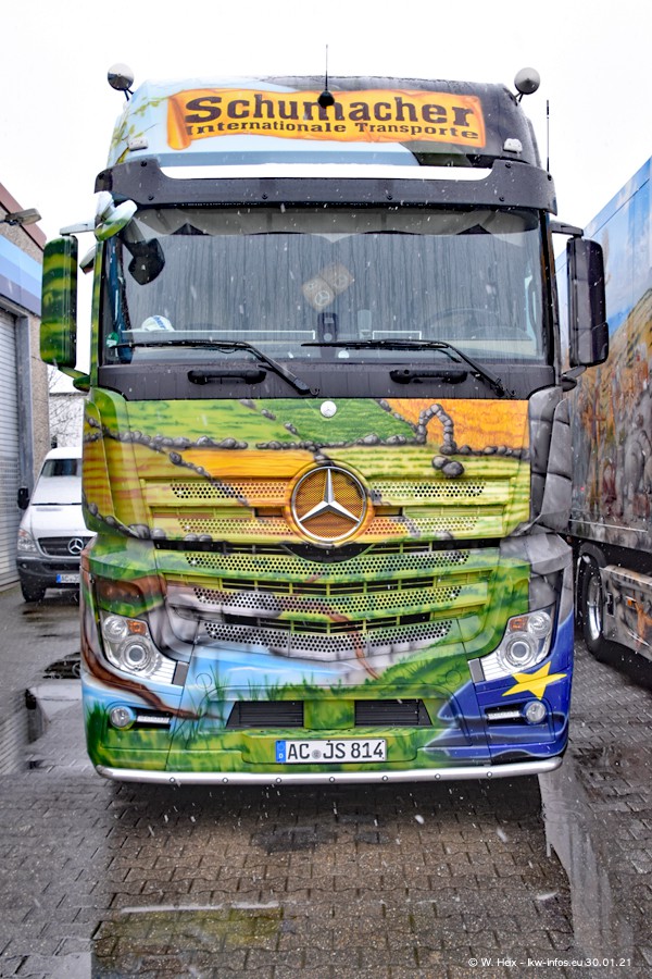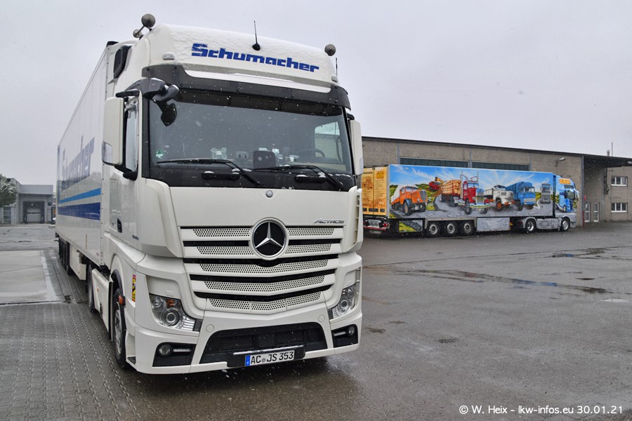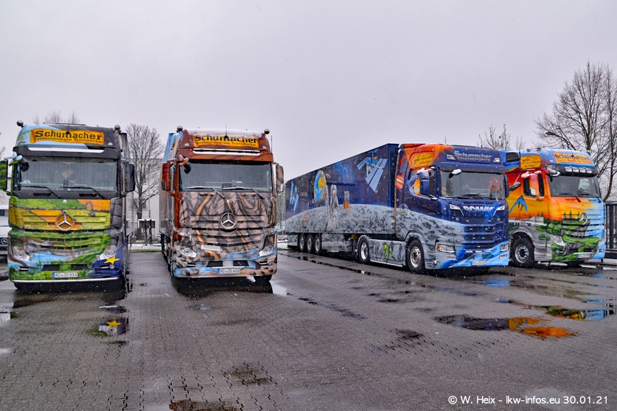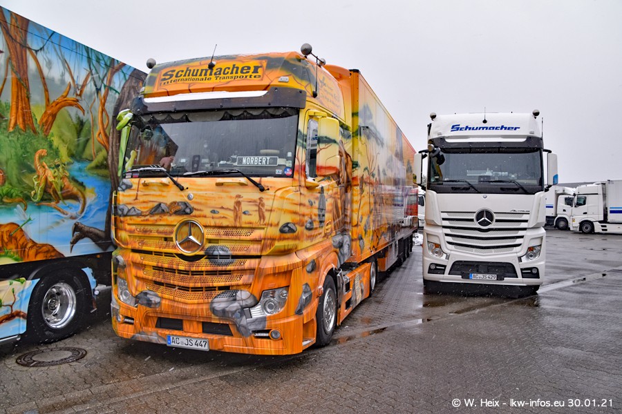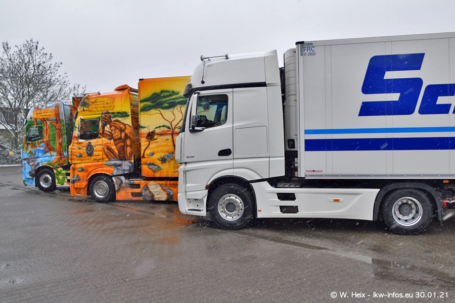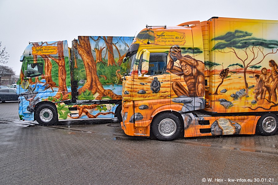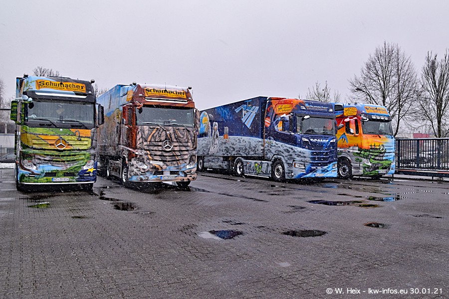 Der letzte Besuch bei Spedition Schumacher liegt fast drei Jahre zurück. Der Besuch war spontan und wegen des schlechten Wetters eigentlich nicht geplant. Und auch wenn nicht alle Showtrucks zuhause waren: Vier neue Zugmaschinen konnte ich fotografieren, darunter auch der SCANIA S NextGen "Herpa präsentiert Weltgeschichte - die Raumfahrt". Das entsprechende Modell von Herpa ist seit einigen Wochen im Handel. Die Bilder beschränken sich weitgehend auf die Showtrucks. Der größte Teil der "normalen" LKW steht auf anderen Höfen in Würselen. Ein weiterer Besuch bei besserem Wetter ist für den Frühling geplant.