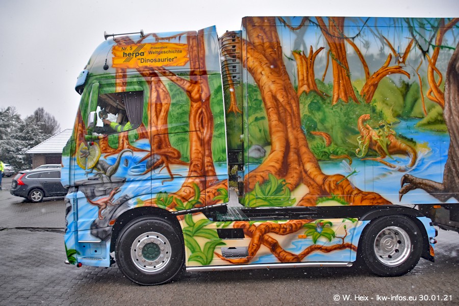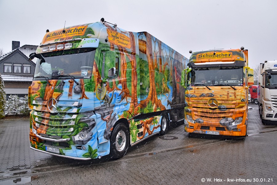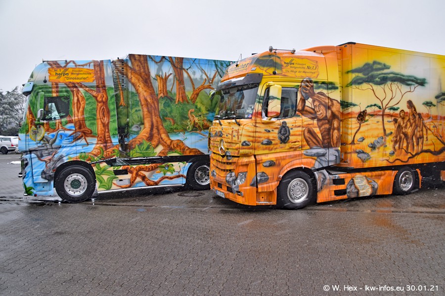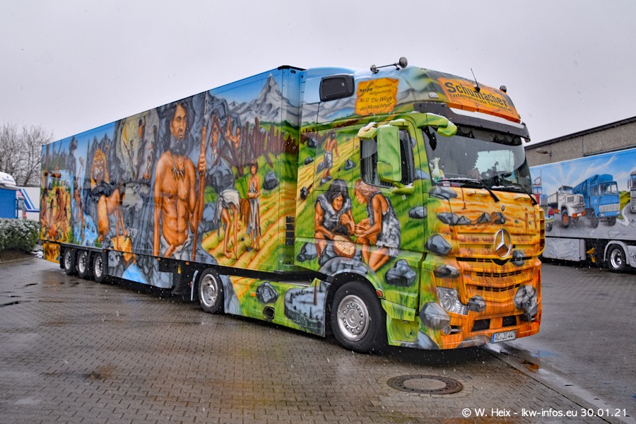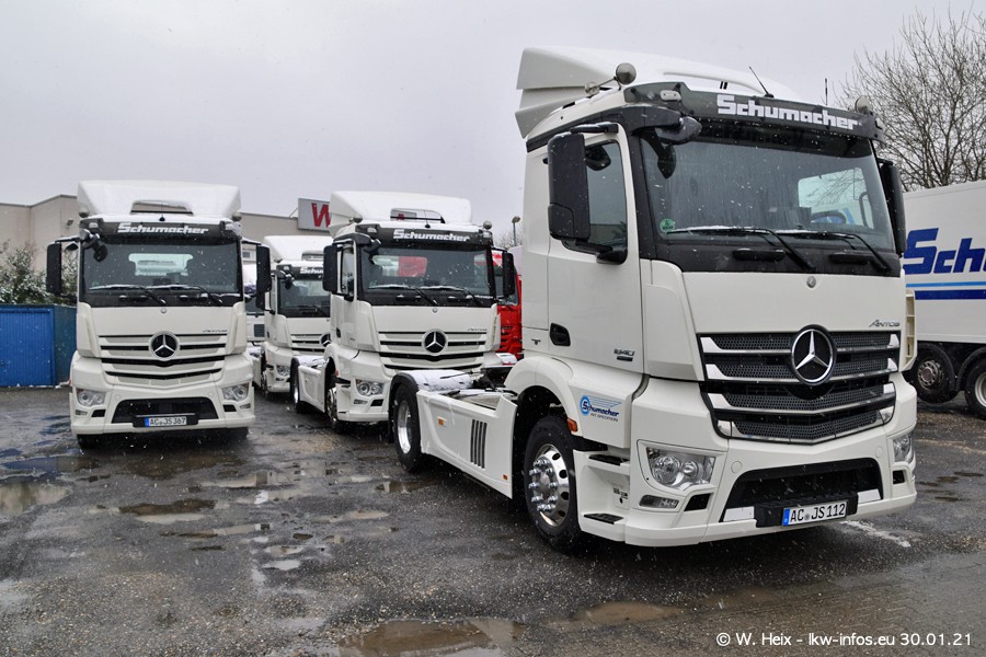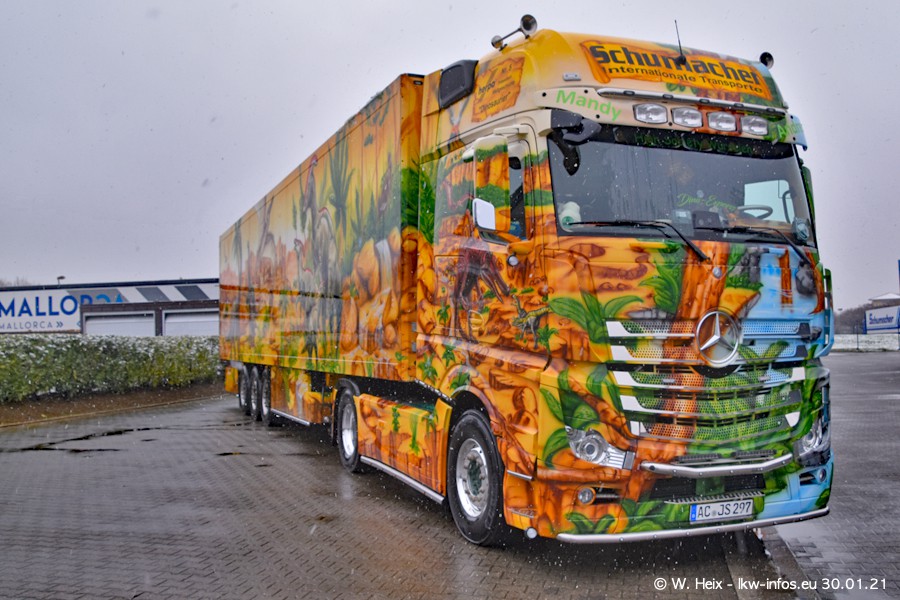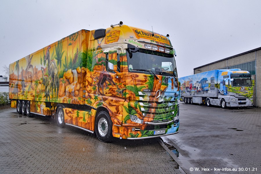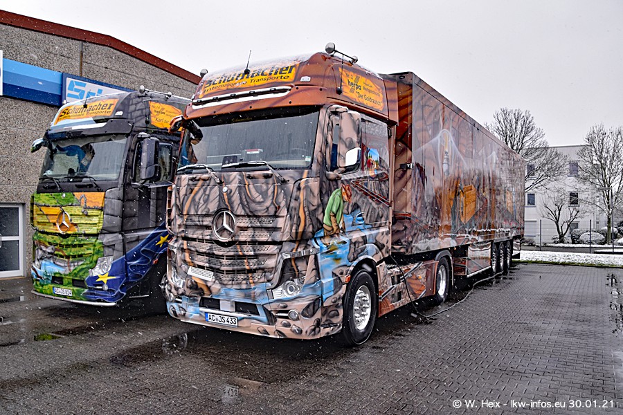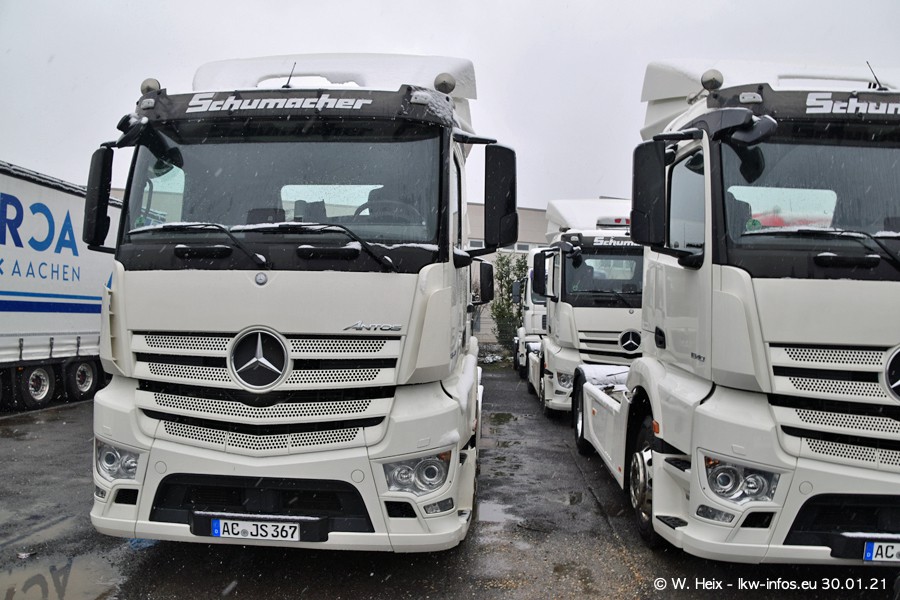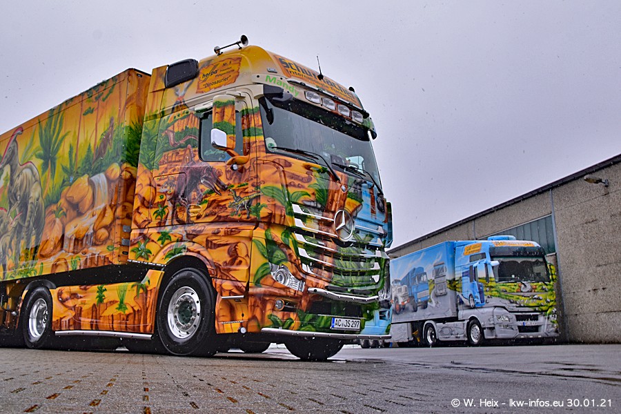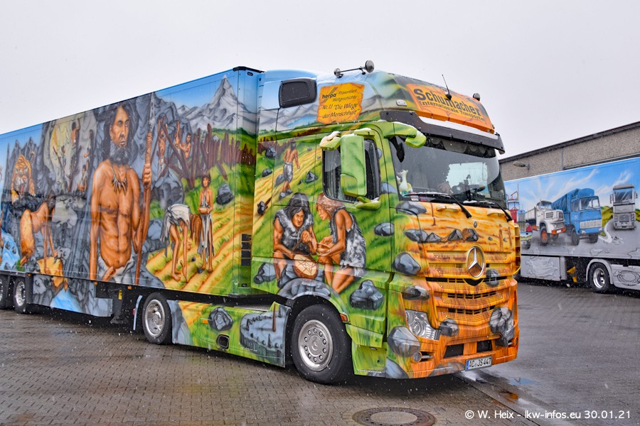 Der letzte Besuch bei Spedition Schumacher liegt fast drei Jahre zurück. Der Besuch war spontan und wegen des schlechten Wetters eigentlich nicht geplant. Und auch wenn nicht alle Showtrucks zuhause waren: Vier neue Zugmaschinen konnte ich fotografieren, darunter auch der SCANIA S NextGen "Herpa präsentiert Weltgeschichte - die Raumfahrt". Das entsprechende Modell von Herpa ist seit einigen Wochen im Handel. Die Bilder beschränken sich weitgehend auf die Showtrucks. Der größte Teil der "normalen" LKW steht auf anderen Höfen in Würselen. Ein weiterer Besuch bei besserem Wetter ist für den Frühling geplant.