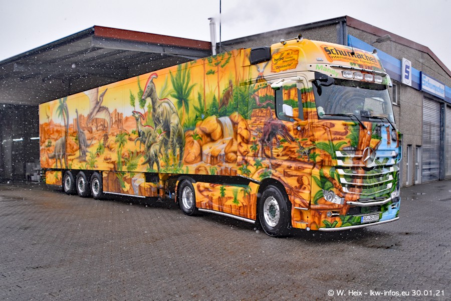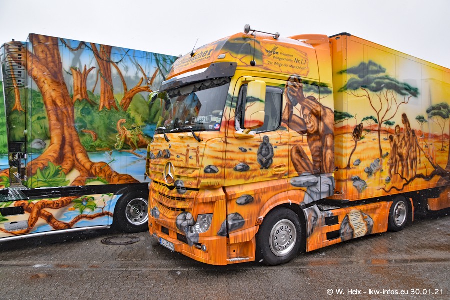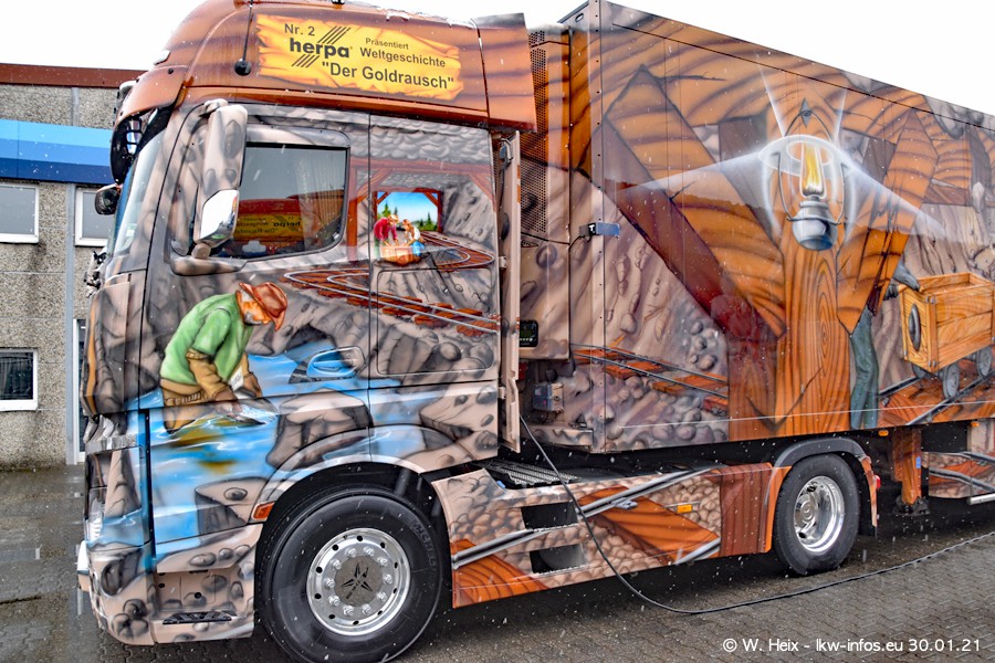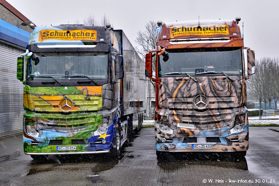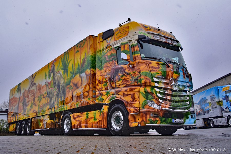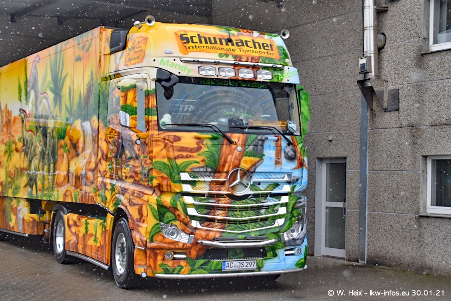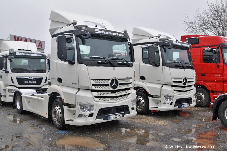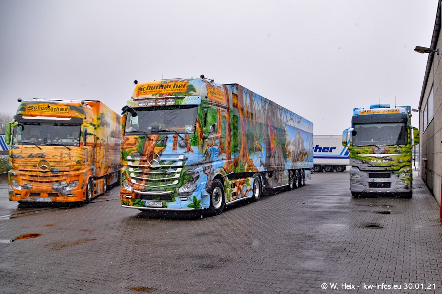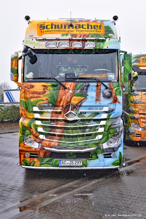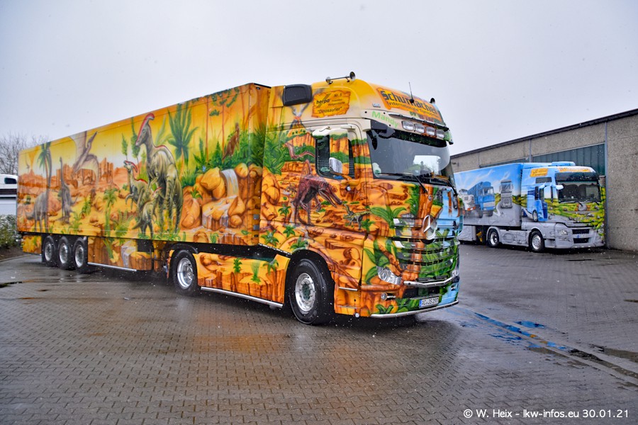 Der letzte Besuch bei Spedition Schumacher liegt fast drei Jahre zurück. Der Besuch war spontan und wegen des schlechten Wetters eigentlich nicht geplant. Und auch wenn nicht alle Showtrucks zuhause waren: Vier neue Zugmaschinen konnte ich fotografieren, darunter auch der SCANIA S NextGen "Herpa präsentiert Weltgeschichte - die Raumfahrt". Das entsprechende Modell von Herpa ist seit einigen Wochen im Handel. Die Bilder beschränken sich weitgehend auf die Showtrucks. Der größte Teil der "normalen" LKW steht auf anderen Höfen in Würselen. Ein weiterer Besuch bei besserem Wetter ist für den Frühling geplant.