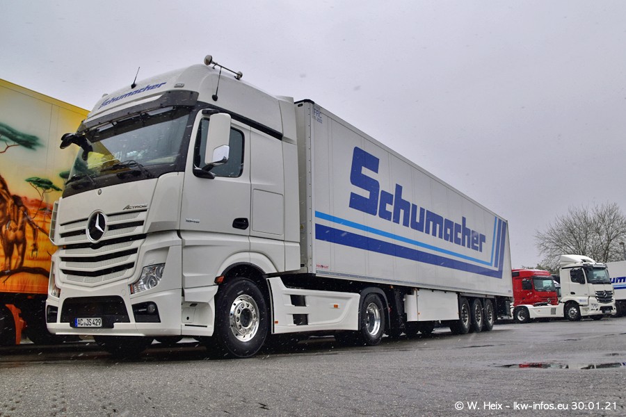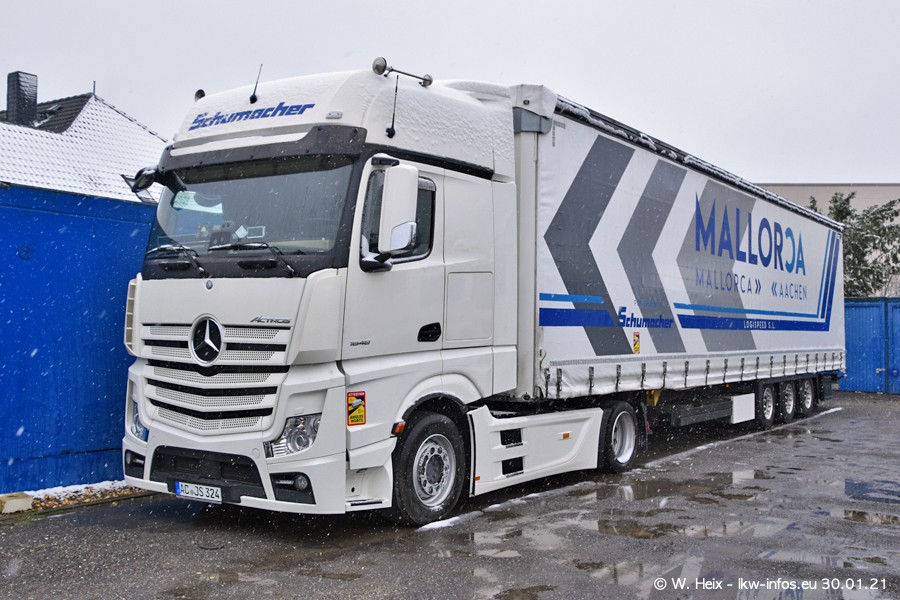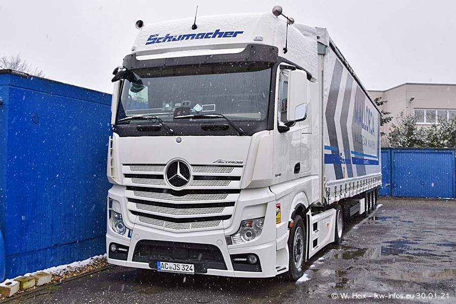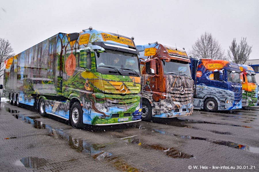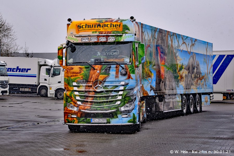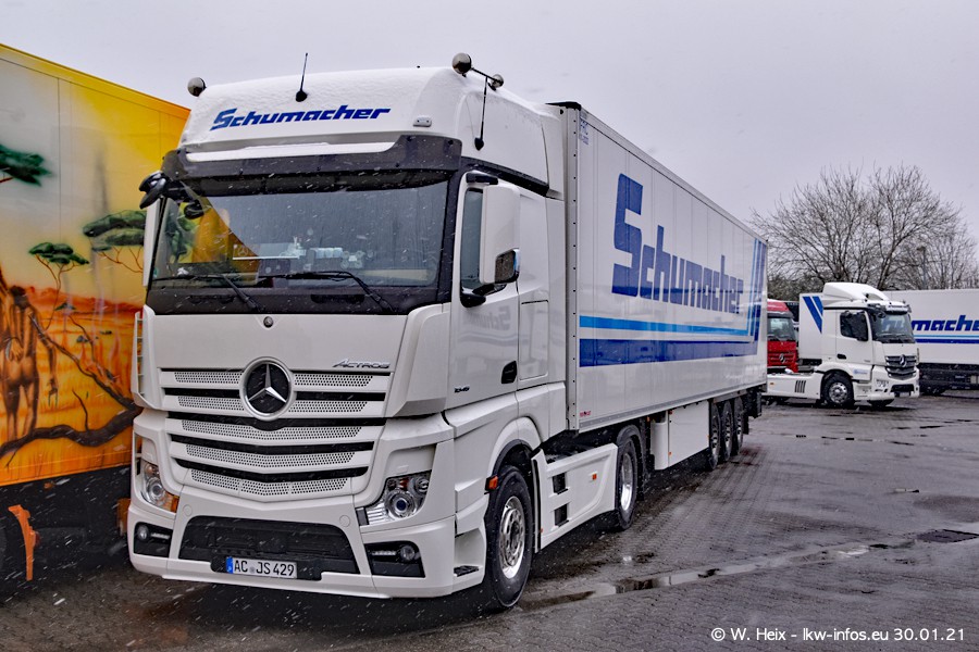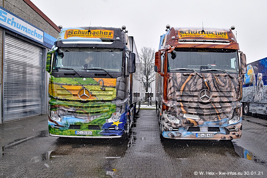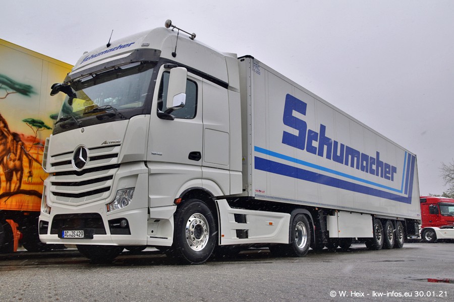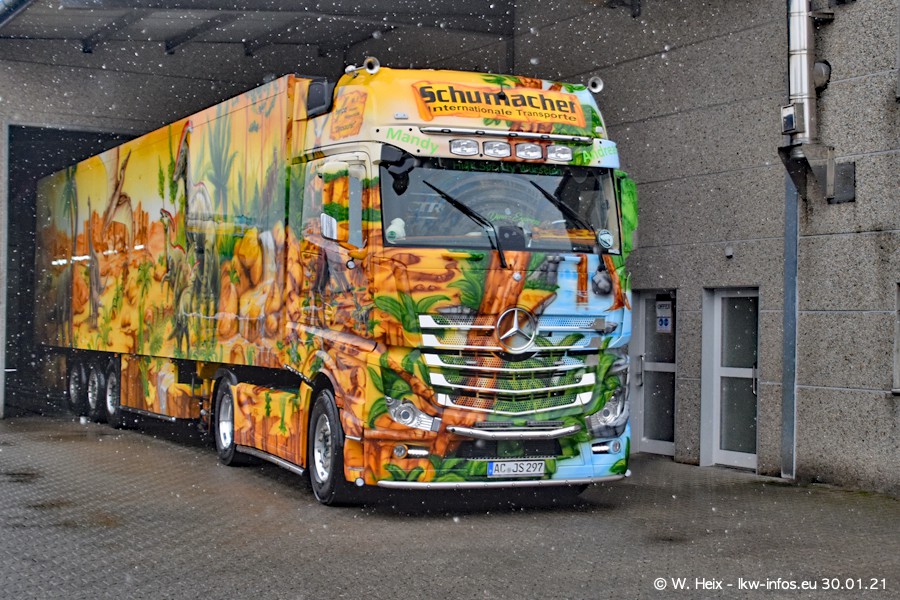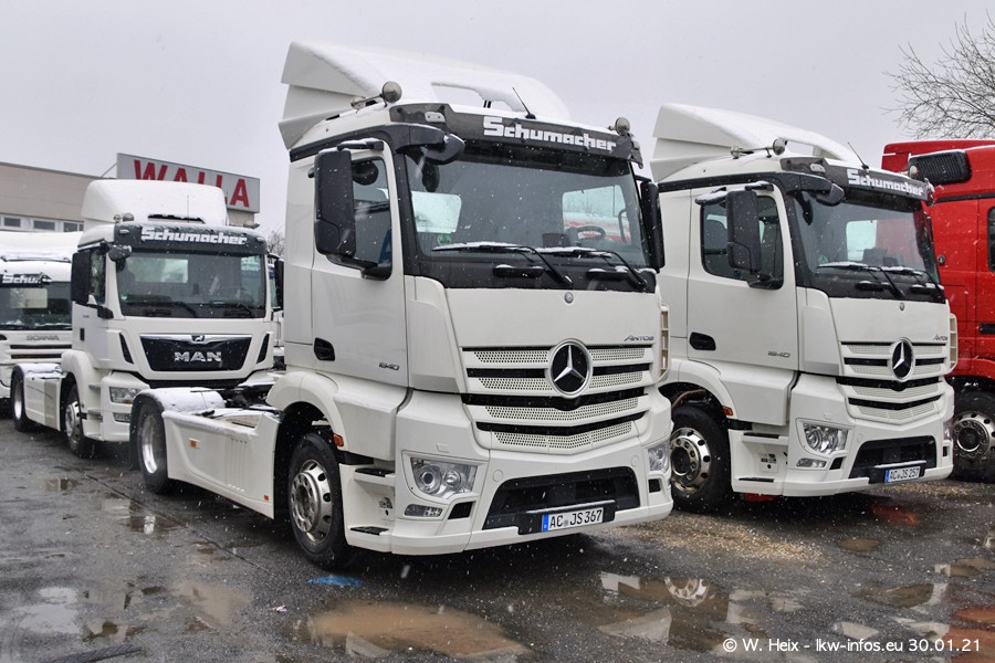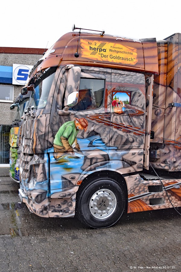 Der letzte Besuch bei Spedition Schumacher liegt fast drei Jahre zurück. Der Besuch war spontan und wegen des schlechten Wetters eigentlich nicht geplant. Und auch wenn nicht alle Showtrucks zuhause waren: Vier neue Zugmaschinen konnte ich fotografieren, darunter auch der SCANIA S NextGen "Herpa präsentiert Weltgeschichte - die Raumfahrt". Das entsprechende Modell von Herpa ist seit einigen Wochen im Handel. Die Bilder beschränken sich weitgehend auf die Showtrucks. Der größte Teil der "normalen" LKW steht auf anderen Höfen in Würselen. Ein weiterer Besuch bei besserem Wetter ist für den Frühling geplant.
