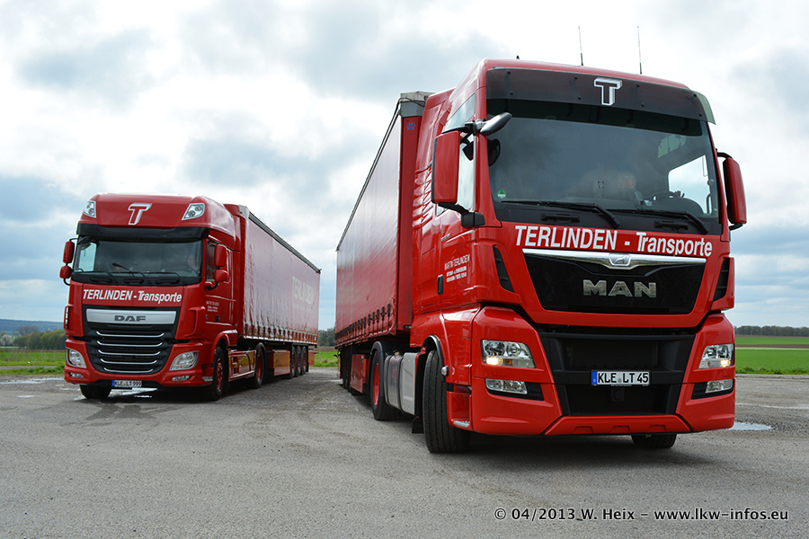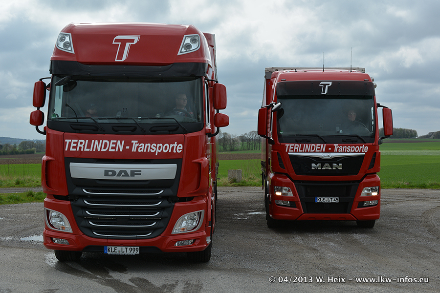 Bilder vom Firmengelände und Fotoshooting mit den drei neuen LKW. Letzte Woche hat Terlinden einen neuen MAN TGX Euro 6 beklommen (einer der ersten ausgelieferten neuen MAN TGX Euro 6 in Deutschland) sowie zwei DAF New XF 105.460 Euro 6. Die beiden DAF sind die ersten neuen XF 105 Euro 6, die in Deutschland an Kunden ausgeliefert wurden!