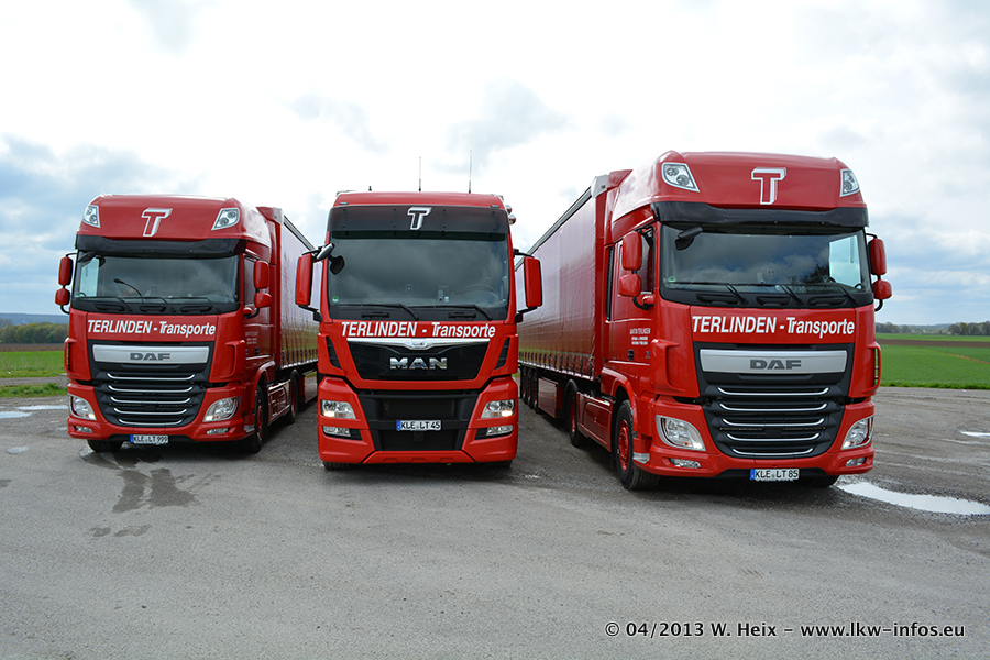 Bilder vom Firmengelände und Fotoshooting mit den drei neuen LKW. Letzte Woche hat Terlinden einen neuen MAN TGX Euro 6 beklommen (einer der ersten ausgelieferten neuen MAN TGX Euro 6 in Deutschland) sowie zwei DAF New XF 105.460 Euro 6. Die beiden DAF sind die ersten neuen XF 105 Euro 6, die in Deutschland an Kunden ausgeliefert wurden!