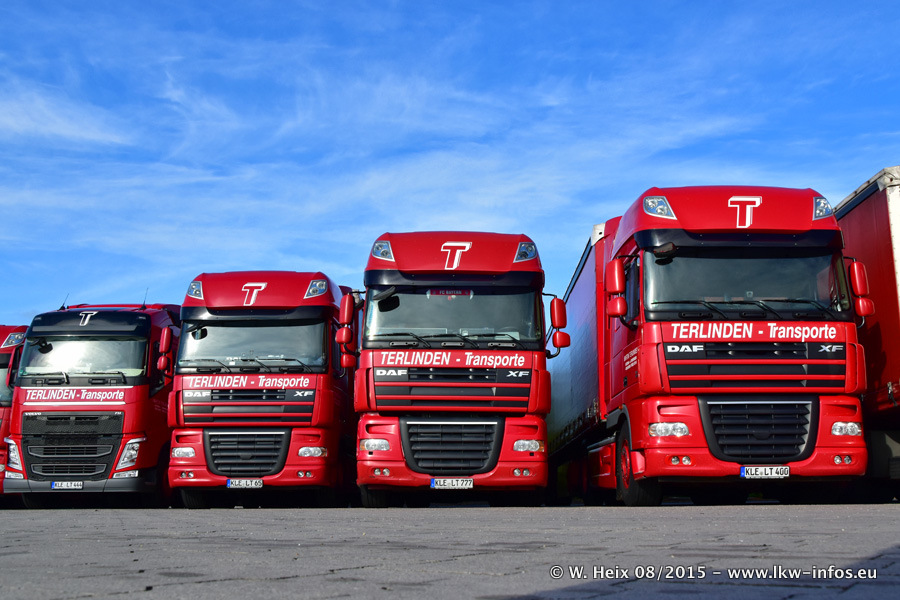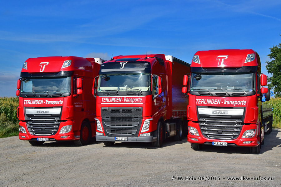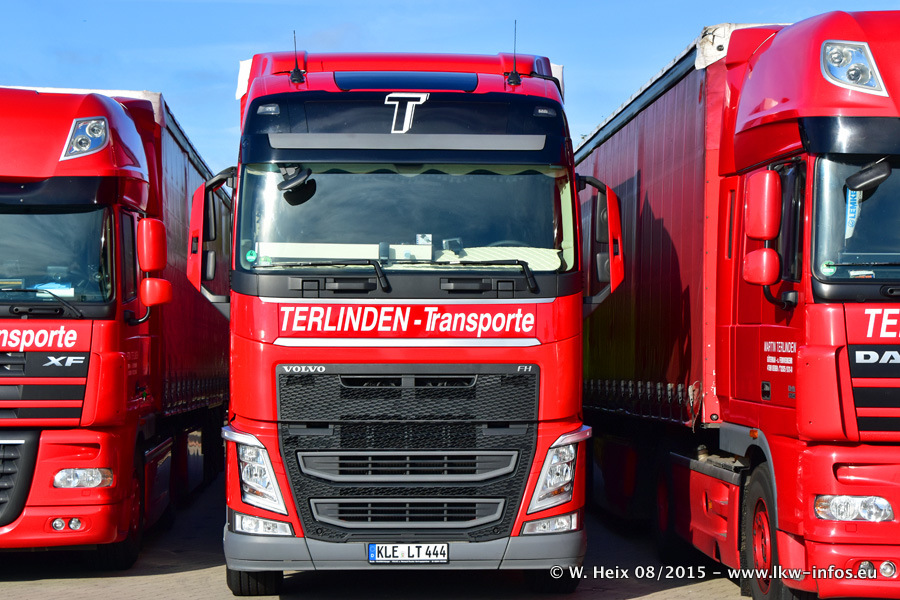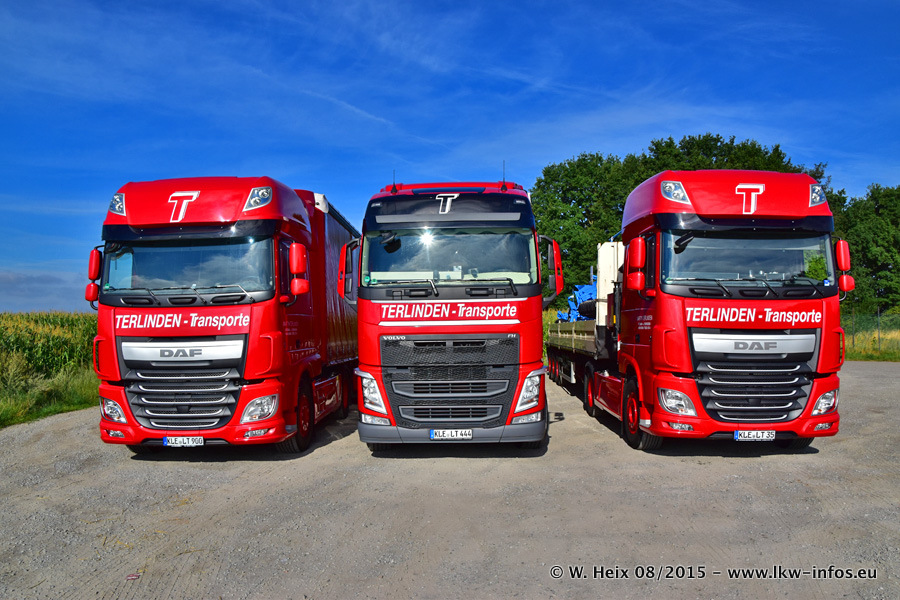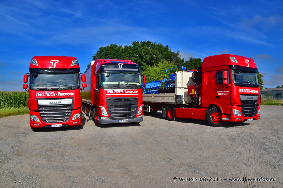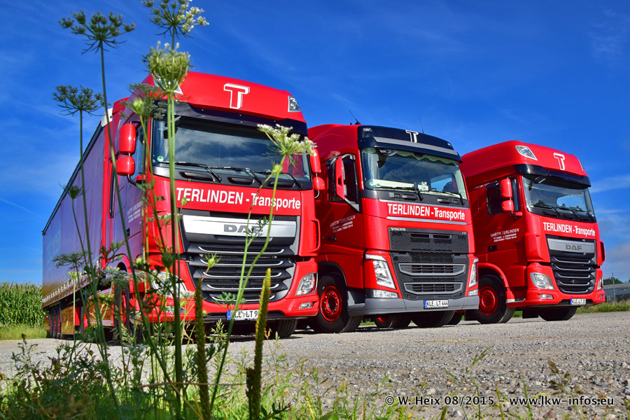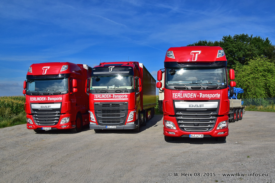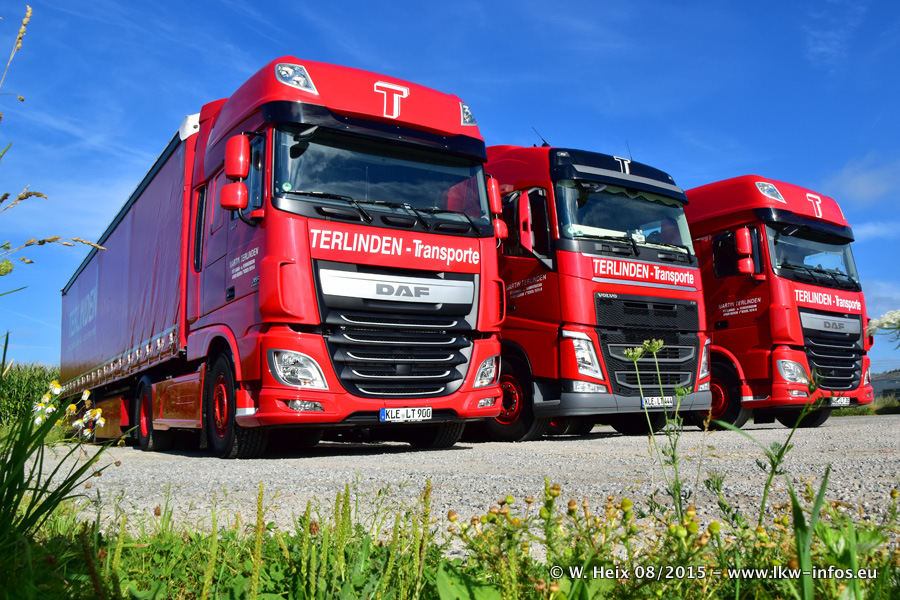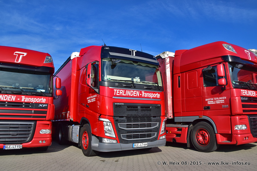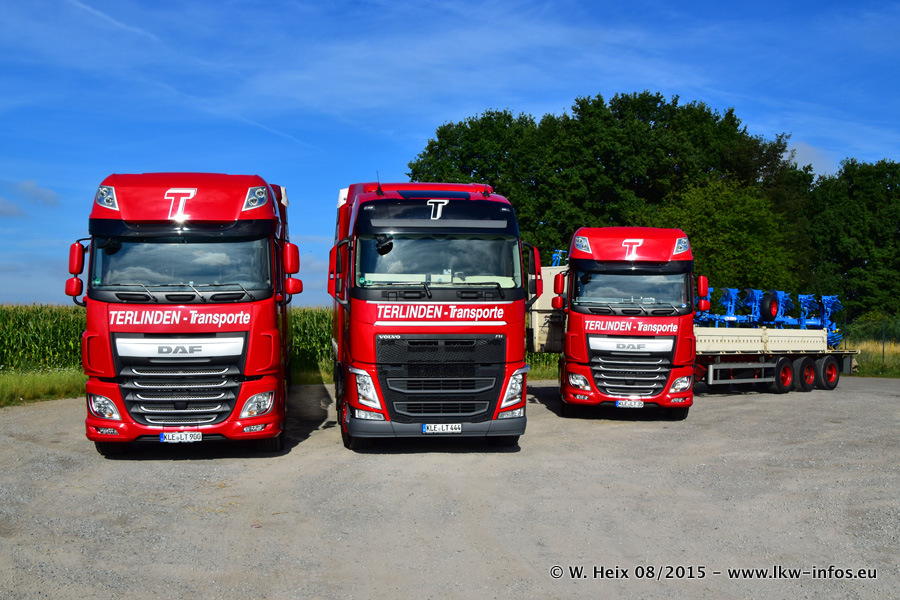 Bilder vom Firmengelände und Fotoshooting mit den letzten drei neuen LKW: Bereits vor rund einem Jahr hat Terlinden einen Volvo New FH 460 (FH 4) bekommen. Und im Juli dieses Jahres sind die nächsten beiden DAF XF 105.460 Euro 6 in den Fuhrpark gekommen. Dafür wurden dier einzige Iveco Stralis AS II und ein älterer DAF XF verkauft. Die ersten ca. 170 Bilder zeigen das Fotoshooting mit den drei neuen LKW, das wir ganz in der Nähe des Firmengeländes "im Grünen" gemacht haben. Die restlichen Bilder habe ich vorher und nachher auf dem Hof von Terlinden gemacht.