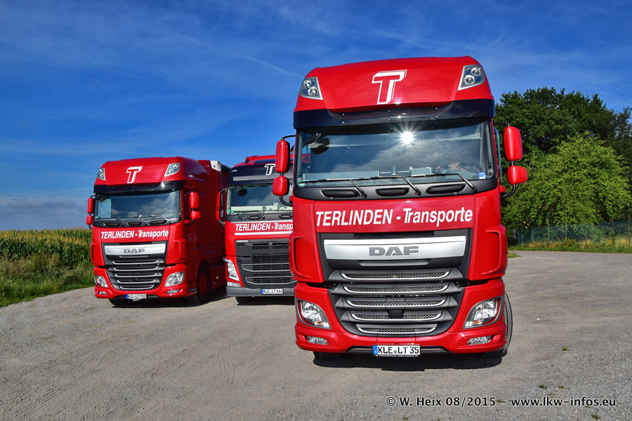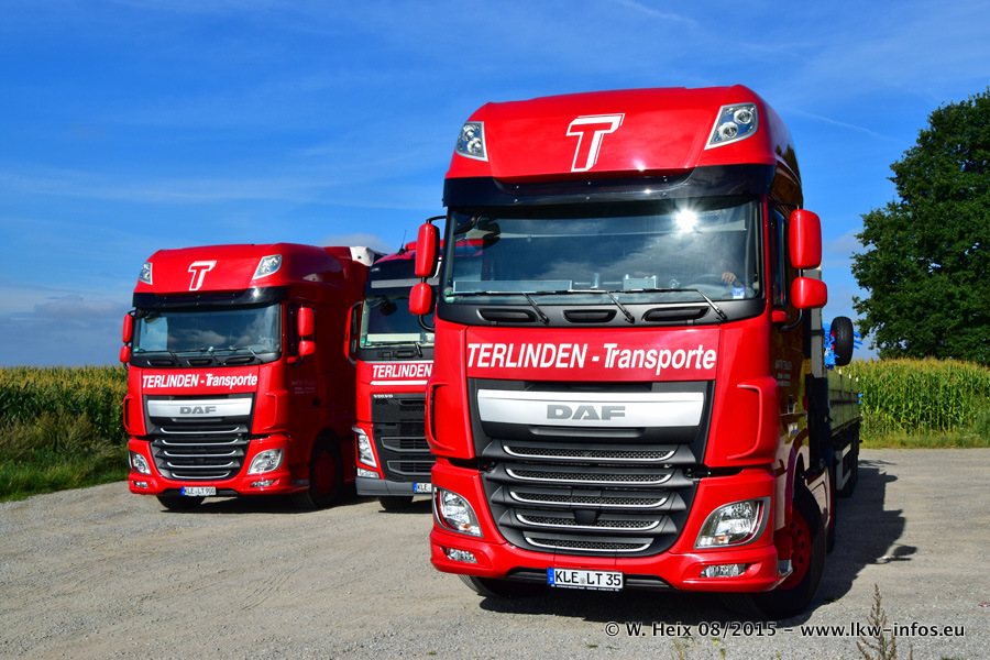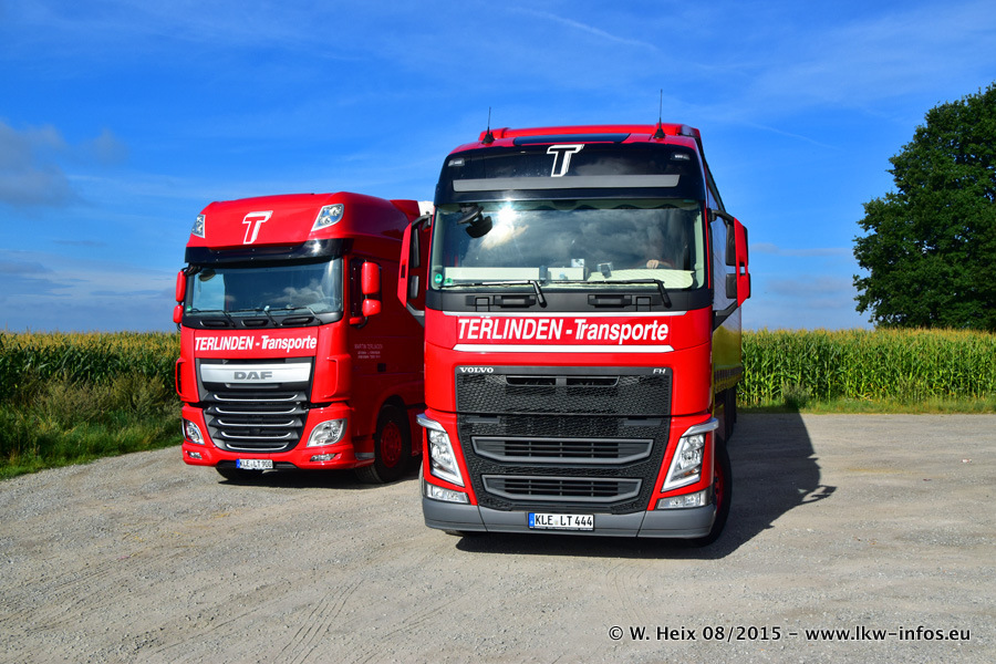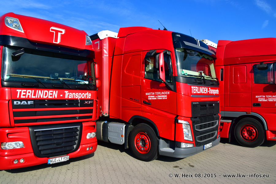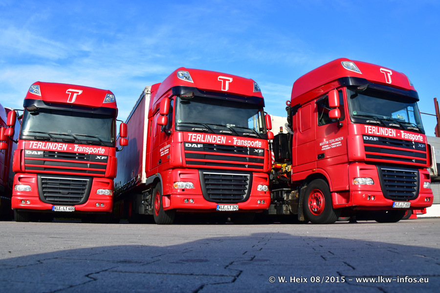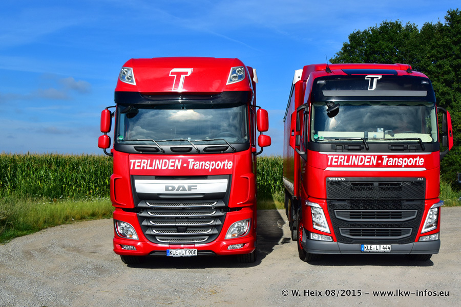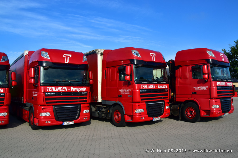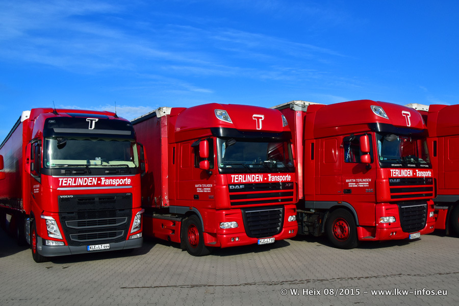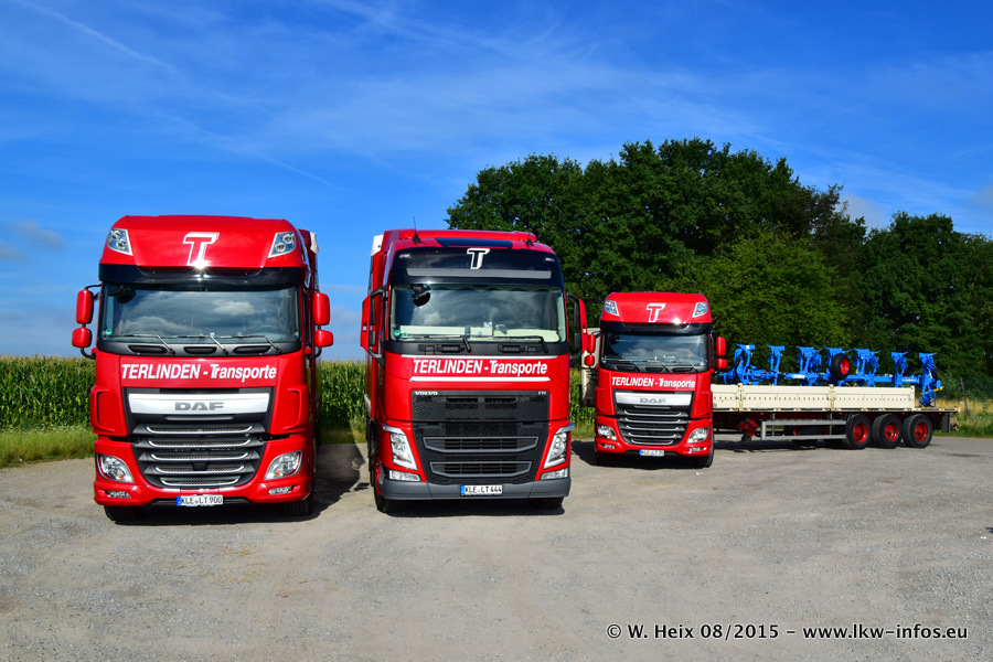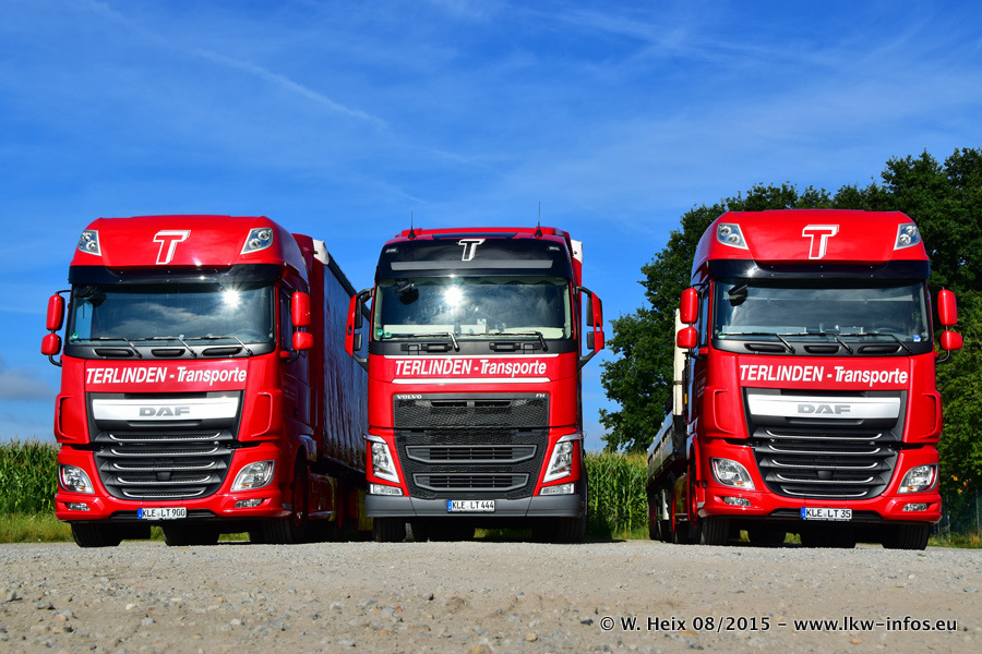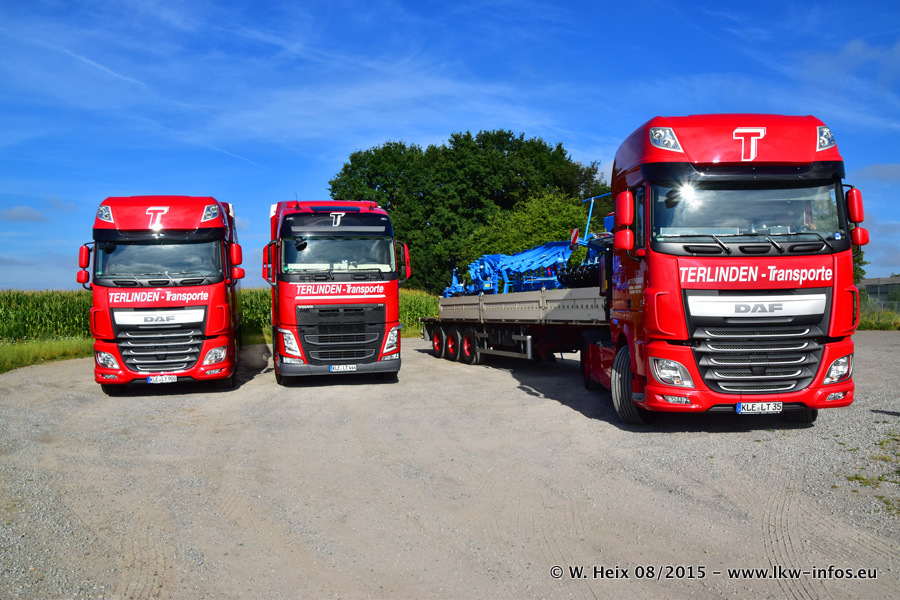 Bilder vom Firmengelände und Fotoshooting mit den letzten drei neuen LKW: Bereits vor rund einem Jahr hat Terlinden einen Volvo New FH 460 (FH 4) bekommen. Und im Juli dieses Jahres sind die nächsten beiden DAF XF 105.460 Euro 6 in den Fuhrpark gekommen. Dafür wurden dier einzige Iveco Stralis AS II und ein älterer DAF XF verkauft. Die ersten ca. 170 Bilder zeigen das Fotoshooting mit den drei neuen LKW, das wir ganz in der Nähe des Firmengeländes "im Grünen" gemacht haben. Die restlichen Bilder habe ich vorher und nachher auf dem Hof von Terlinden gemacht.