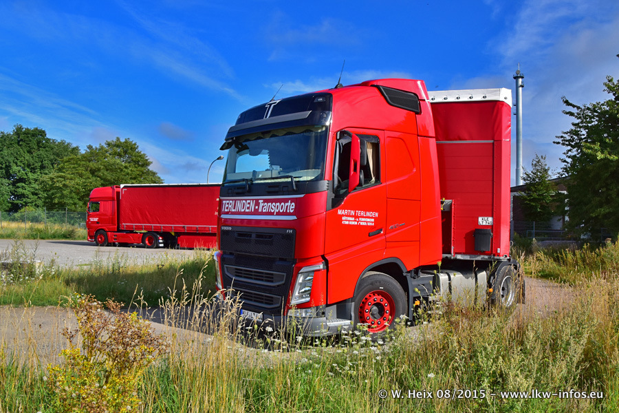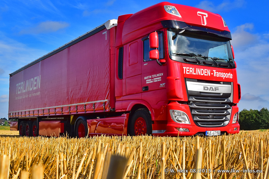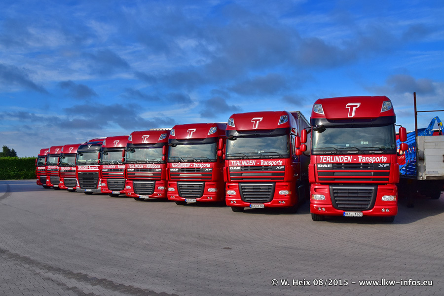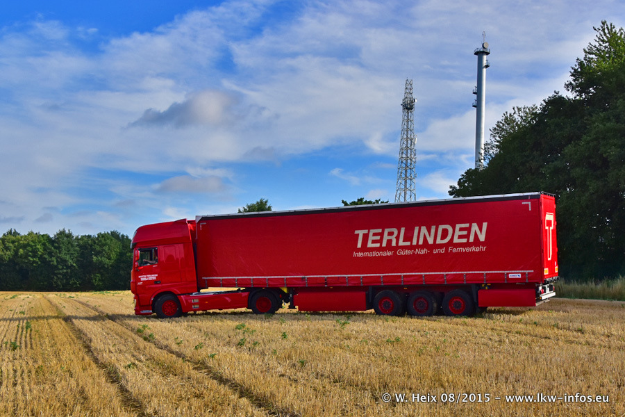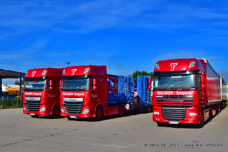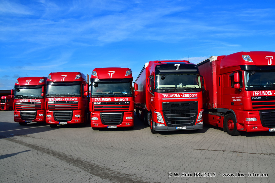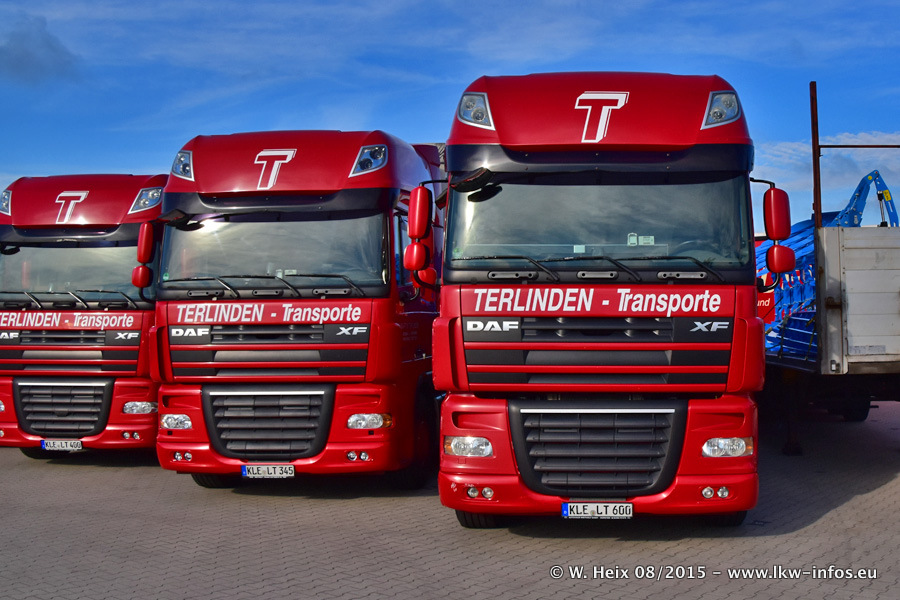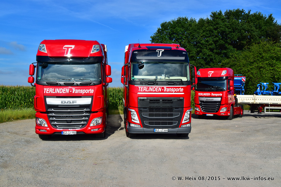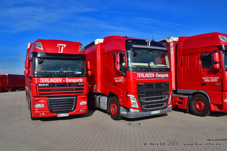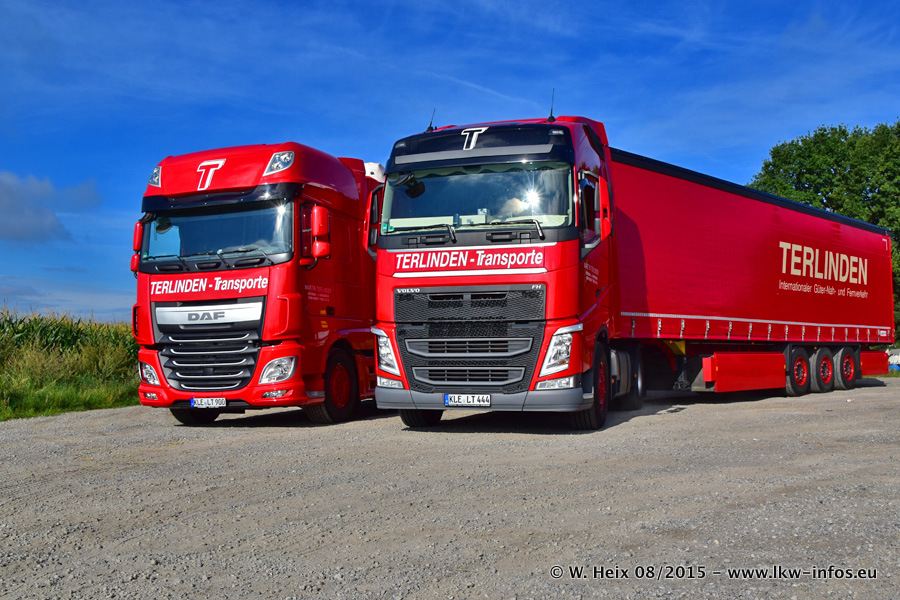 Bilder vom Firmengelände und Fotoshooting mit den letzten drei neuen LKW: Bereits vor rund einem Jahr hat Terlinden einen Volvo New FH 460 (FH 4) bekommen. Und im Juli dieses Jahres sind die nächsten beiden DAF XF 105.460 Euro 6 in den Fuhrpark gekommen. Dafür wurden dier einzige Iveco Stralis AS II und ein älterer DAF XF verkauft. Die ersten ca. 170 Bilder zeigen das Fotoshooting mit den drei neuen LKW, das wir ganz in der Nähe des Firmengeländes "im Grünen" gemacht haben. Die restlichen Bilder habe ich vorher und nachher auf dem Hof von Terlinden gemacht.