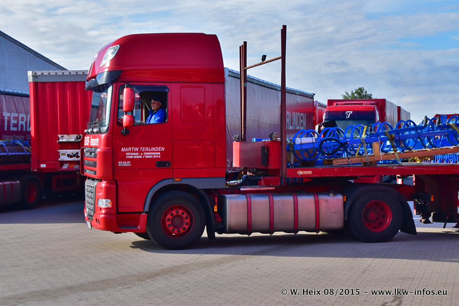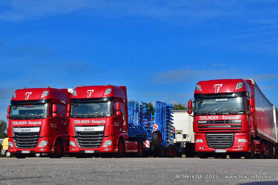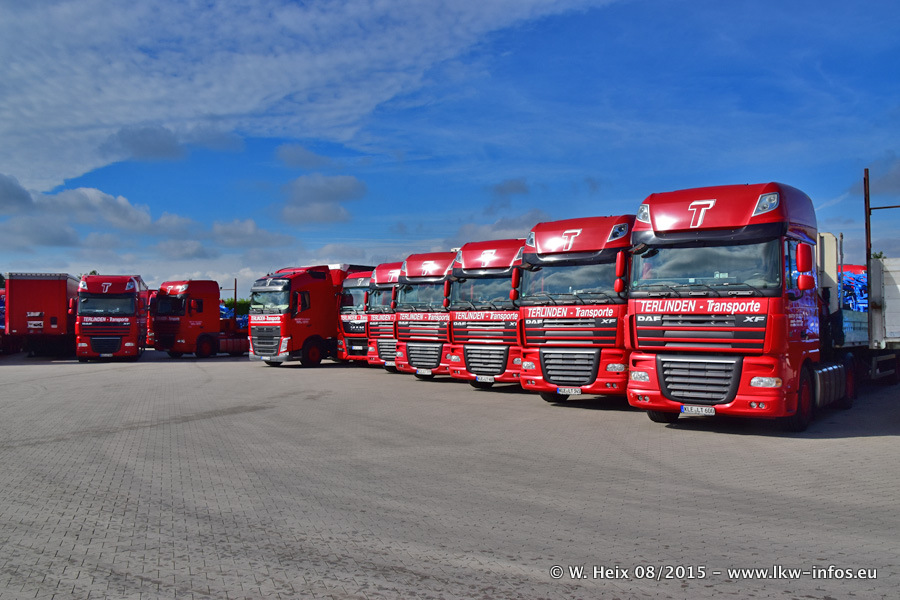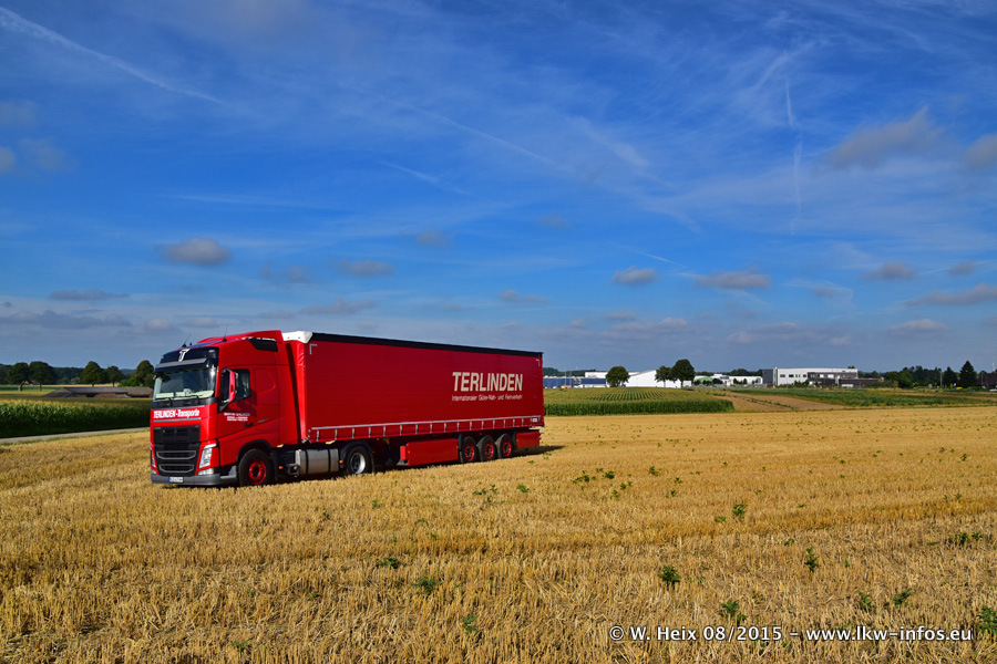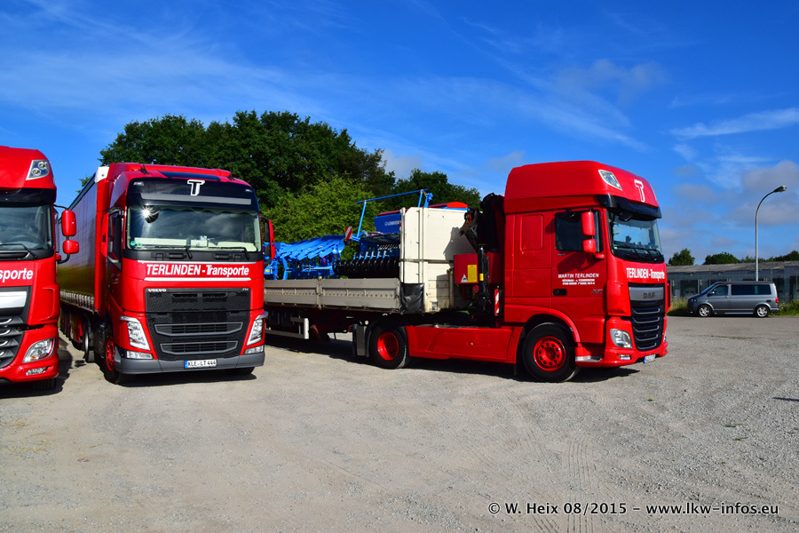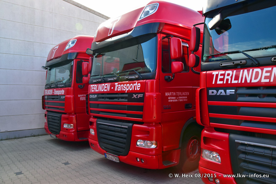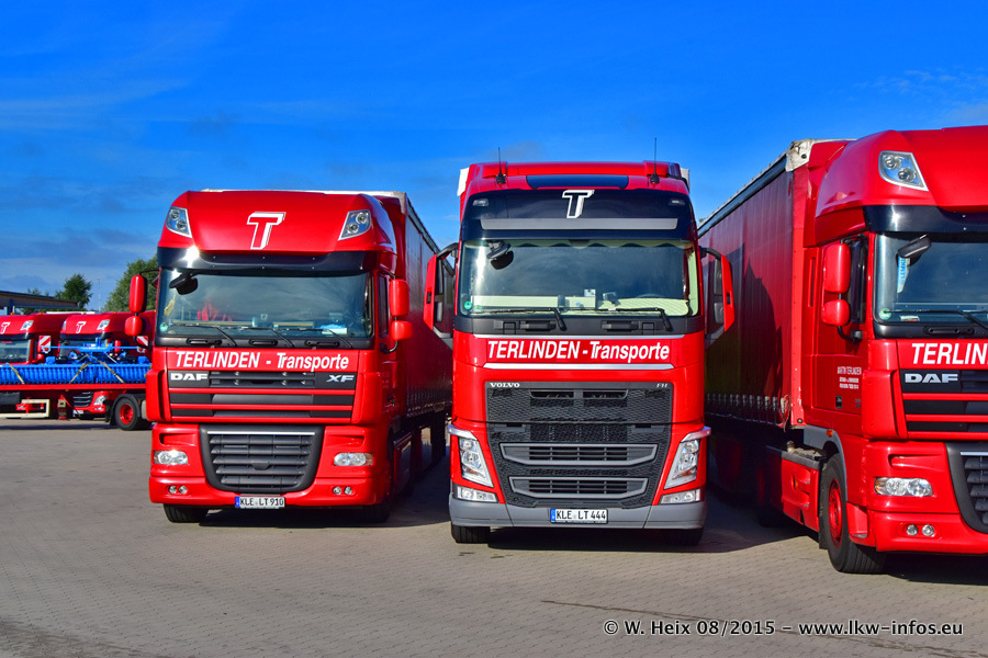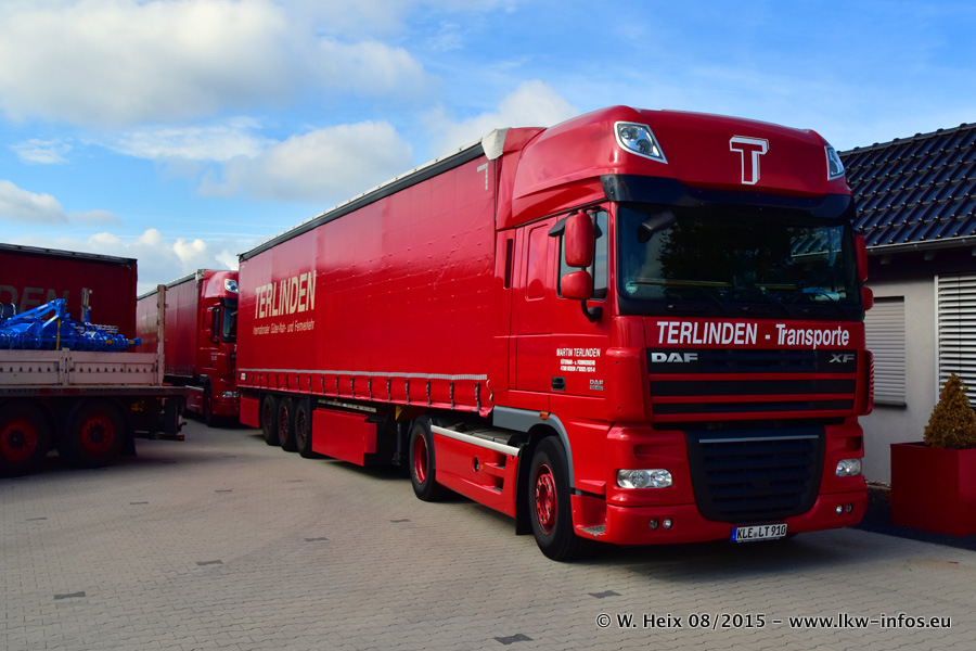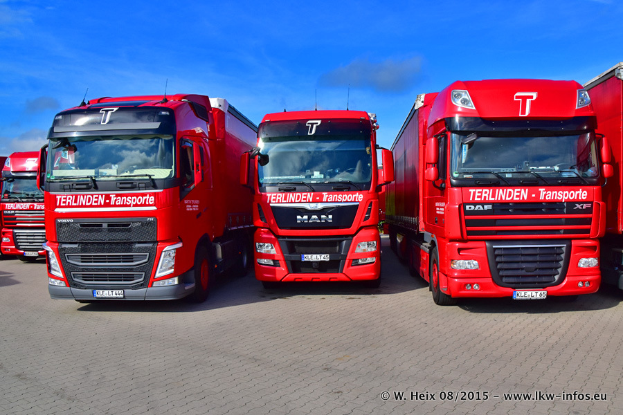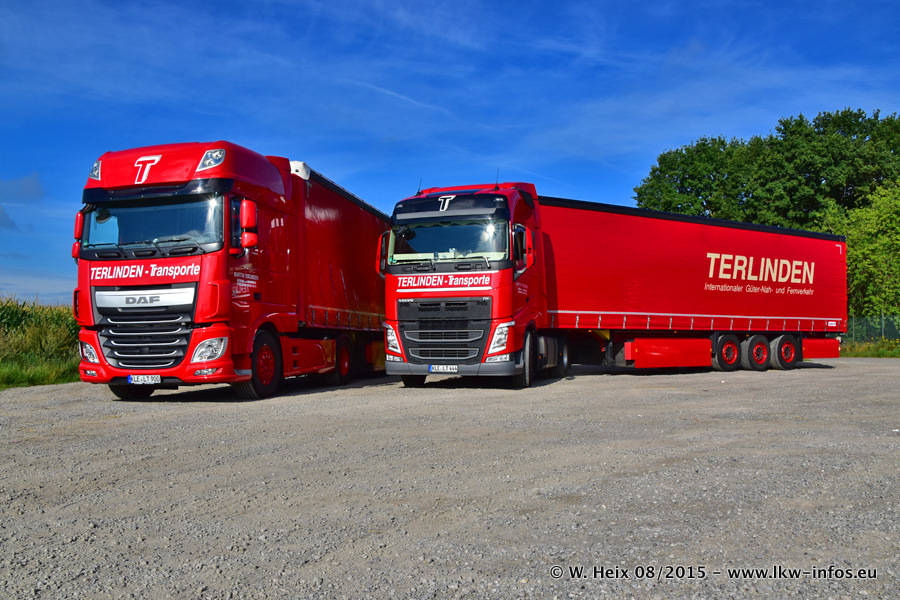Bilder vom Firmengelände und Fotoshooting mit den letzten drei neuen LKW: Bereits vor rund einem Jahr hat Terlinden einen Volvo New FH 460 (FH 4) bekommen. Und im Juli dieses Jahres sind die nächsten beiden DAF XF 105.460 Euro 6 in den Fuhrpark gekommen. Dafür wurden dier einzige Iveco Stralis AS II und ein älterer DAF XF verkauft. Die ersten ca. 170 Bilder zeigen das Fotoshooting mit den drei neuen LKW, das wir ganz in der Nähe des Firmengeländes "im Grünen" gemacht haben. Die restlichen Bilder habe ich vorher und nachher auf dem Hof von Terlinden gemacht.