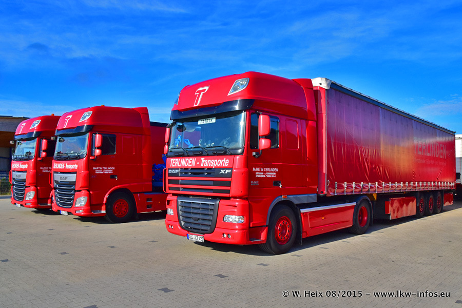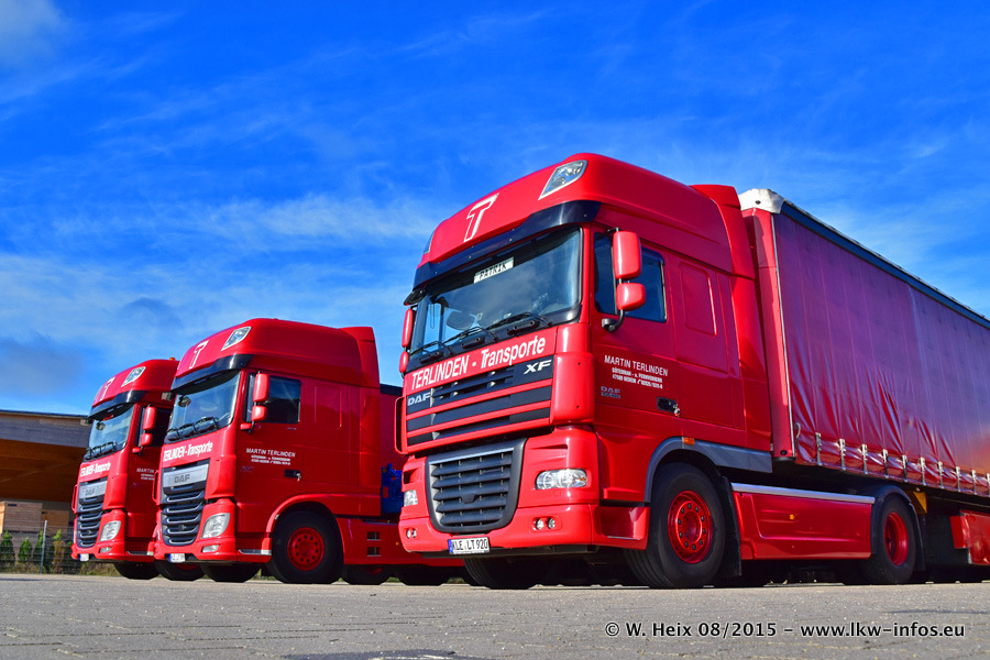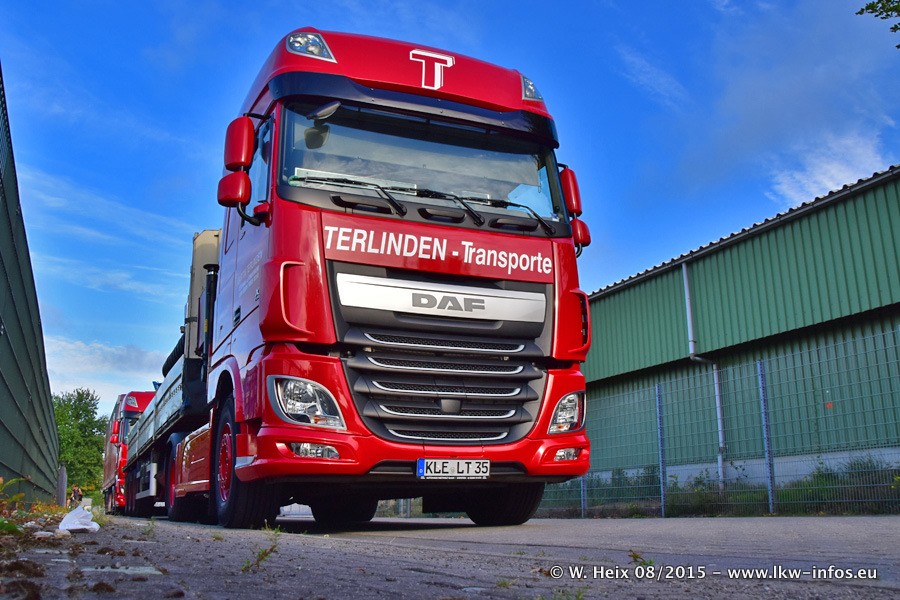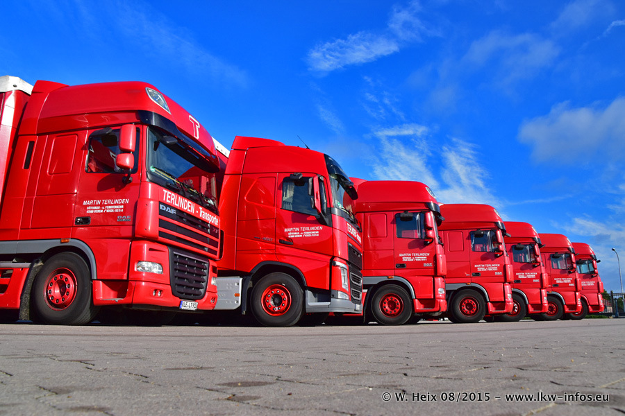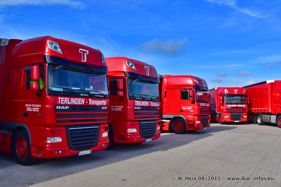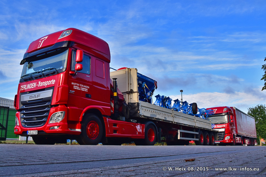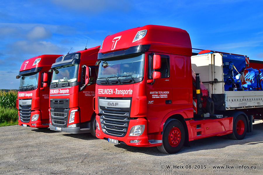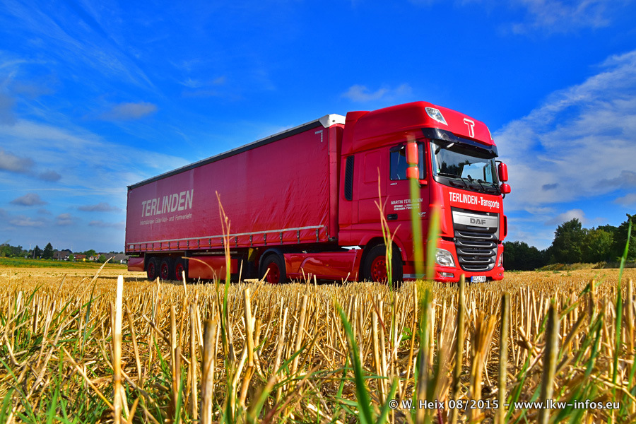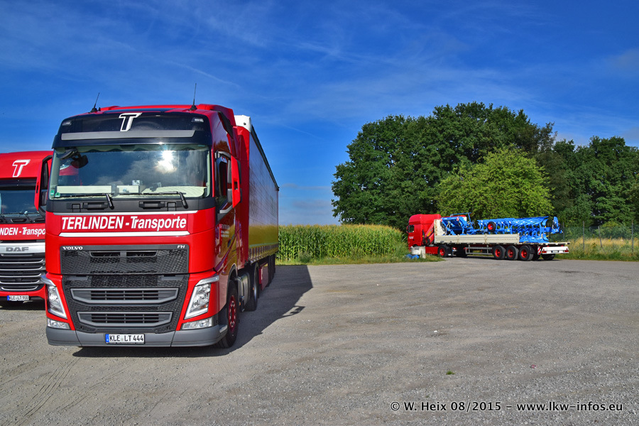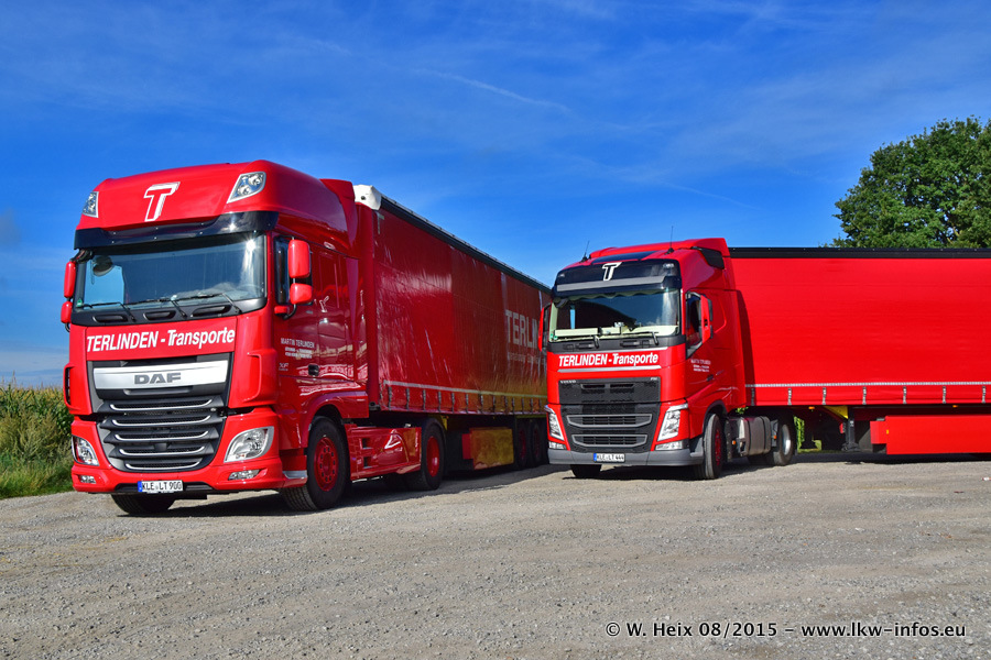 Bilder vom Firmengelände und Fotoshooting mit den letzten drei neuen LKW: Bereits vor rund einem Jahr hat Terlinden einen Volvo New FH 460 (FH 4) bekommen. Und im Juli dieses Jahres sind die nächsten beiden DAF XF 105.460 Euro 6 in den Fuhrpark gekommen. Dafür wurden dier einzige Iveco Stralis AS II und ein älterer DAF XF verkauft. Die ersten ca. 170 Bilder zeigen das Fotoshooting mit den drei neuen LKW, das wir ganz in der Nähe des Firmengeländes "im Grünen" gemacht haben. Die restlichen Bilder habe ich vorher und nachher auf dem Hof von Terlinden gemacht.