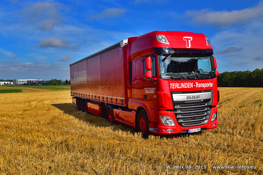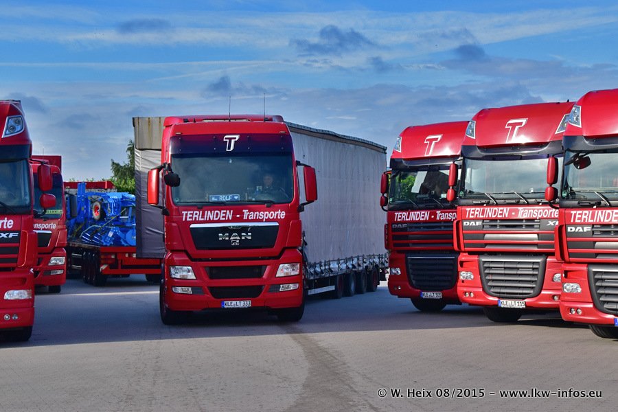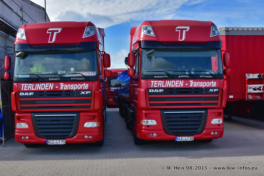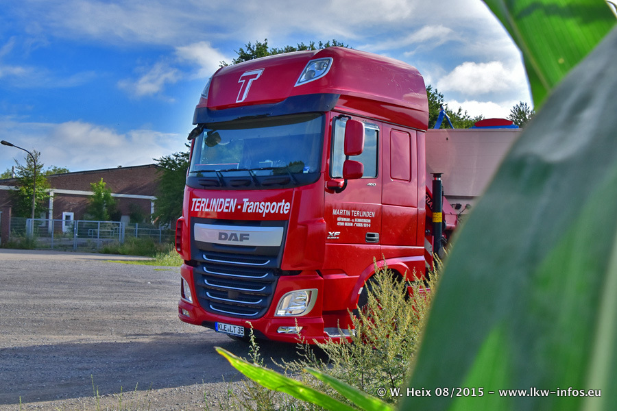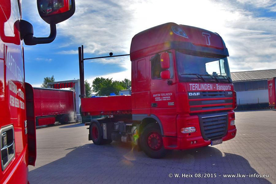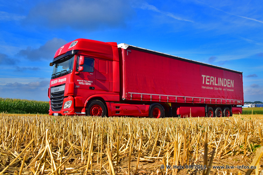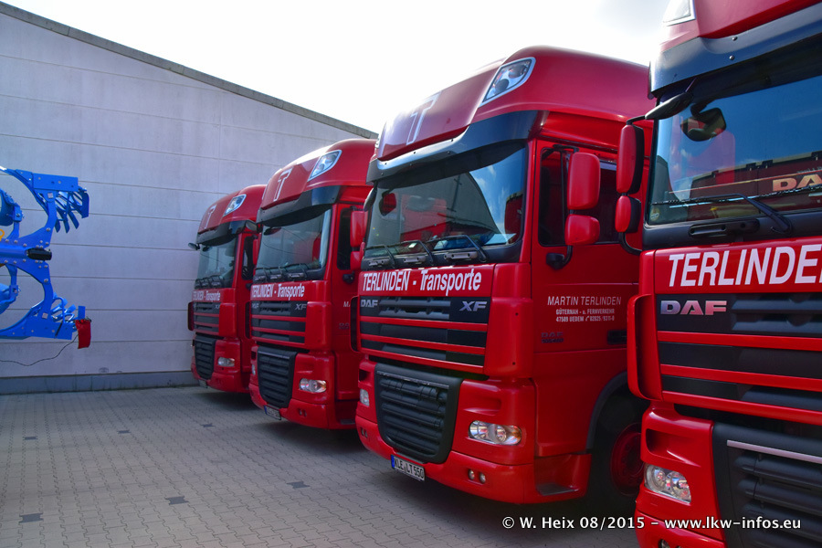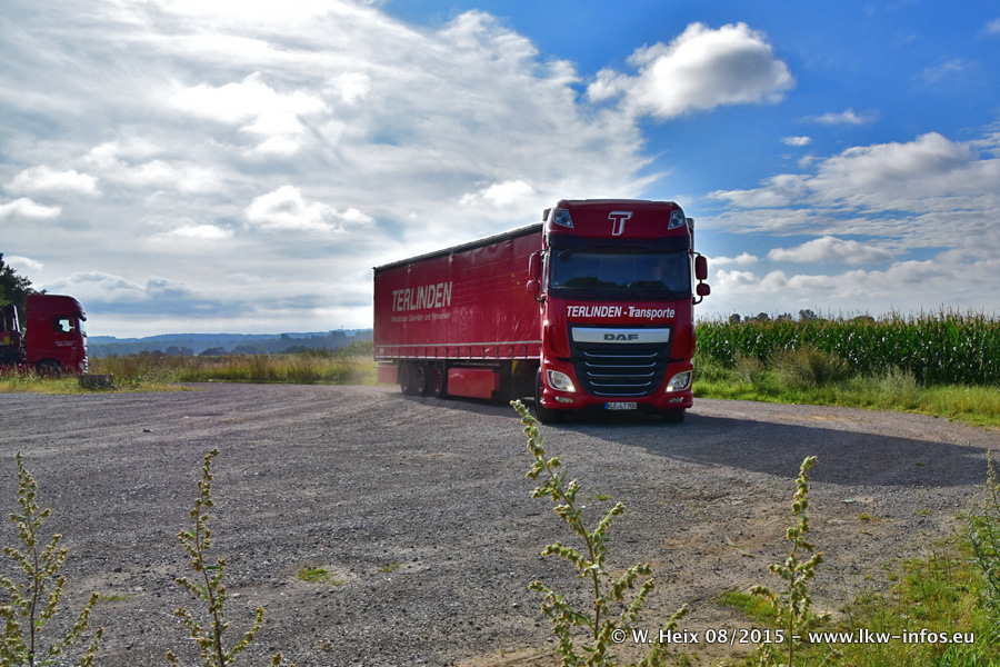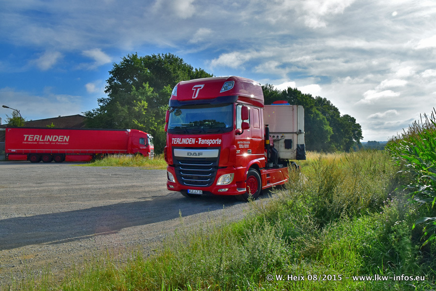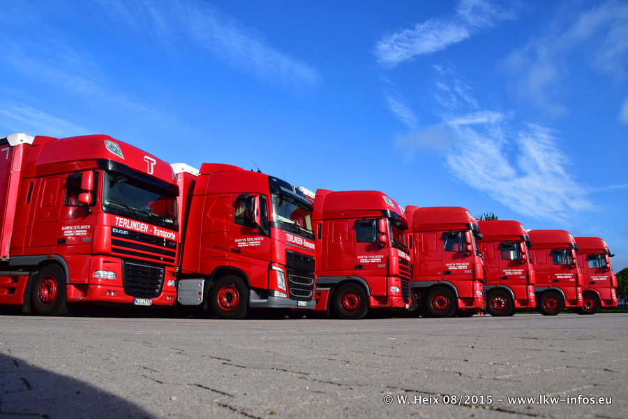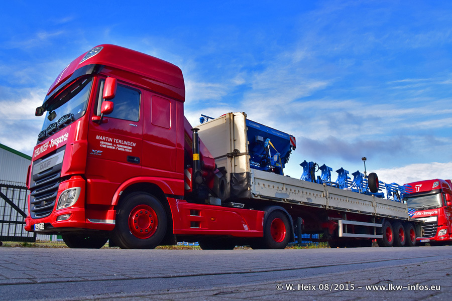 Bilder vom Firmengelände und Fotoshooting mit den letzten drei neuen LKW: Bereits vor rund einem Jahr hat Terlinden einen Volvo New FH 460 (FH 4) bekommen. Und im Juli dieses Jahres sind die nächsten beiden DAF XF 105.460 Euro 6 in den Fuhrpark gekommen. Dafür wurden dier einzige Iveco Stralis AS II und ein älterer DAF XF verkauft. Die ersten ca. 170 Bilder zeigen das Fotoshooting mit den drei neuen LKW, das wir ganz in der Nähe des Firmengeländes "im Grünen" gemacht haben. Die restlichen Bilder habe ich vorher und nachher auf dem Hof von Terlinden gemacht.
