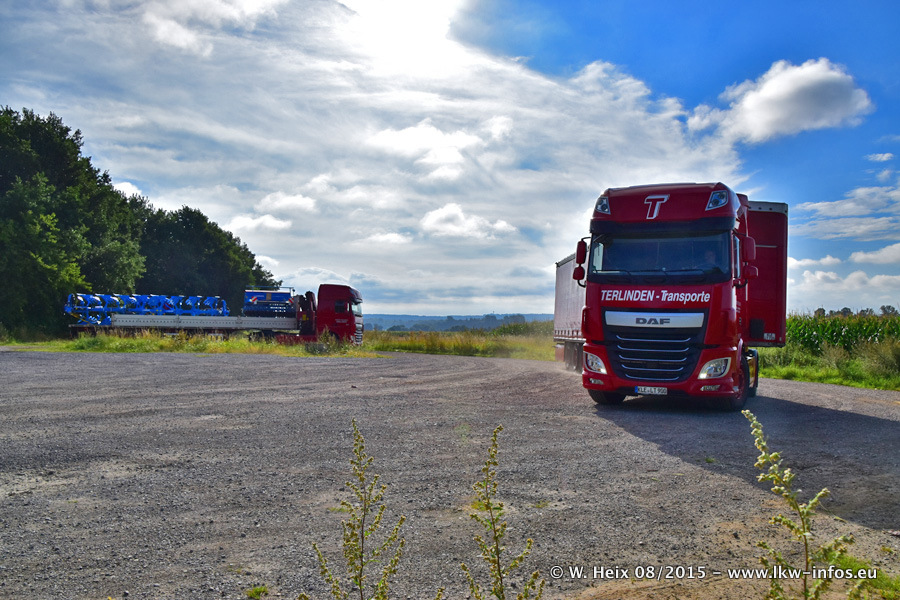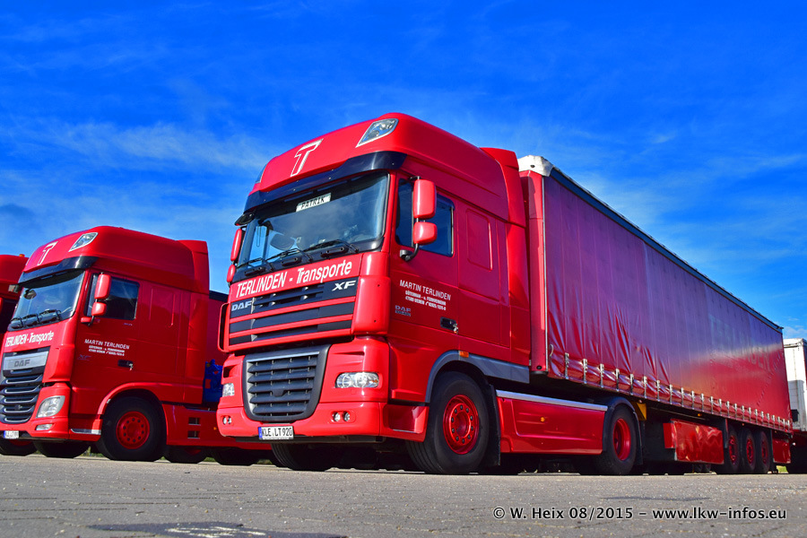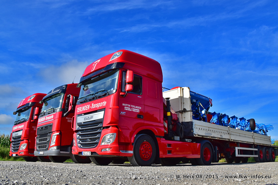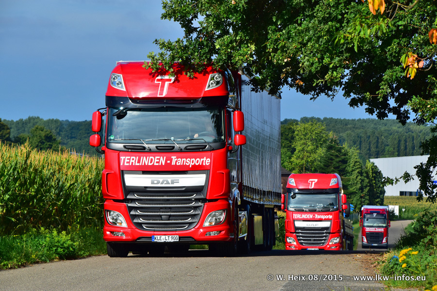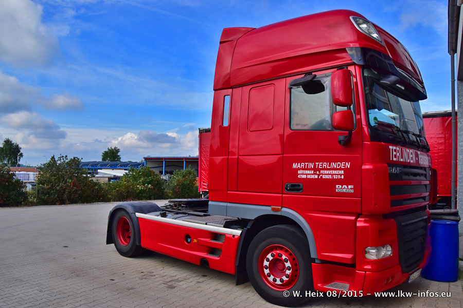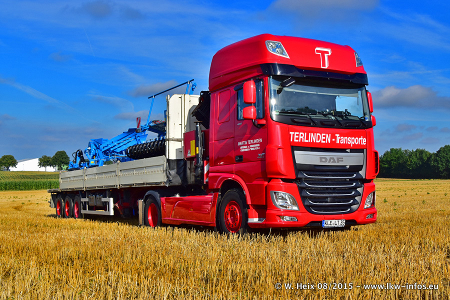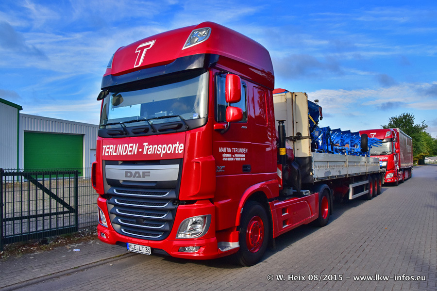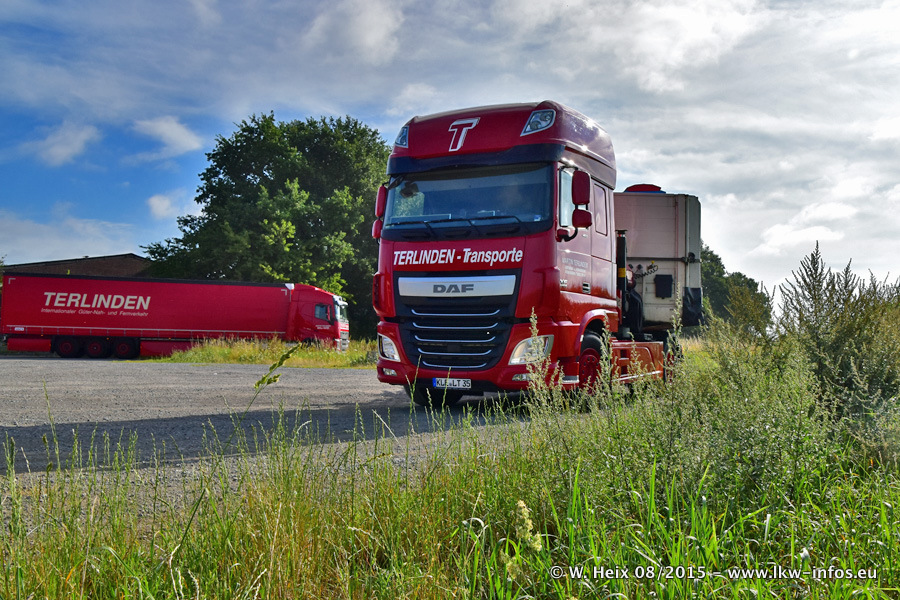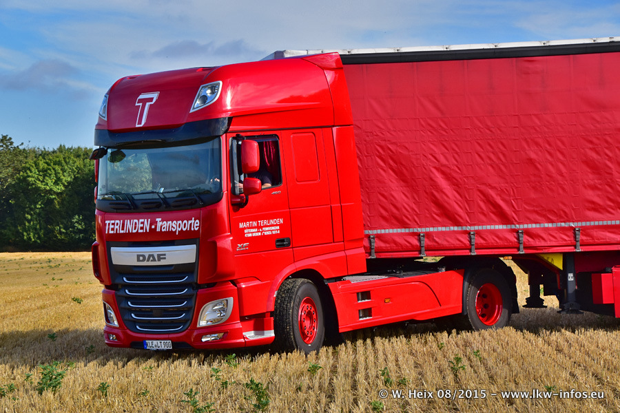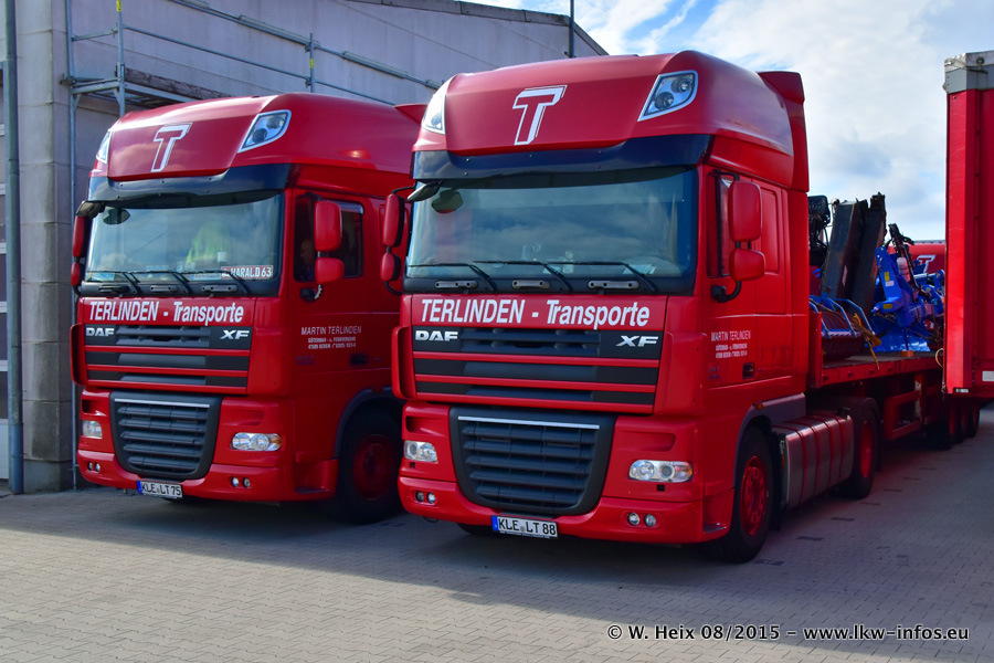 Bilder vom Firmengelände und Fotoshooting mit den letzten drei neuen LKW: Bereits vor rund einem Jahr hat Terlinden einen Volvo New FH 460 (FH 4) bekommen. Und im Juli dieses Jahres sind die nächsten beiden DAF XF 105.460 Euro 6 in den Fuhrpark gekommen. Dafür wurden dier einzige Iveco Stralis AS II und ein älterer DAF XF verkauft. Die ersten ca. 170 Bilder zeigen das Fotoshooting mit den drei neuen LKW, das wir ganz in der Nähe des Firmengeländes "im Grünen" gemacht haben. Die restlichen Bilder habe ich vorher und nachher auf dem Hof von Terlinden gemacht.