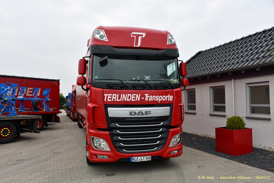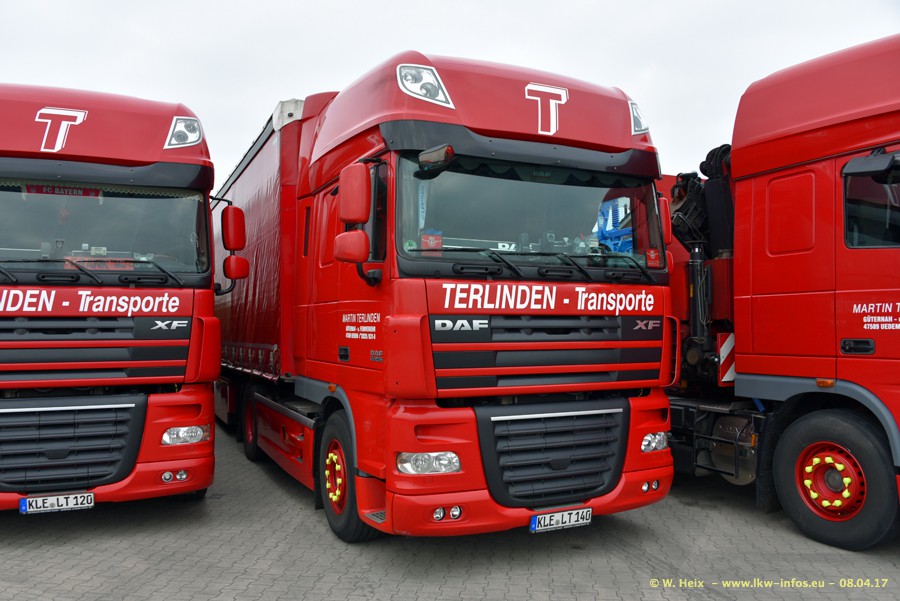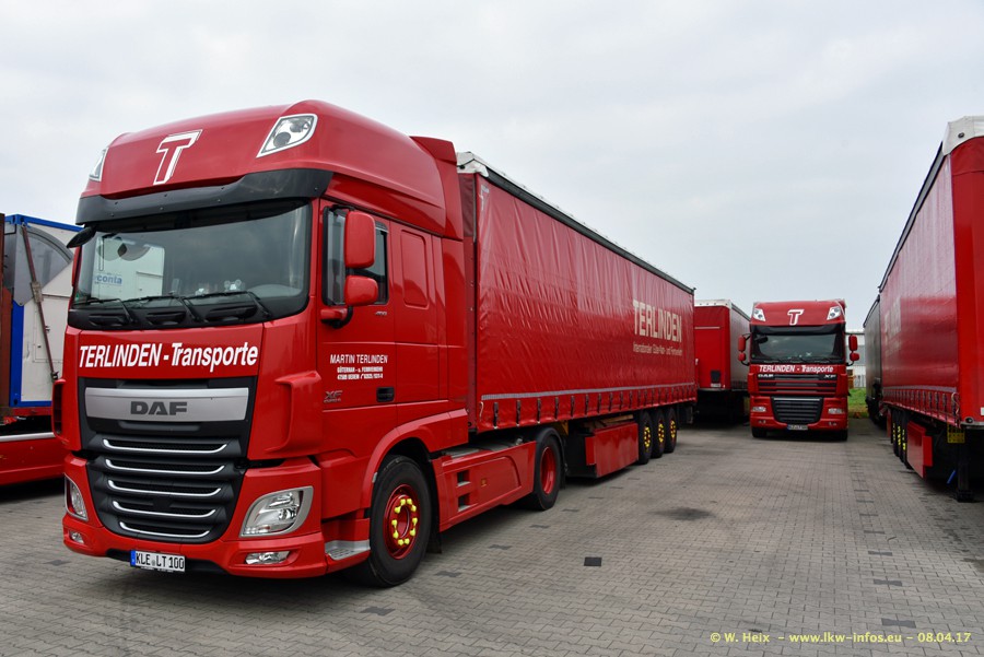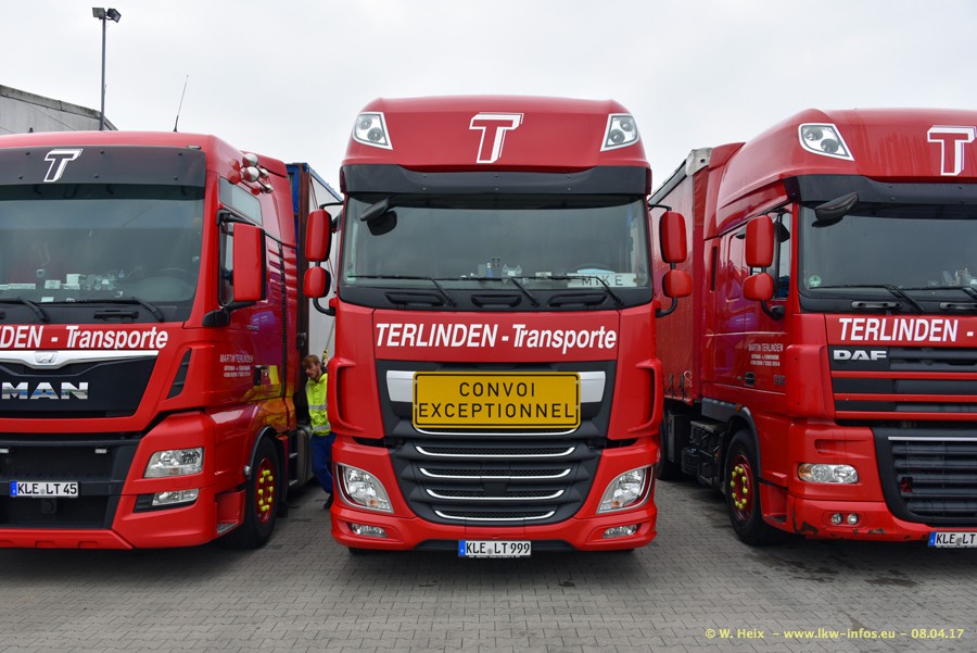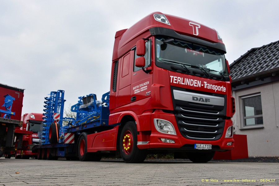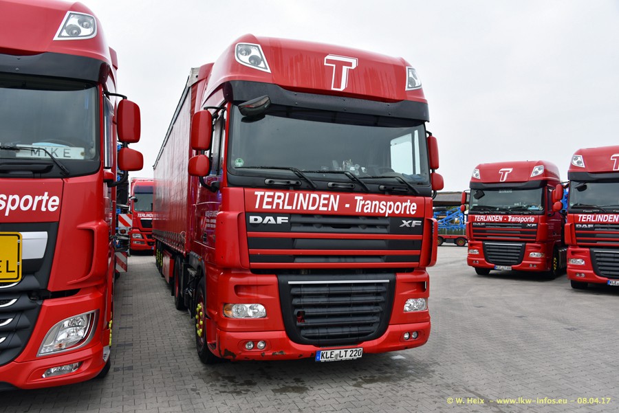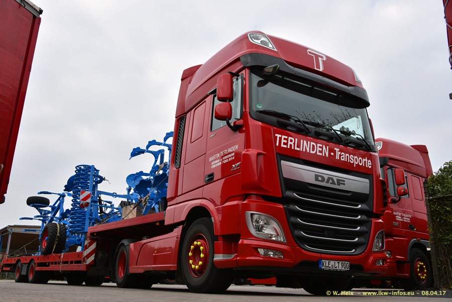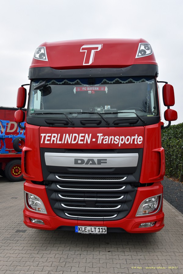 Es gibt drei weitere neue DAF XF Euro 6 bei Terlinden. Das sind die Zugmaschinen mit den Kennzeichen KLE LT 100, KLE LT 115 und KLE LT 345.