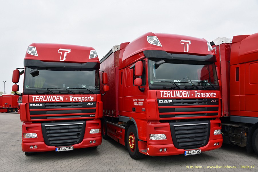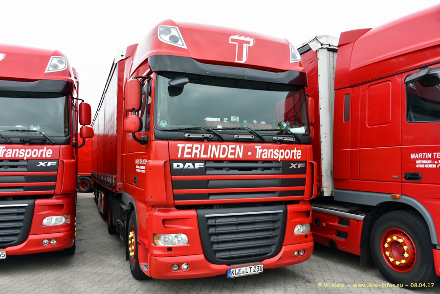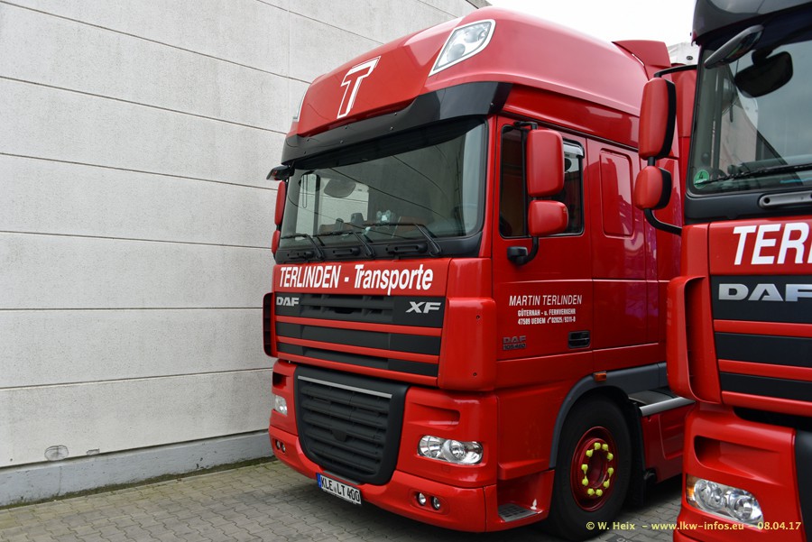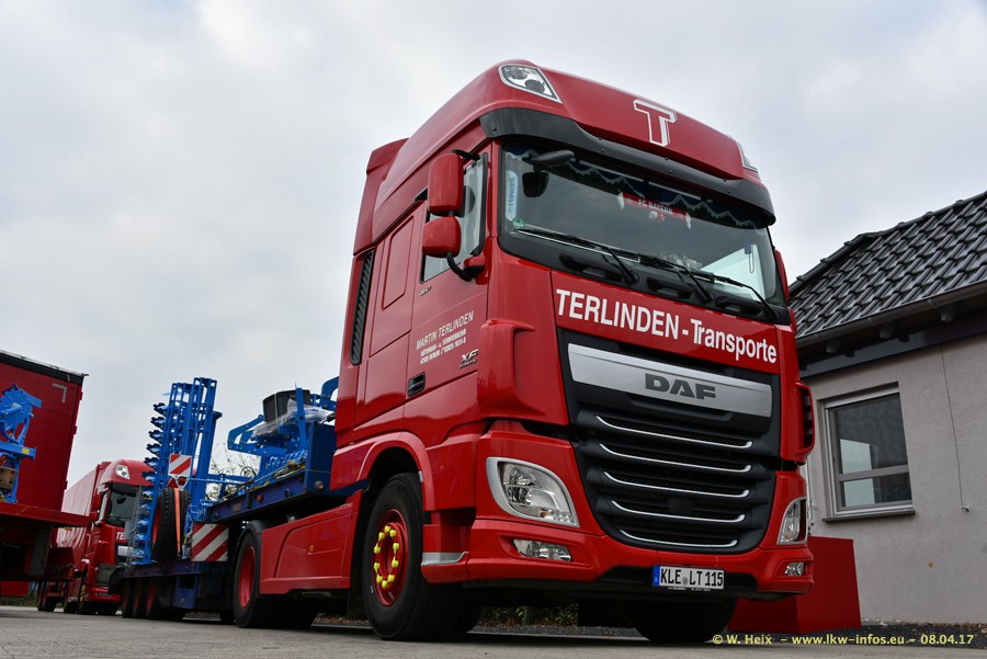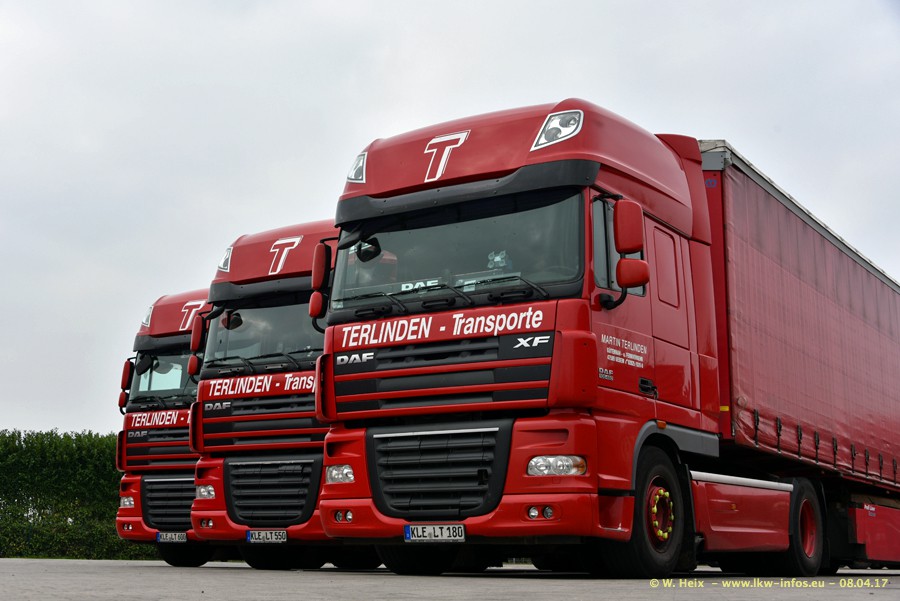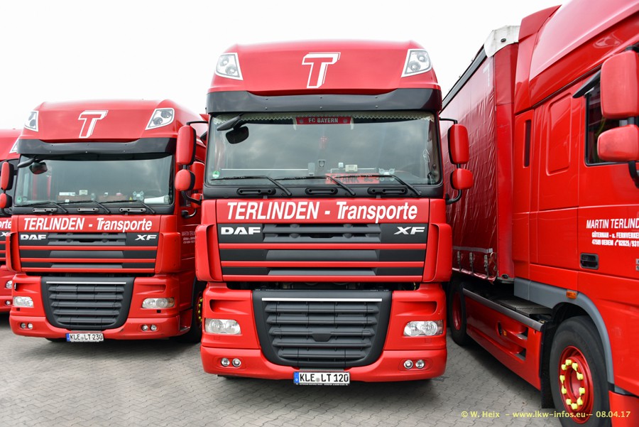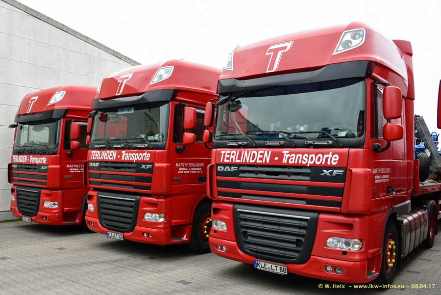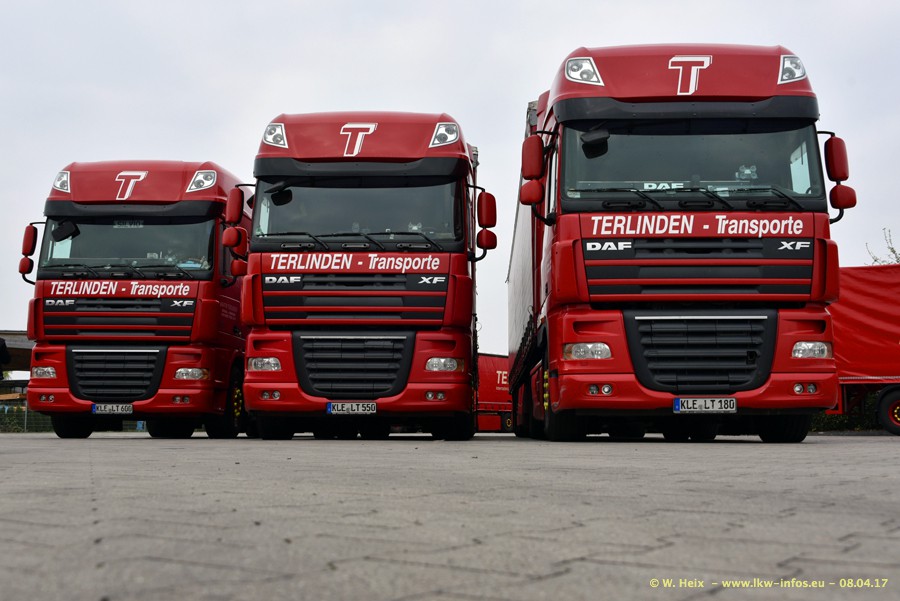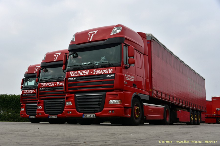 Es gibt drei weitere neue DAF XF Euro 6 bei Terlinden. Das sind die Zugmaschinen mit den Kennzeichen KLE LT 100, KLE LT 115 und KLE LT 345.