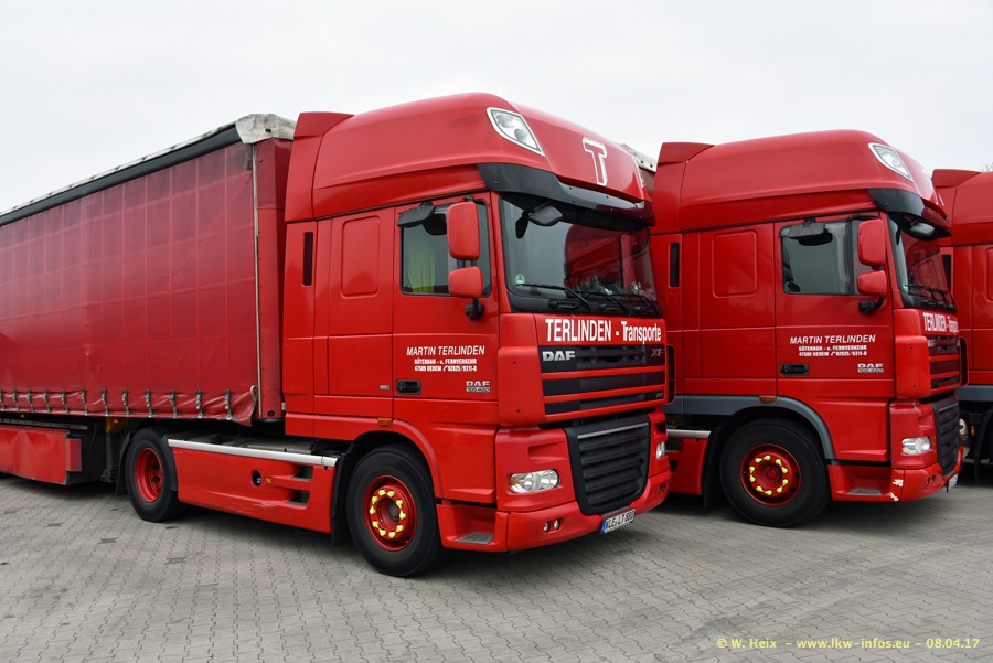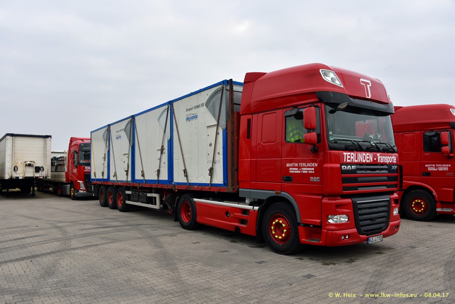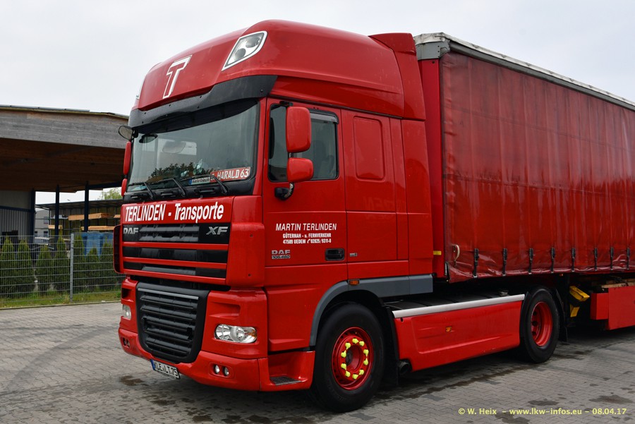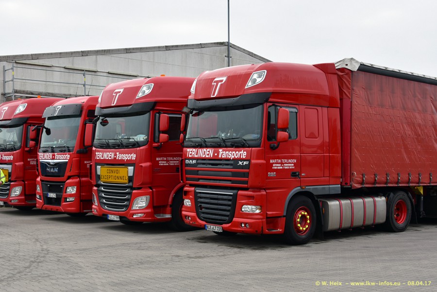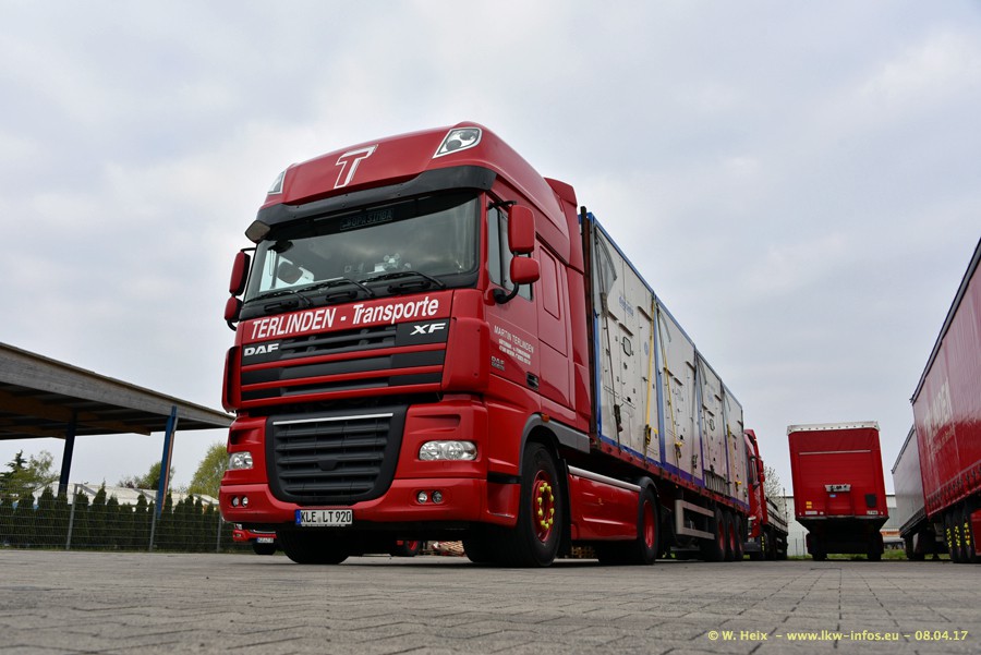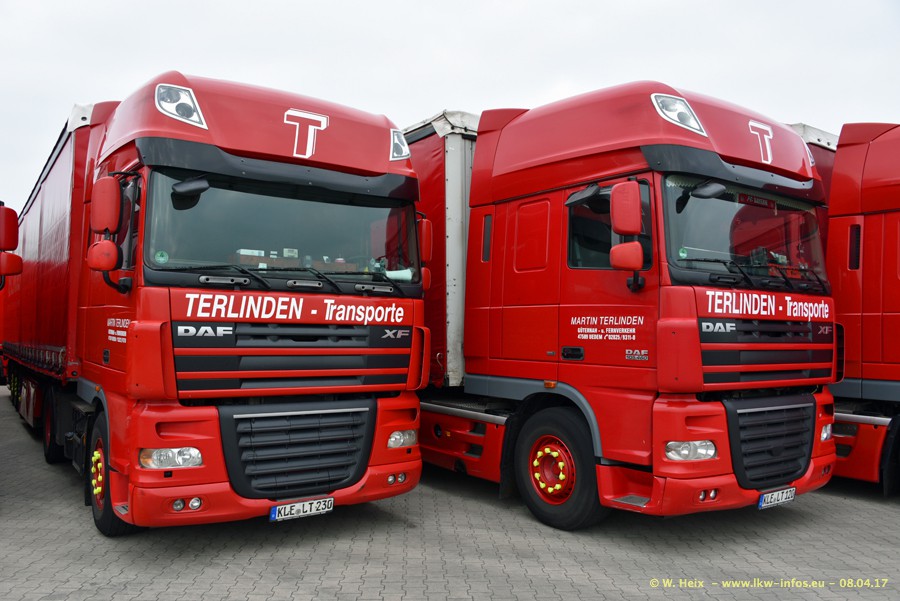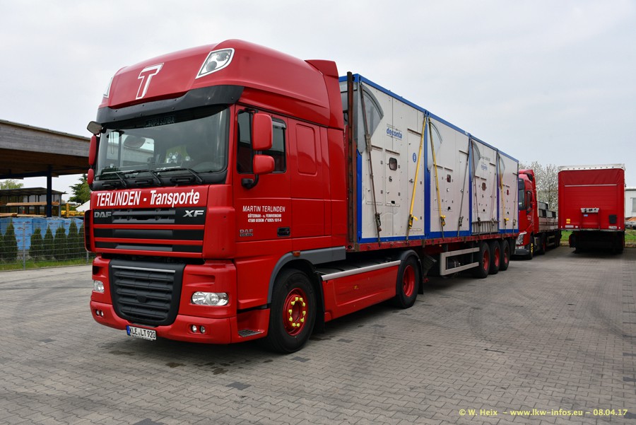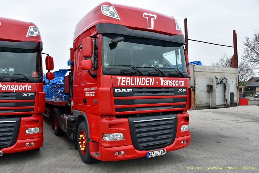 Es gibt drei weitere neue DAF XF Euro 6 bei Terlinden. Das sind die Zugmaschinen mit den Kennzeichen KLE LT 100, KLE LT 115 und KLE LT 345.