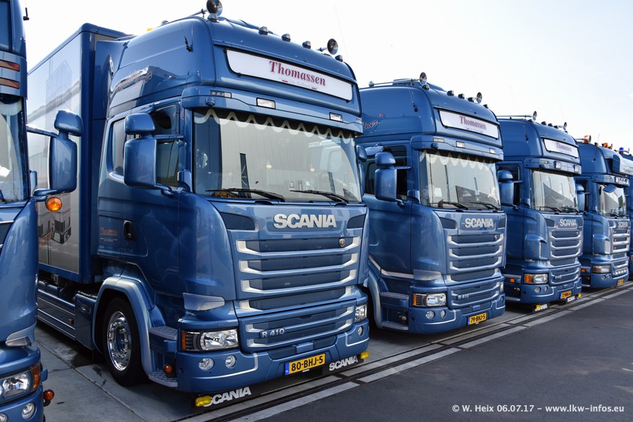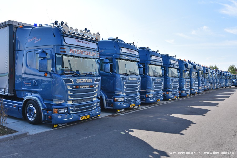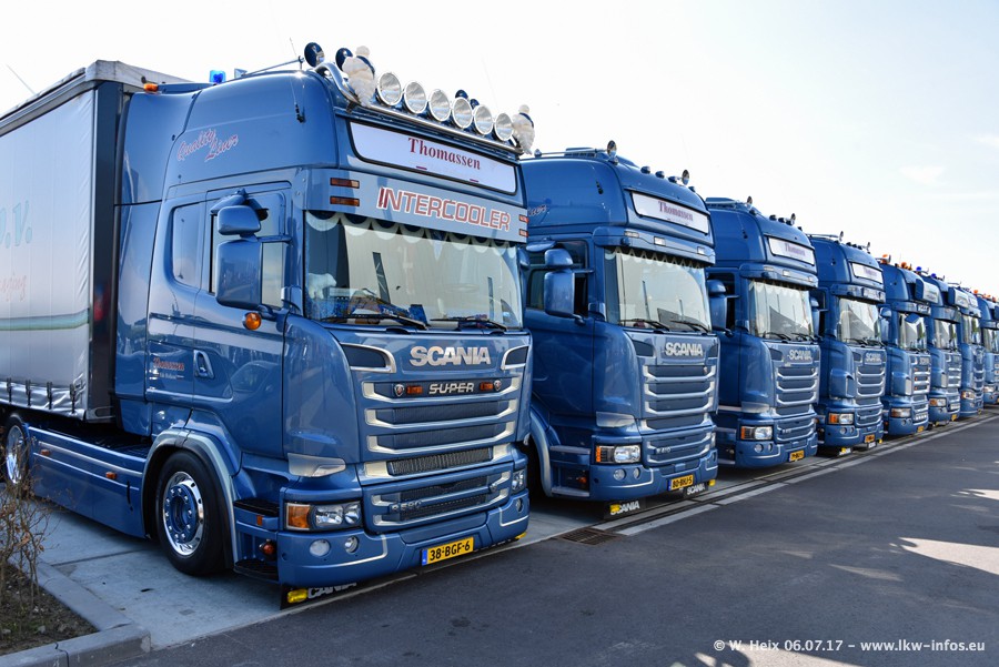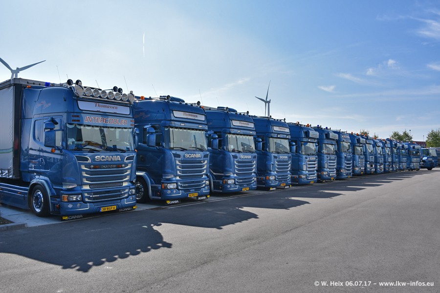 Im Rahmen der 2. WSI XXL Truckshow, die auf dem Gelände der Frima Thomassen Groep/Tholu stattfand, war auch der vermutlich komplette Fuhrpark zu sehe. Zwar standen die LKW alle in einer Reihe nebenander, trotzdem sind einige schöne Bilder entstanden.
