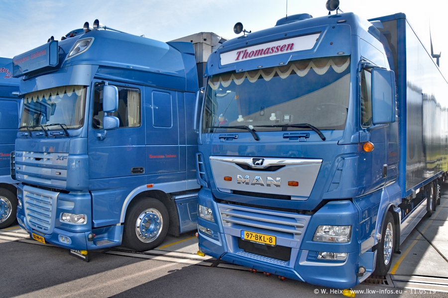 Wie schon in den letzten beiden Jahren hat Tholu/Thomassen auch in diesem Jahr im Rahmen der WSI XXL Truckshow, die ja bekanntlich auf dem Gelände von Thomassen veranstaltet wird, seinen kompletten Fuhrpark präsentiert. Hier sind die Bilder davon. Die Fahrzeuge standen leider wieder sehr eng nebeneinaner (was nicht anders ging), aber trotzdem sieht man den schönen Fuhrpark gut.