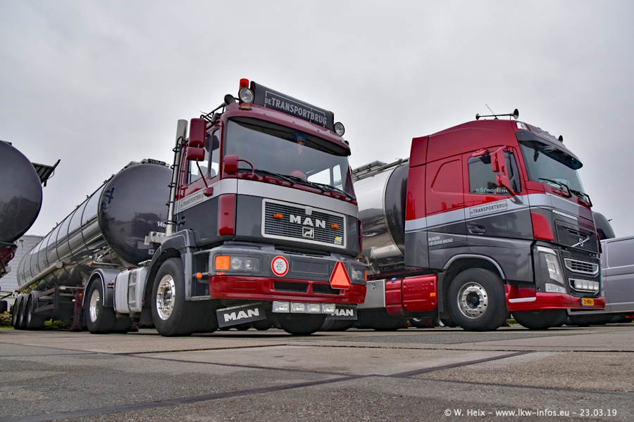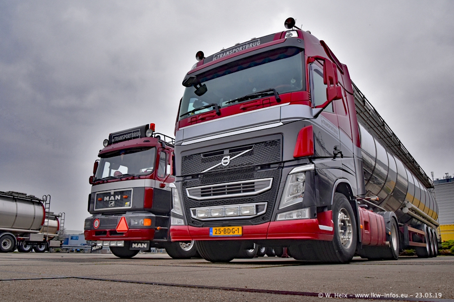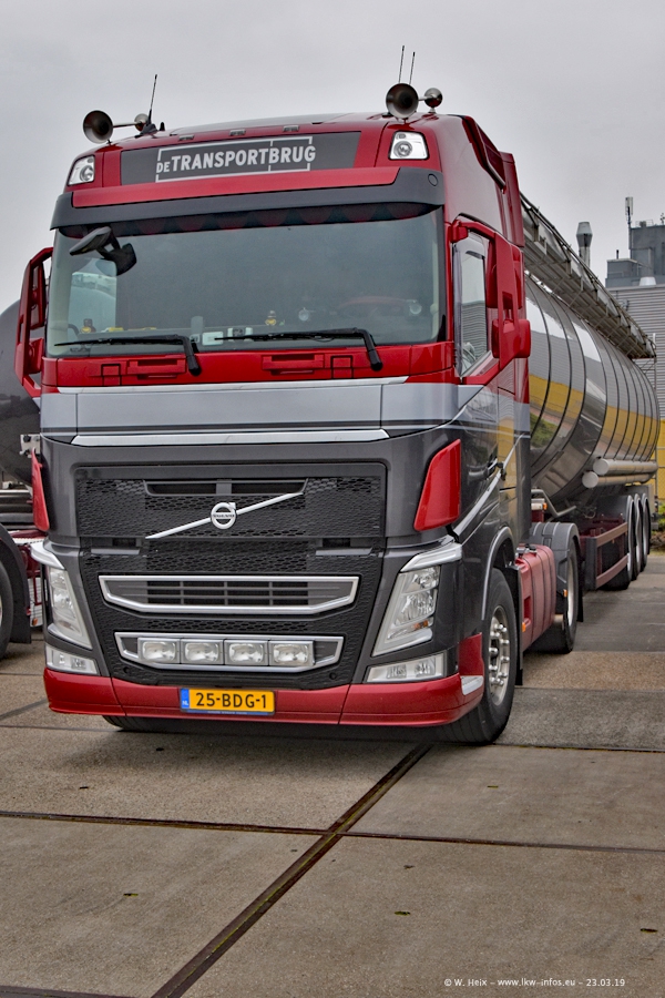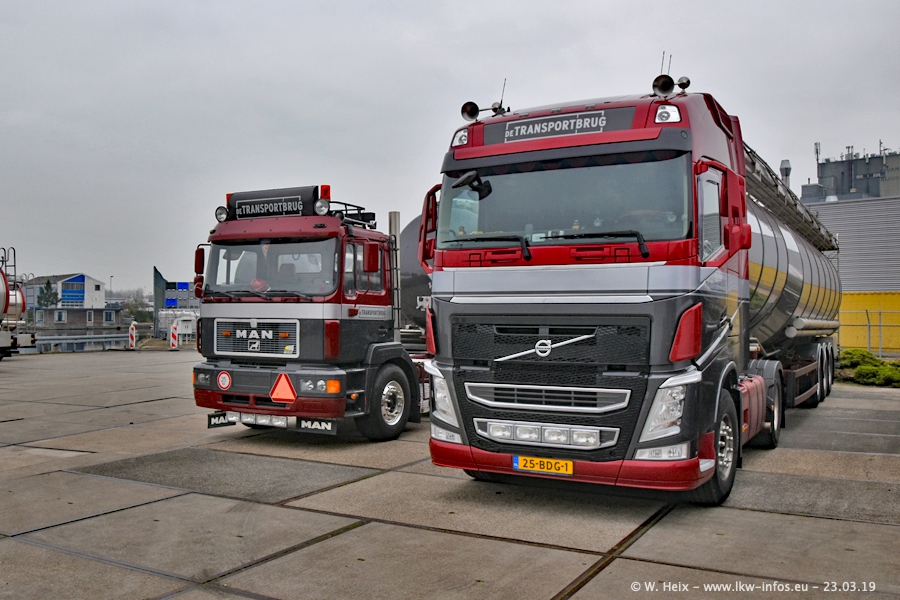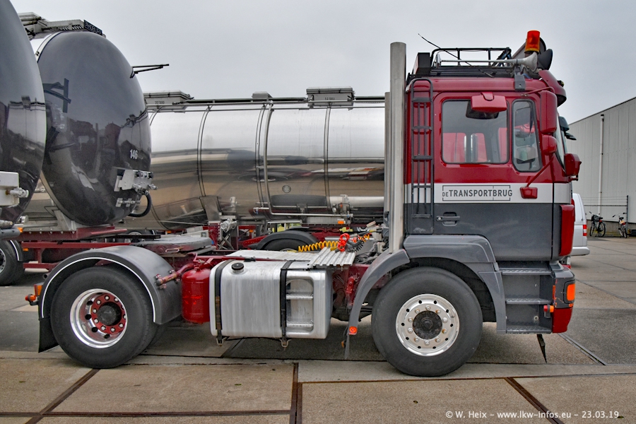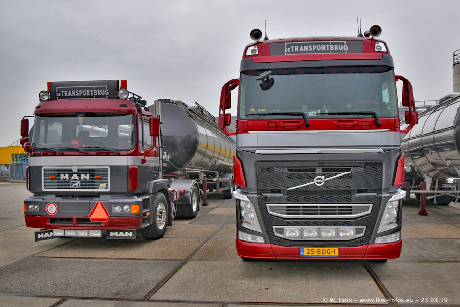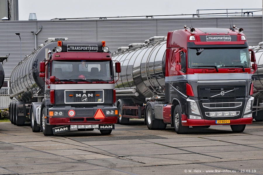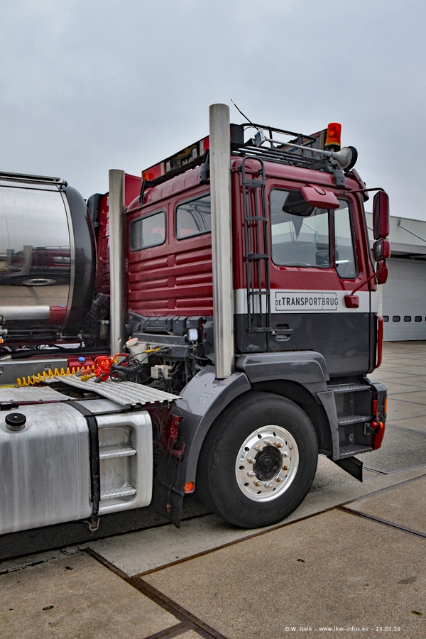Das war mein erster Besuch bei de Transporbrug. Der Fuhrpark besteht aktuell aus 25 Zugmaschinen und 40 Tankaufliegern. Bei den LKW handelt es sich um 2 Meredes-Benz Actros 4, einigen VOLVO FH 2 - FH 4 sowie DAF und SCANIA. Der MAN F 2000 dient noch zum Umsetzten von Aufliegern auf dem Firmengelände ist und ist auf dem Weg vom Klassiker zum Oldtimer. Es waren fast alle LKW zuhause beim Fototermin!