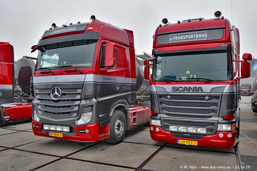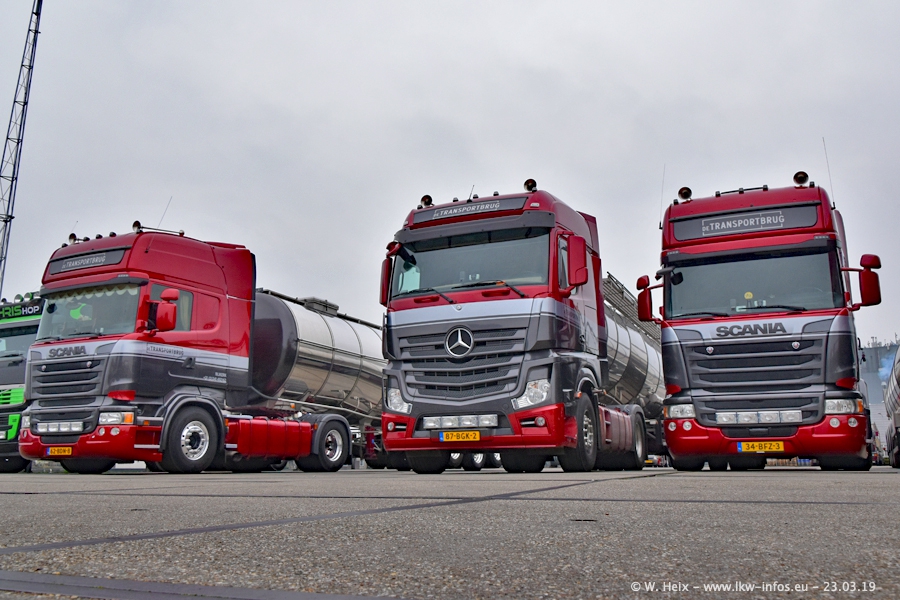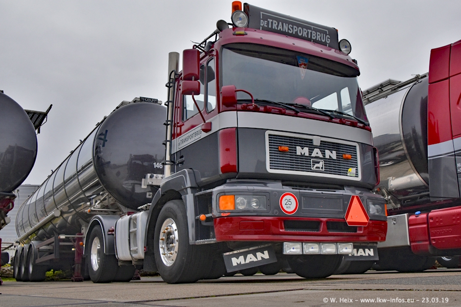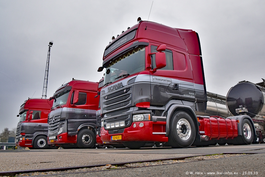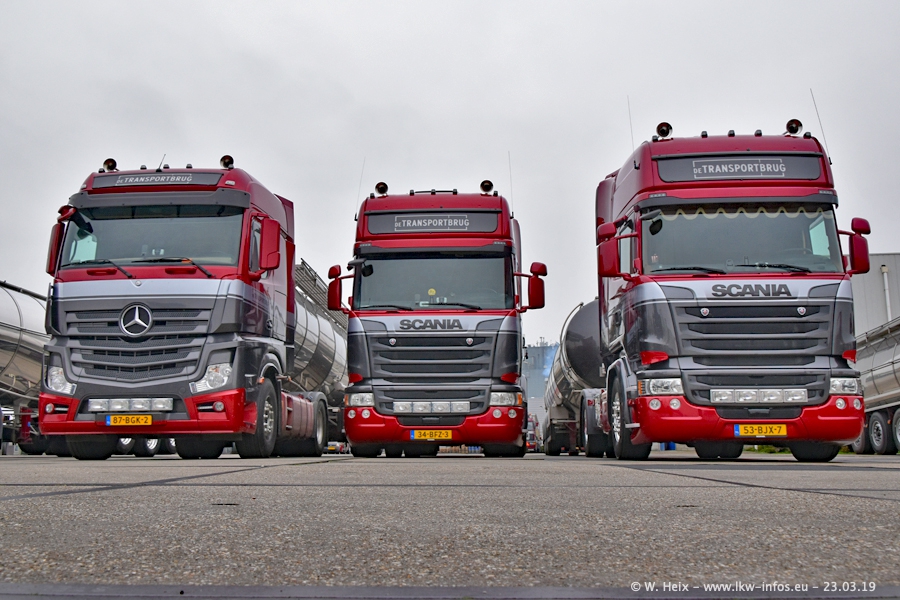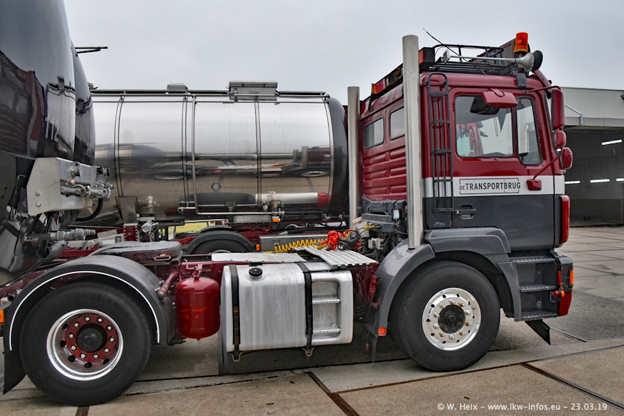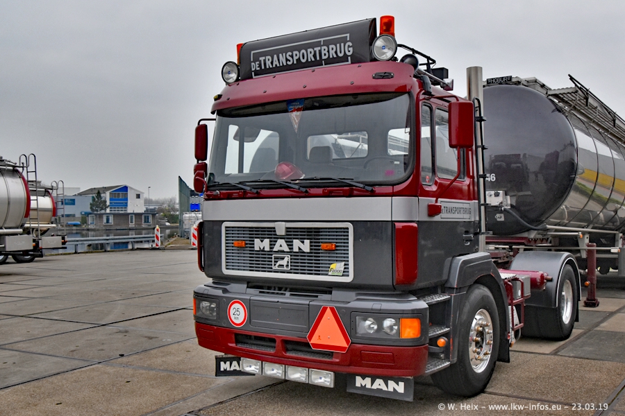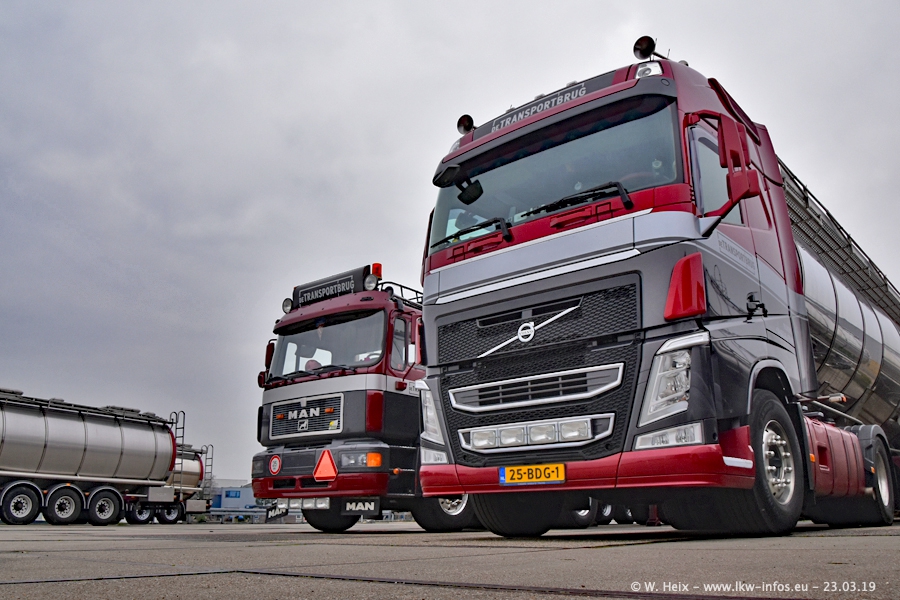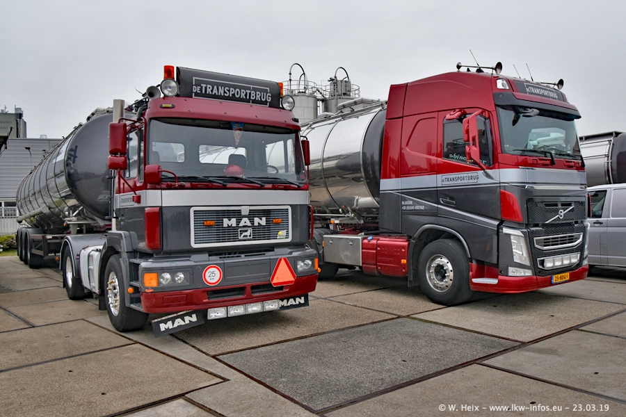 Das war mein erster Besuch bei de Transporbrug. Der Fuhrpark besteht aktuell aus 25 Zugmaschinen und 40 Tankaufliegern. Bei den LKW handelt es sich um 2 Meredes-Benz Actros 4, einigen VOLVO FH 2 - FH 4 sowie DAF und SCANIA. Der MAN F 2000 dient noch zum Umsetzten von Aufliegern auf dem Firmengelände ist und ist auf dem Weg vom Klassiker zum Oldtimer. Es waren fast alle LKW zuhause beim Fototermin!