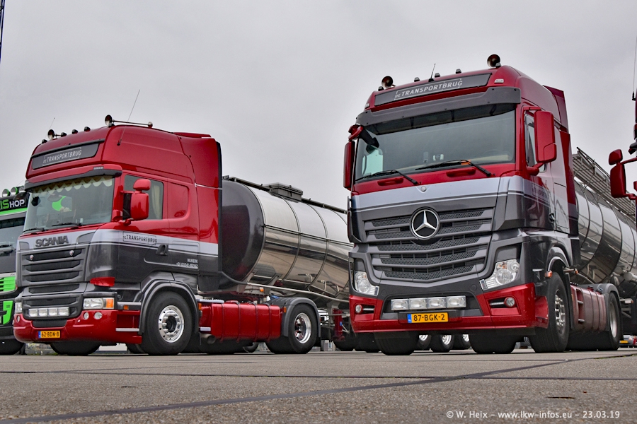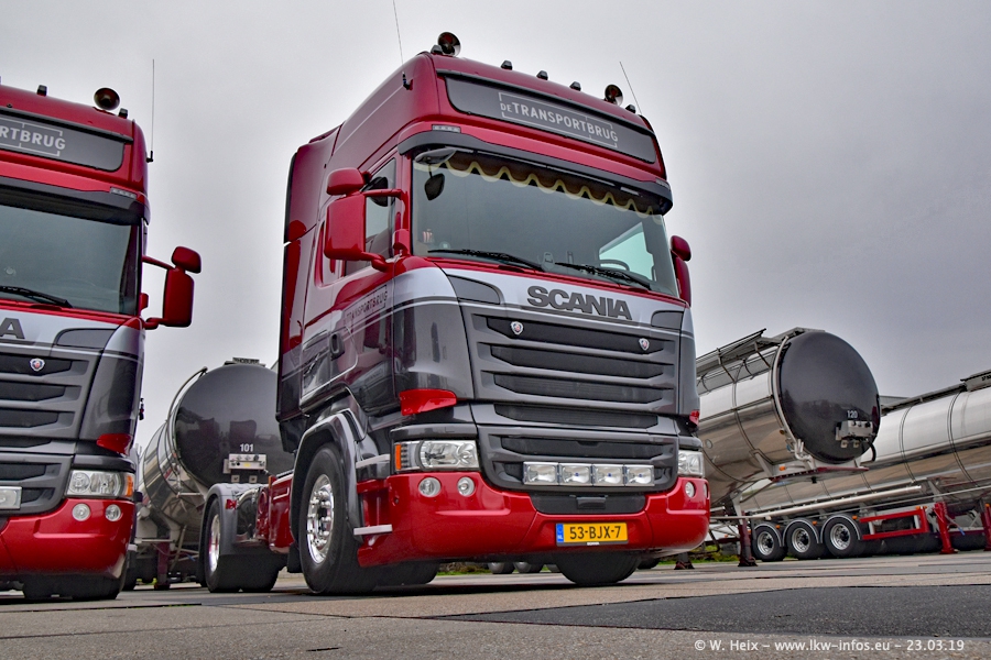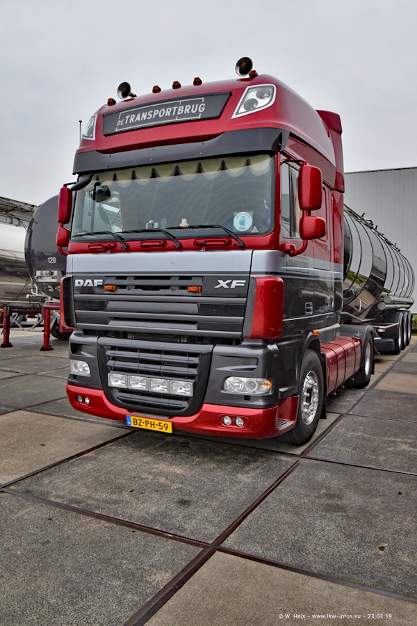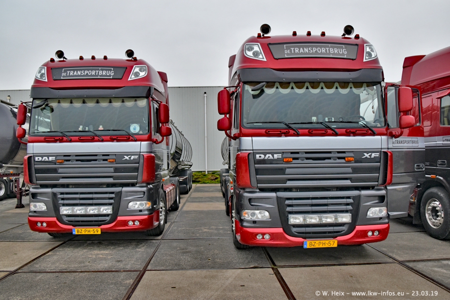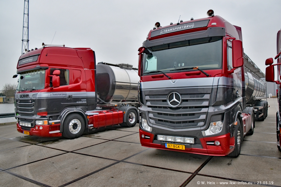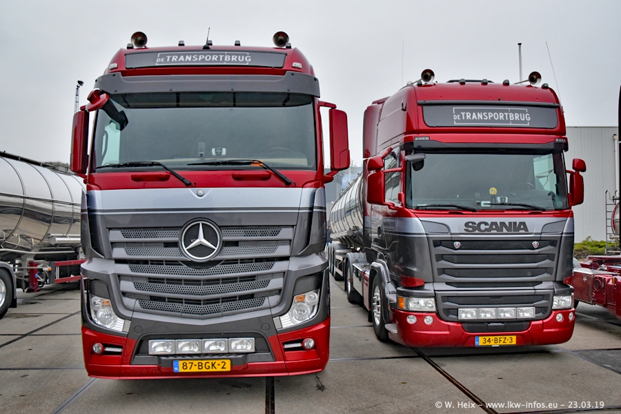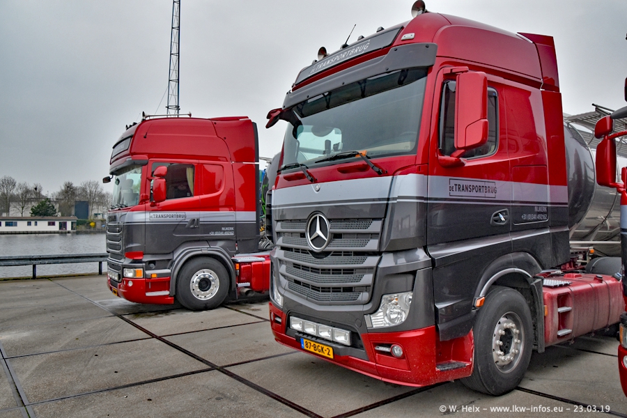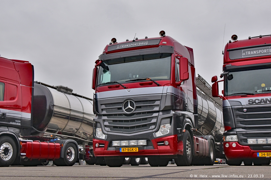 Das war mein erster Besuch bei de Transporbrug. Der Fuhrpark besteht aktuell aus 25 Zugmaschinen und 40 Tankaufliegern. Bei den LKW handelt es sich um 2 Meredes-Benz Actros 4, einigen VOLVO FH 2 - FH 4 sowie DAF und SCANIA. Der MAN F 2000 dient noch zum Umsetzten von Aufliegern auf dem Firmengelände ist und ist auf dem Weg vom Klassiker zum Oldtimer. Es waren fast alle LKW zuhause beim Fototermin!