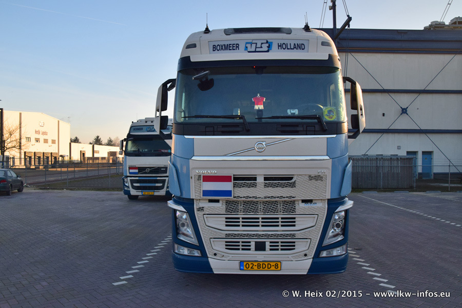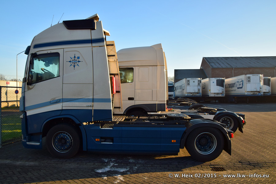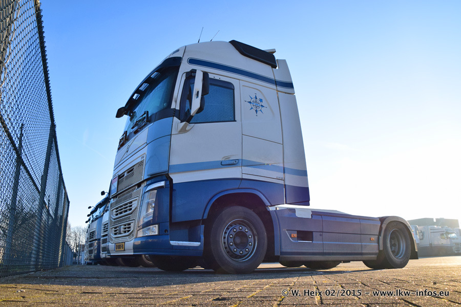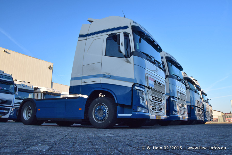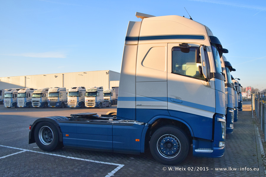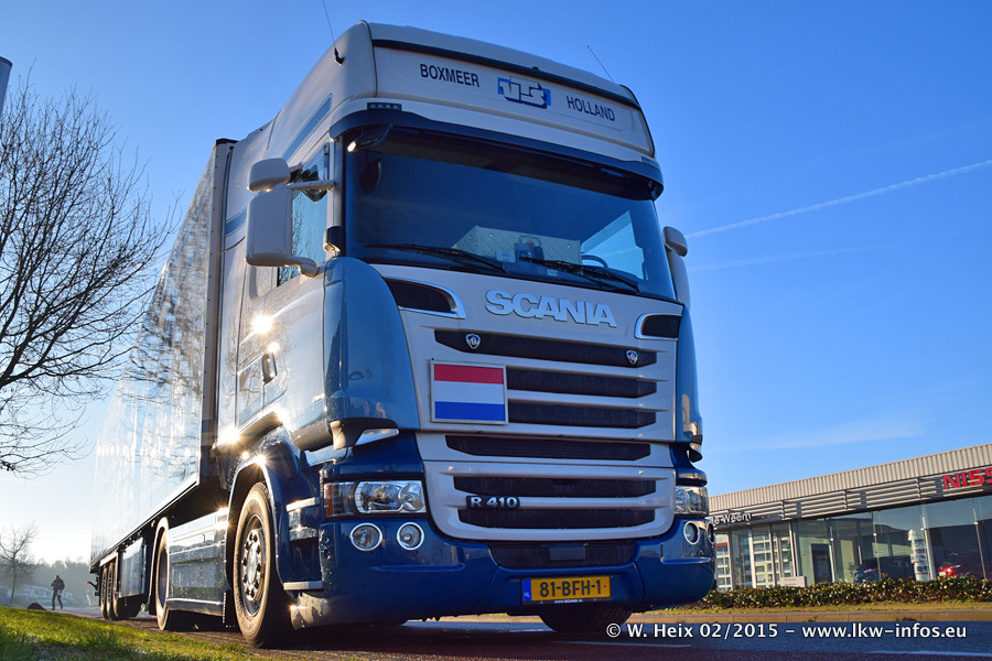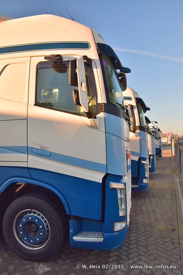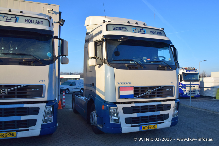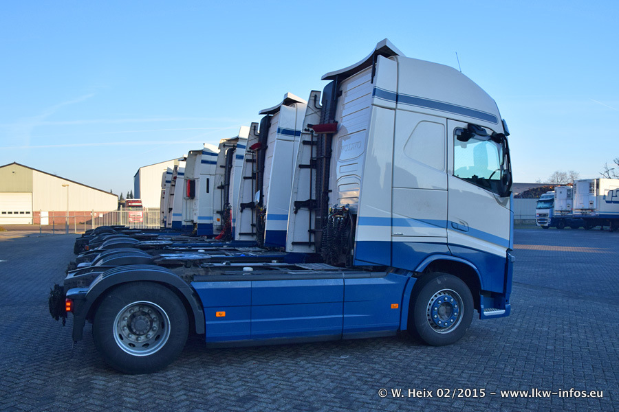 Zu sehen sind weitere neue Volvo FH und der zweite der beiden neuen Scania R 410 Streamline sowie ältere Fahrzeuge.