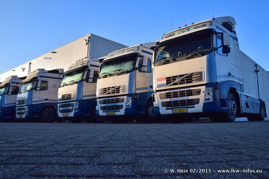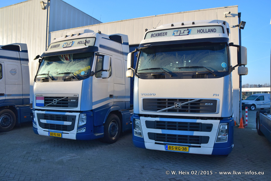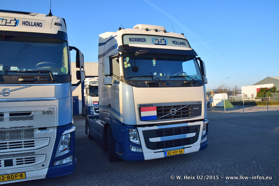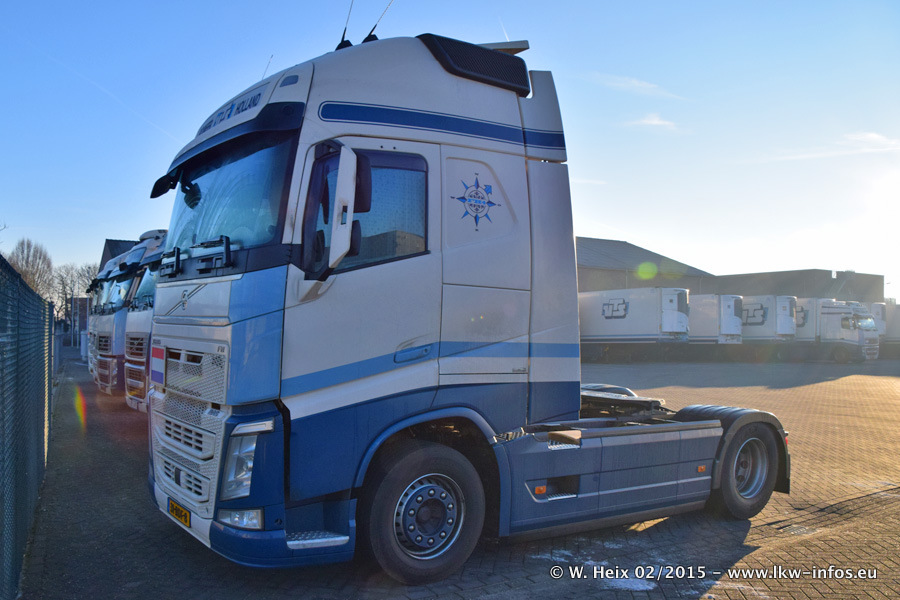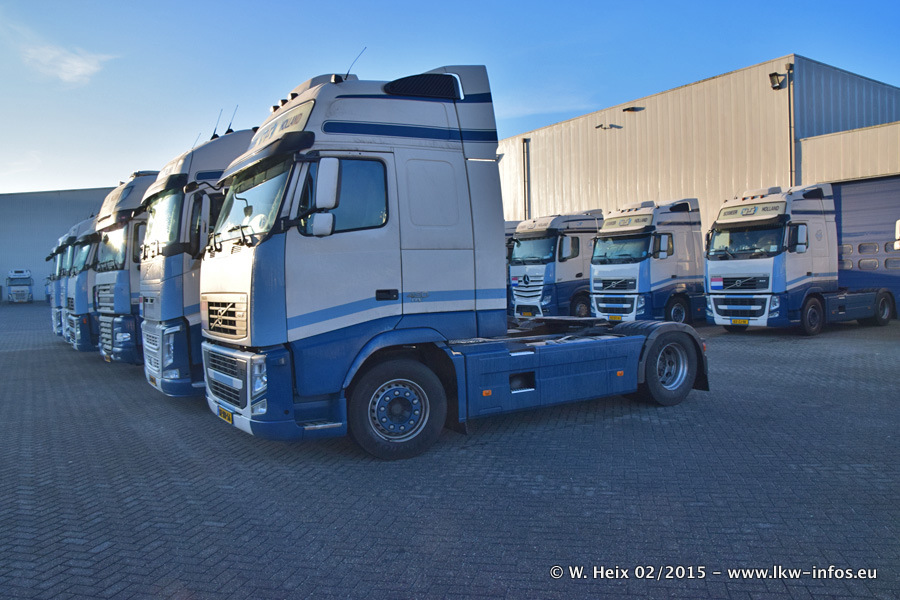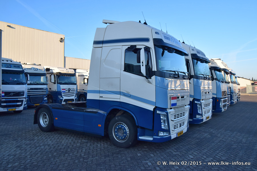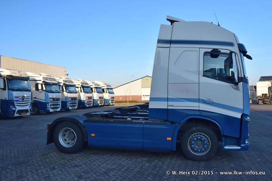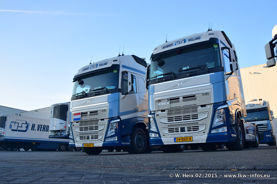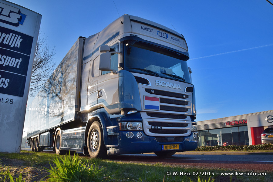 Zu sehen sind weitere neue Volvo FH und der zweite der beiden neuen Scania R 410 Streamline sowie ältere Fahrzeuge.