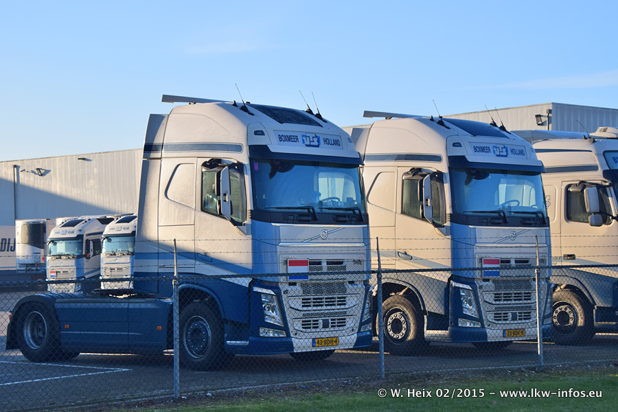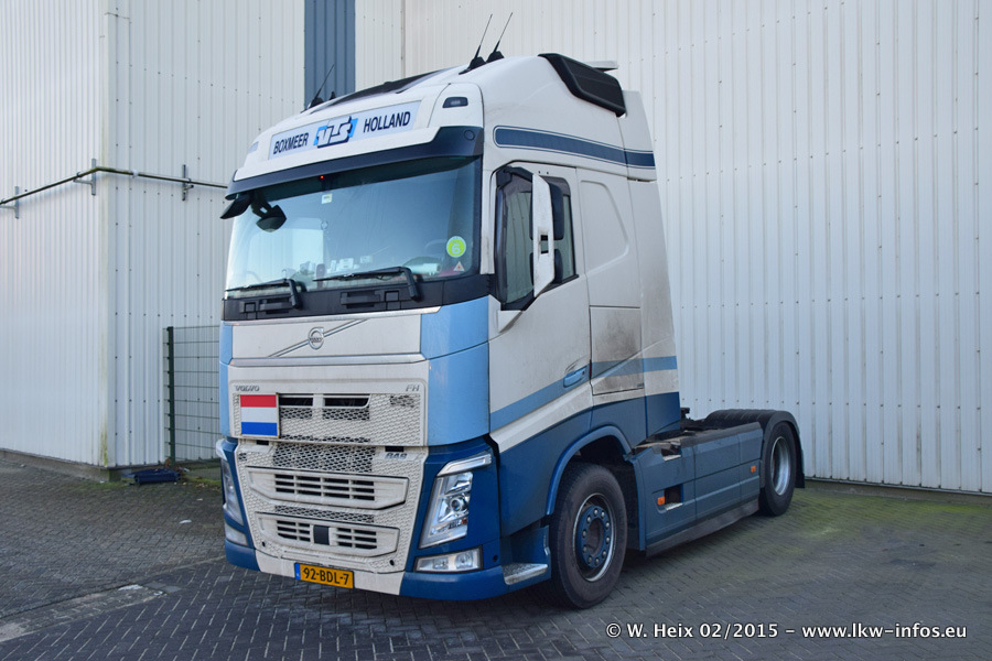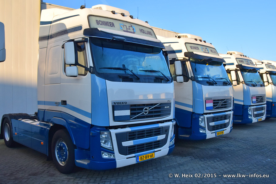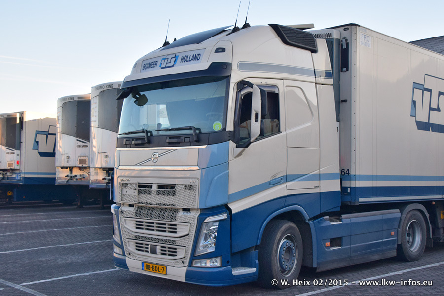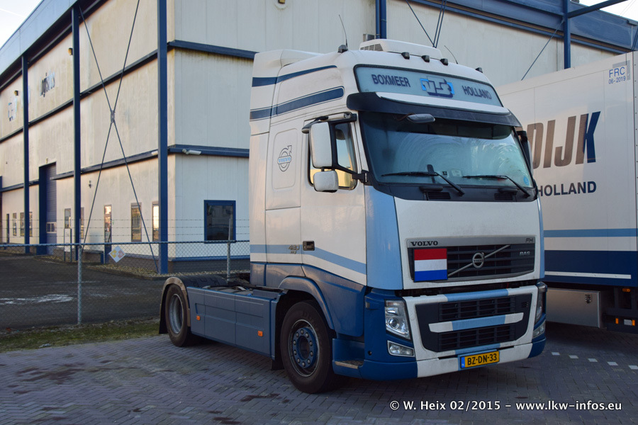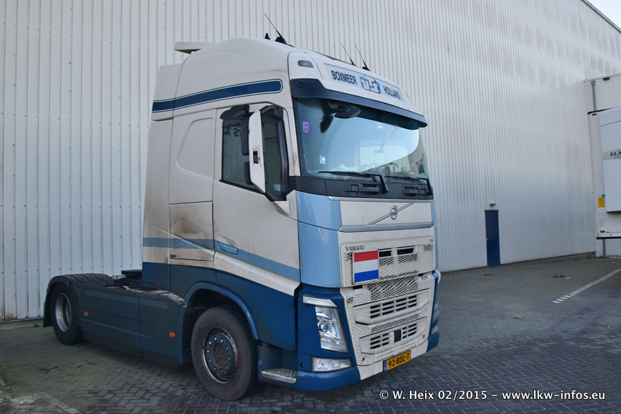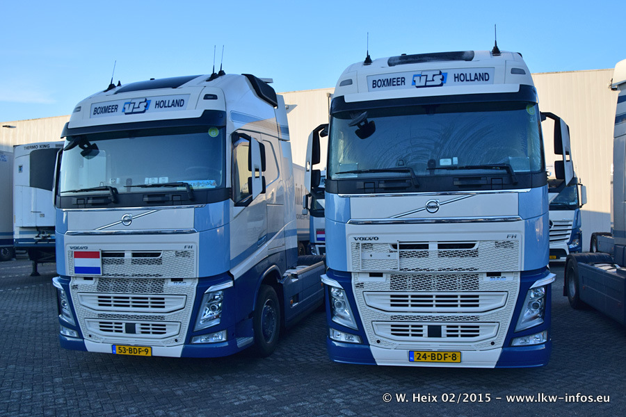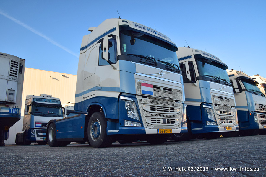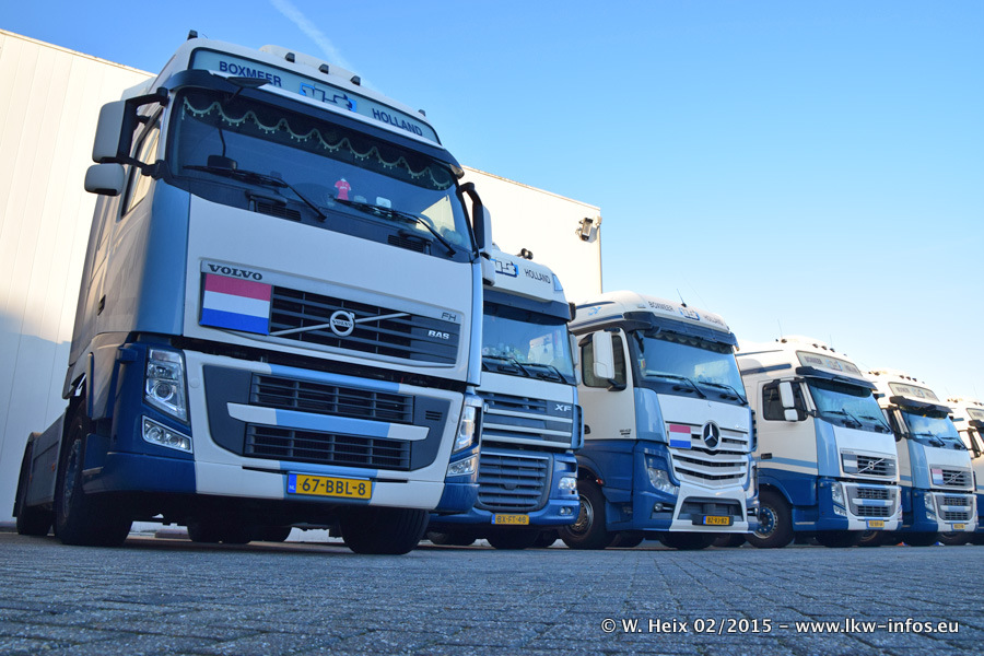 Zu sehen sind weitere neue Volvo FH und der zweite der beiden neuen Scania R 410 Streamline sowie ältere Fahrzeuge.