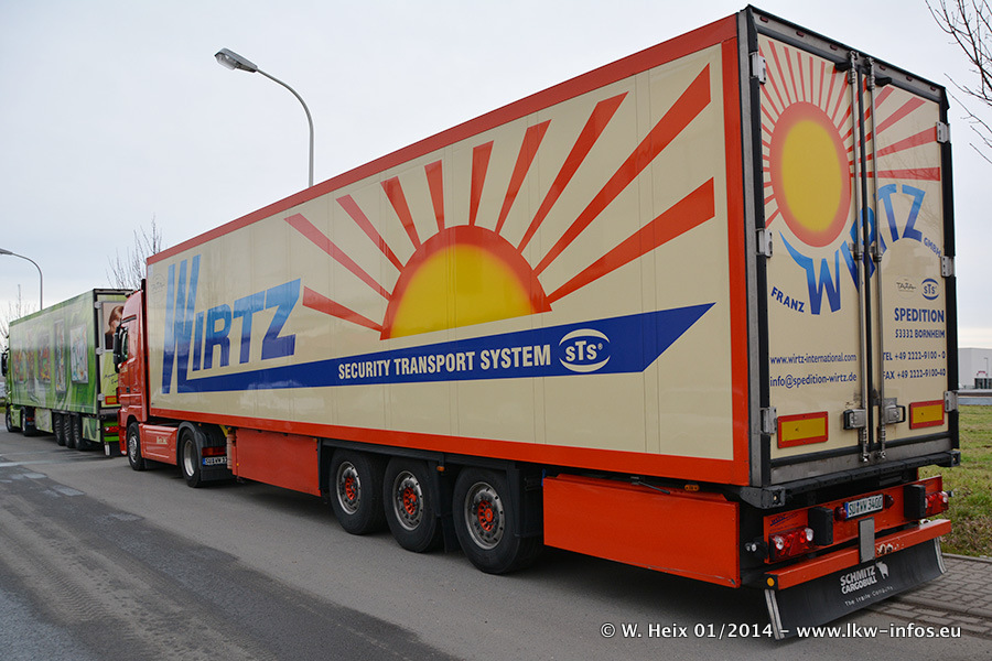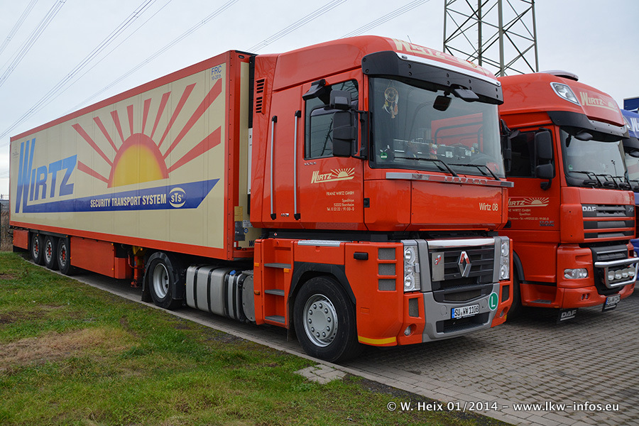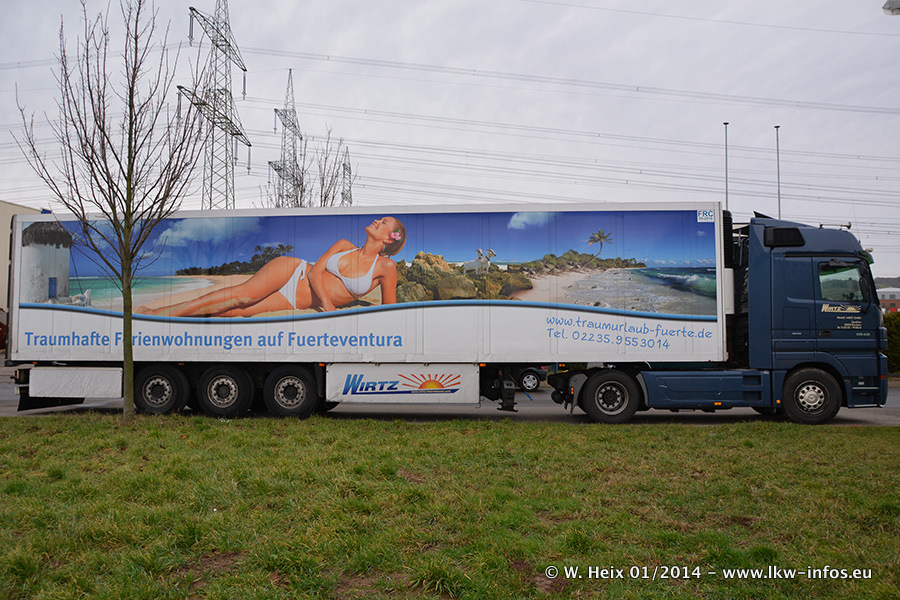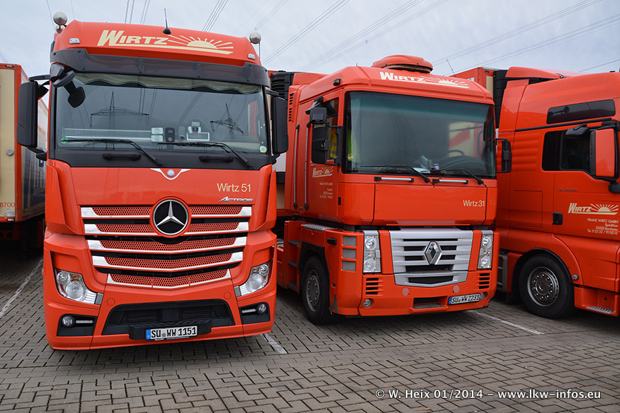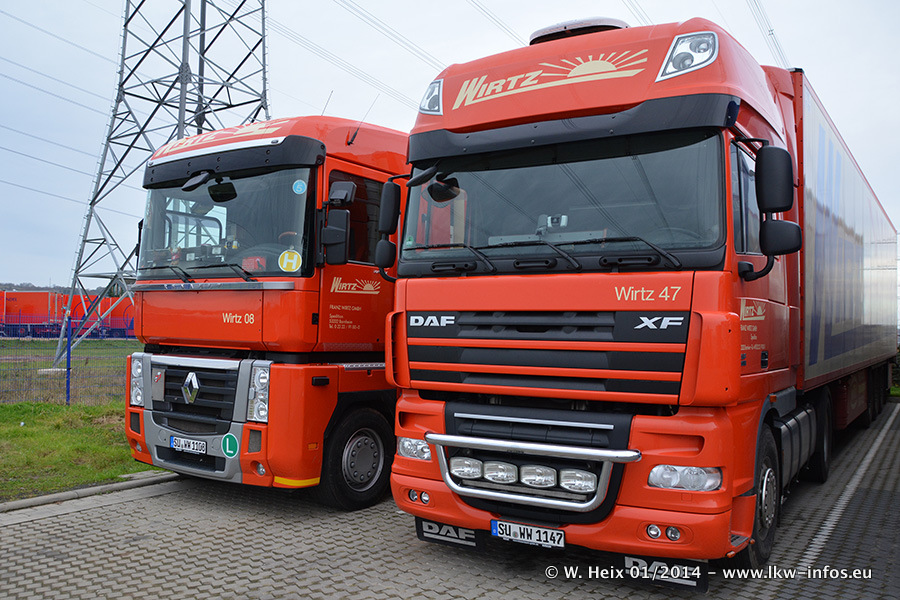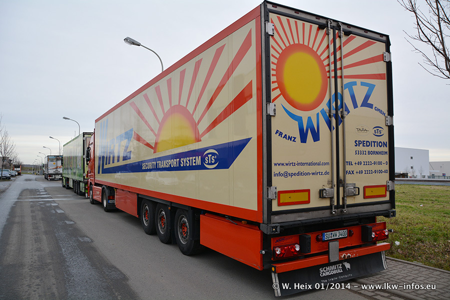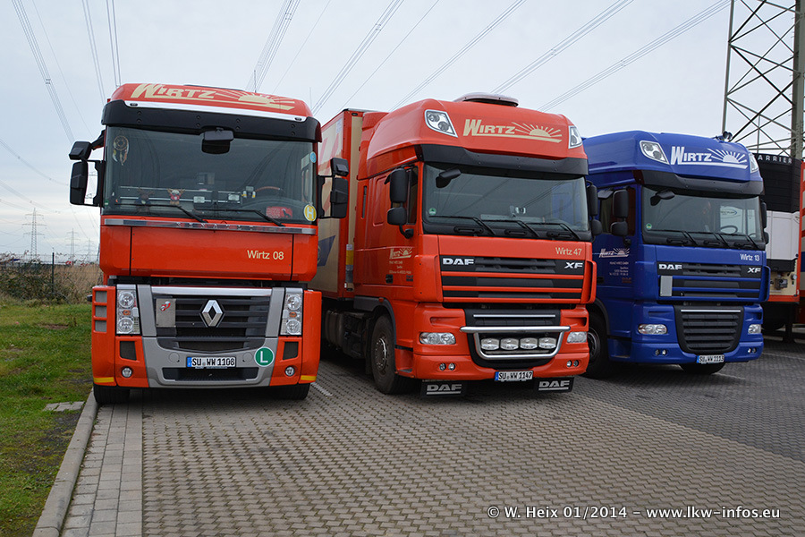 Nach knapp 10 Jahren war ich wieder bei der Spedition Wirtz in Bornheim (Nähe Bonn) zu Besuch. Entsprehend stark hat sich der Fuhrpark verändert und ist größer geworden. Aktuell sind LKW von den Herstellern DAF, MAN, Mercedes-Benz, Renault und Scania im Fuhrpark. Der blaue Scania T 164 V8 Hauber ist immer noch im Fuhrpark und wird in den Sommermonaten noch regelmässig für kürzere Fahrten eingesetzt.