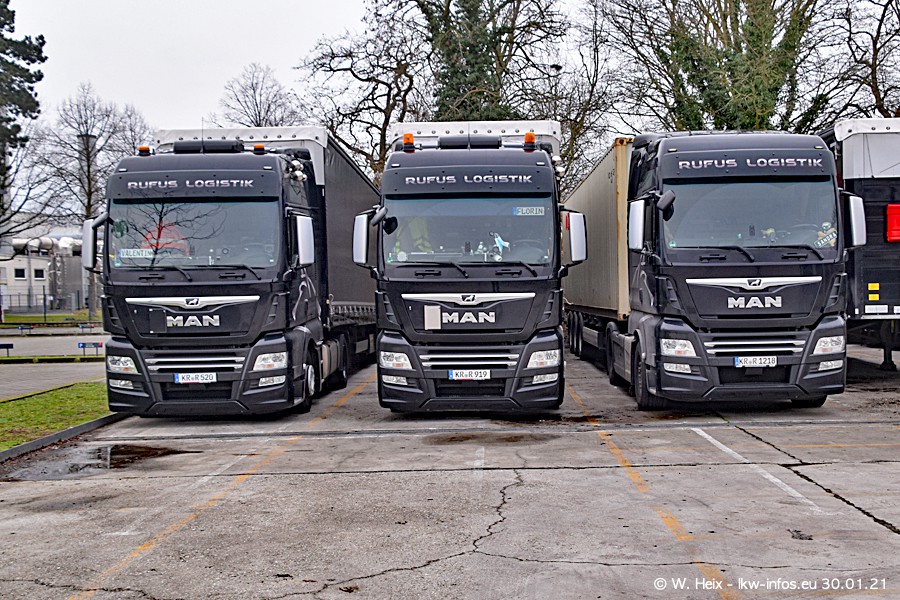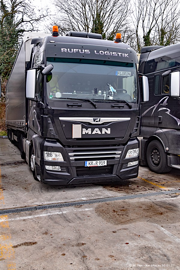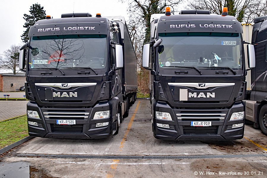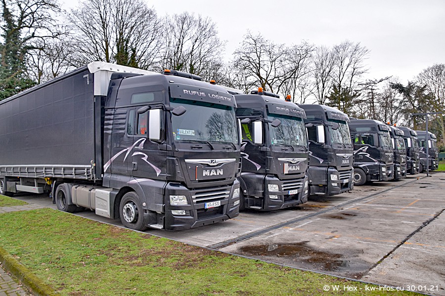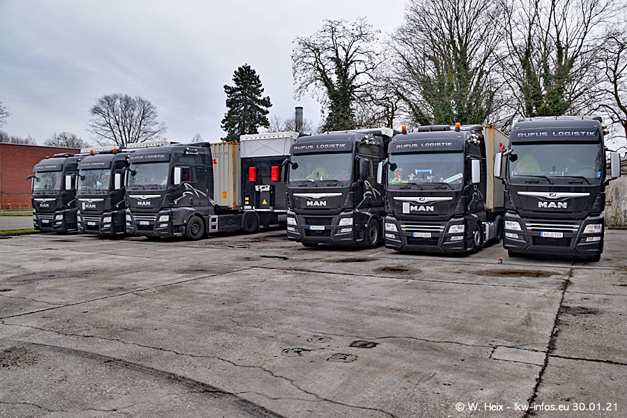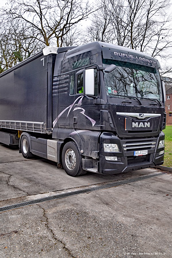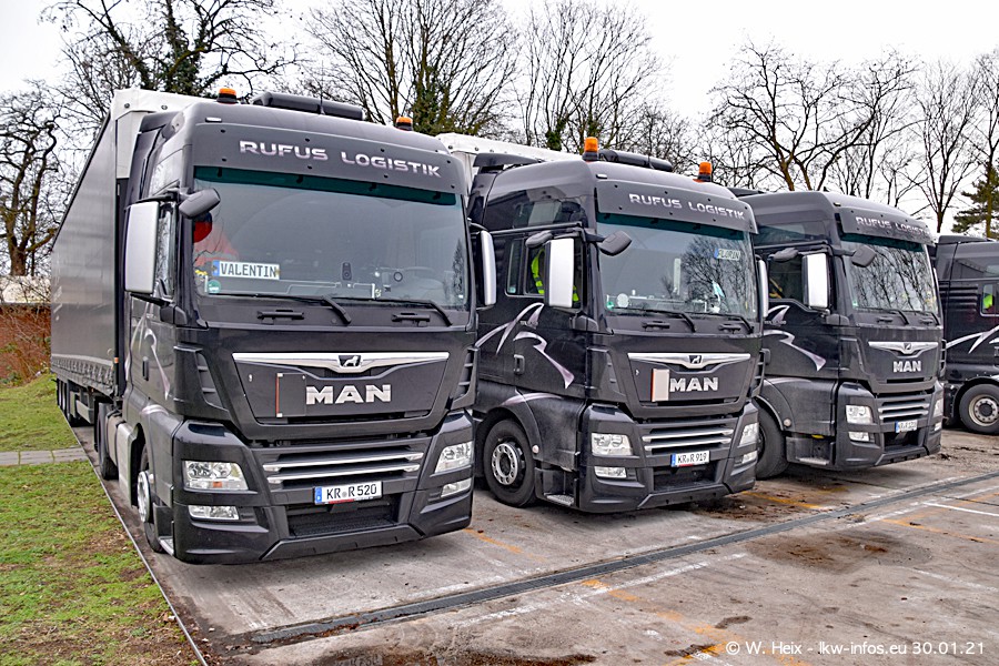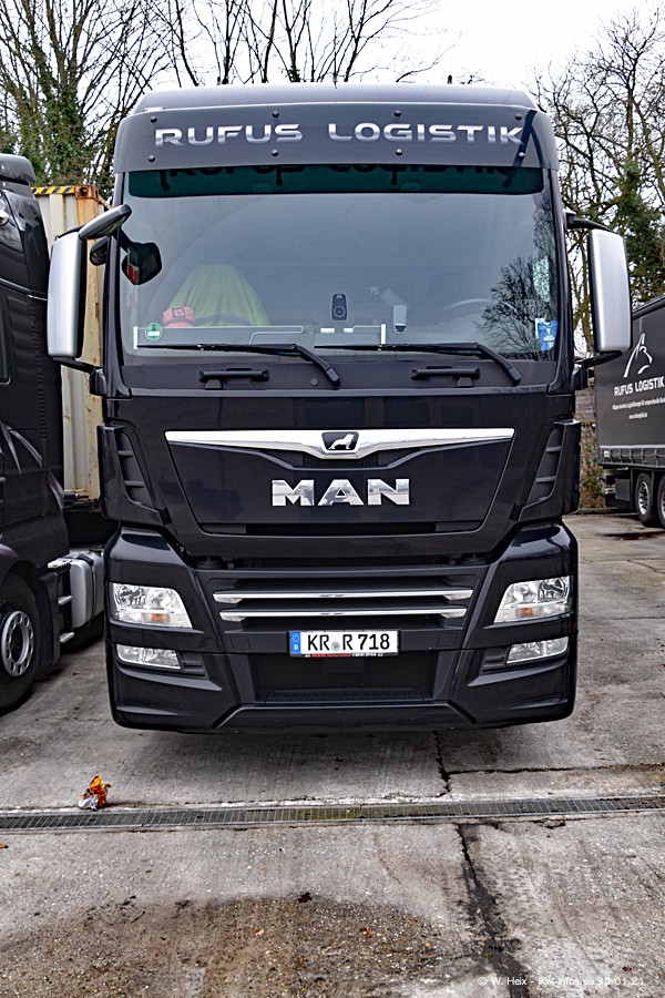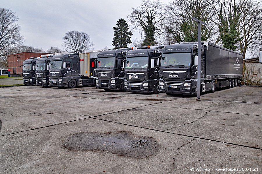 Die Firma Rufus Logistik aus Krefeld hat inzwkschen 10 LKW, fast alles MAN TGX. Drei davon habe ich in den lezten Wochen schon bei den Fahrern zuhause fotografiert. Die heutigen Bilder zeigen den Fuhrpark zuhause in Krefeld mit den "restlichen" sieben Fahrzeugen.
