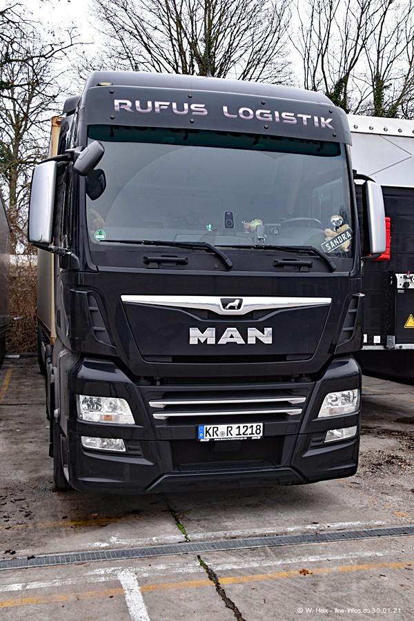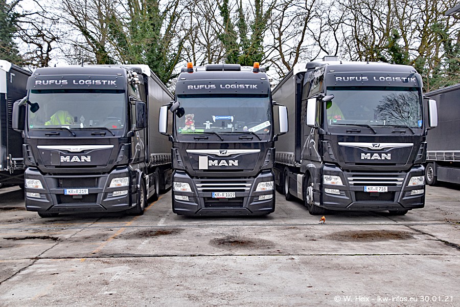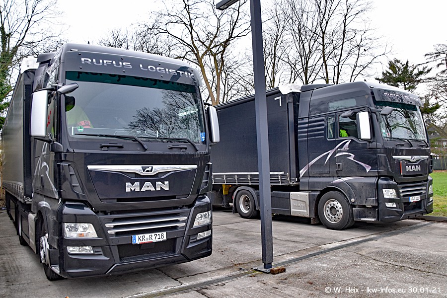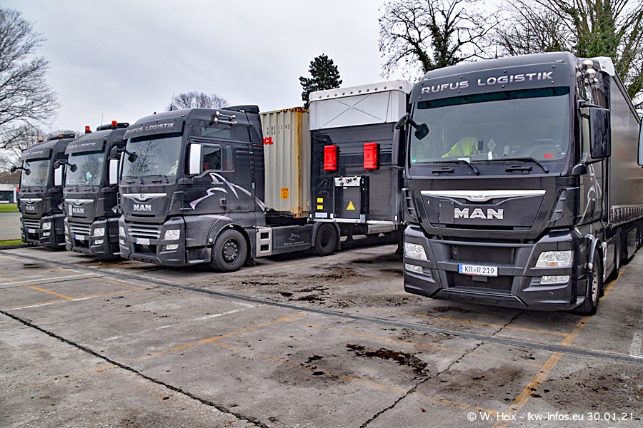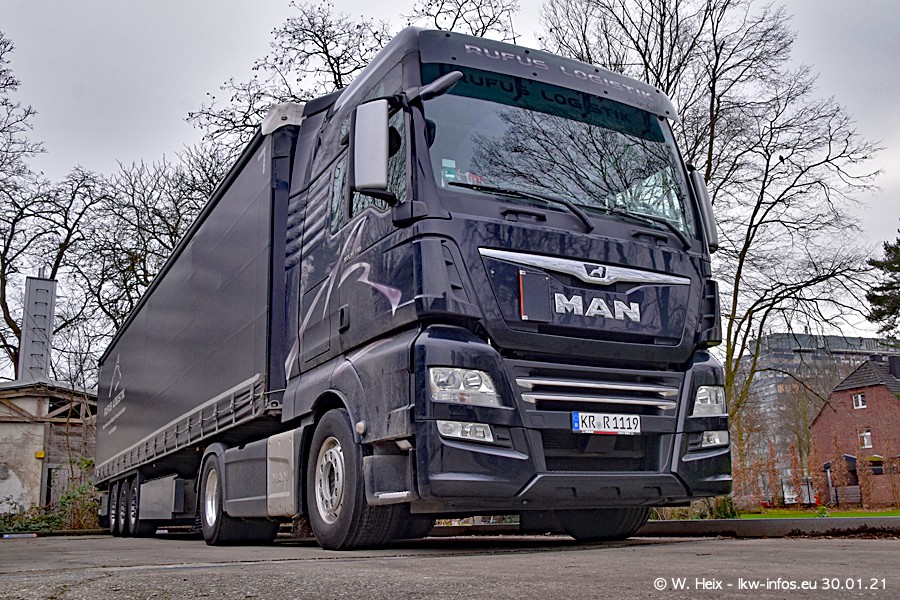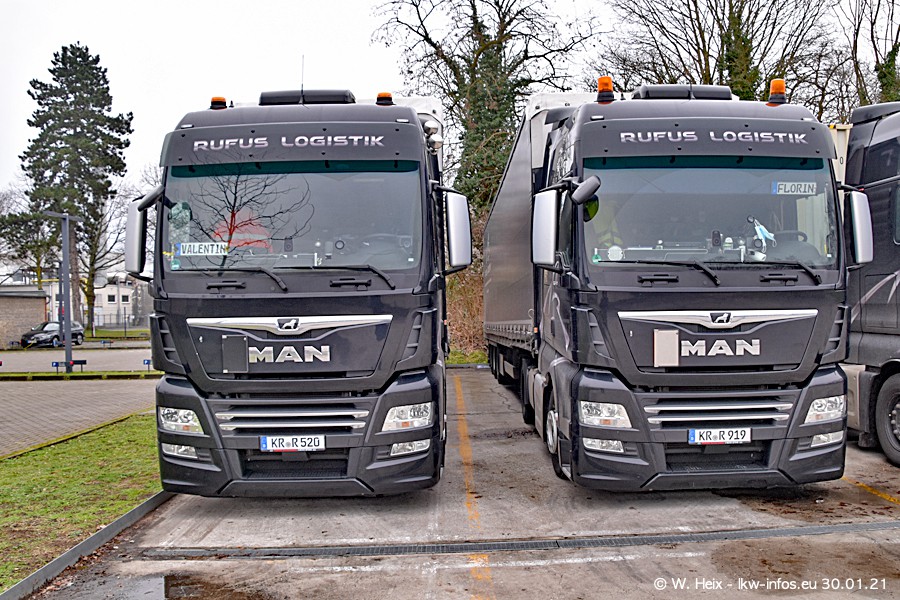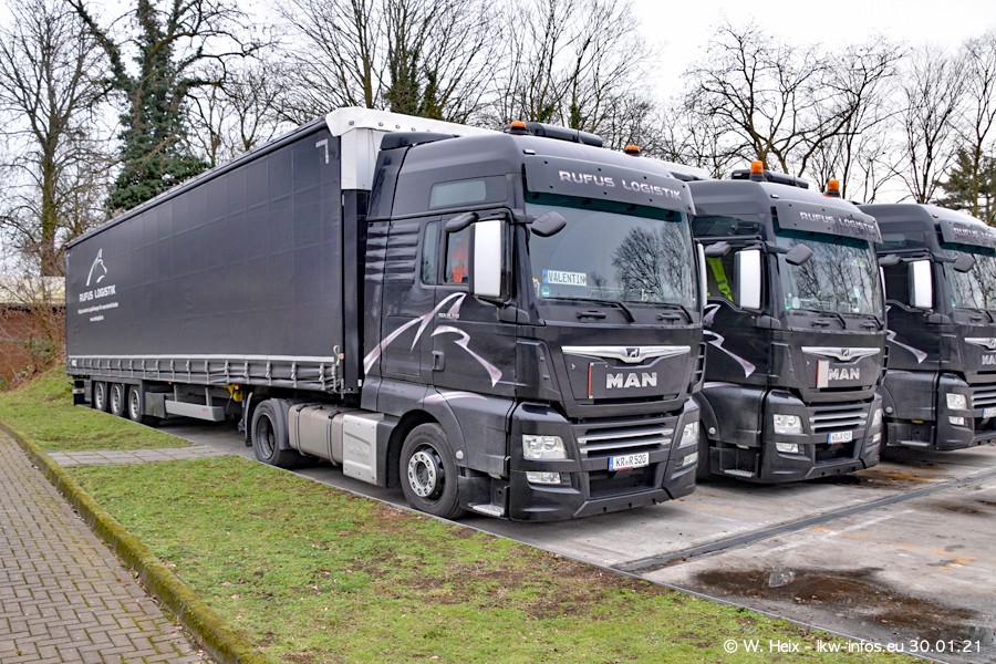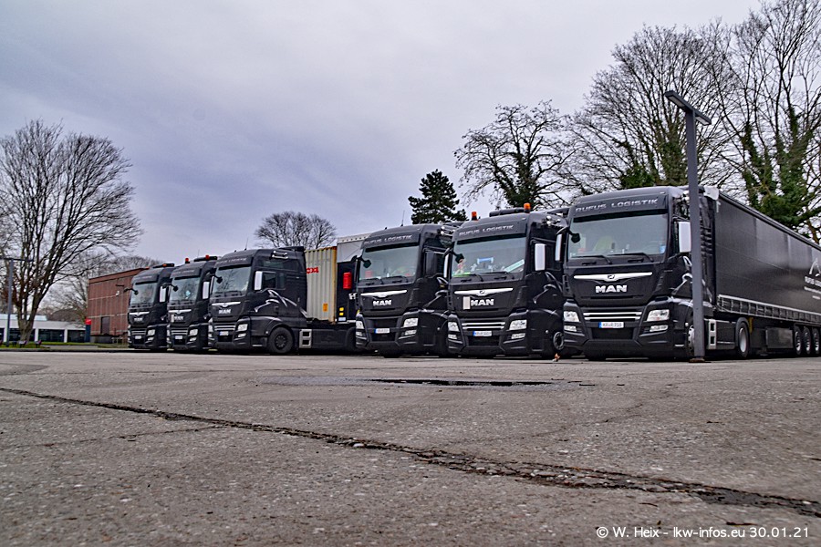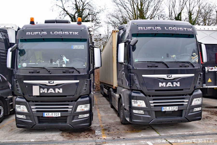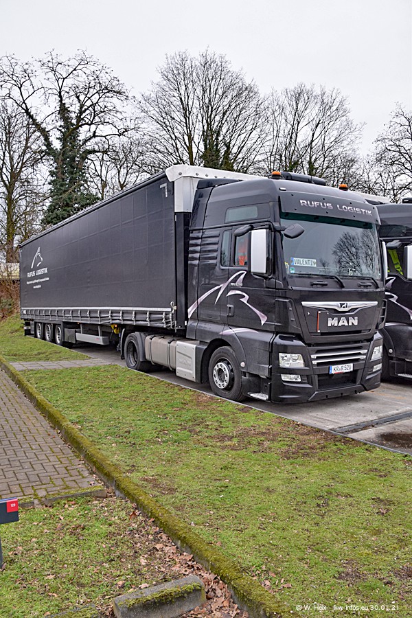 Die Firma Rufus Logistik aus Krefeld hat inzwkschen 10 LKW, fast alles MAN TGX. Drei davon habe ich in den lezten Wochen schon bei den Fahrern zuhause fotografiert. Die heutigen Bilder zeigen den Fuhrpark zuhause in Krefeld mit den "restlichen" sieben Fahrzeugen.