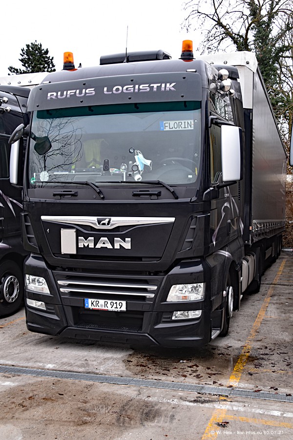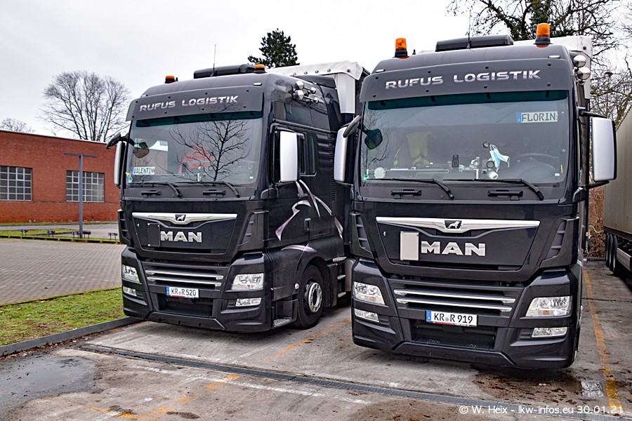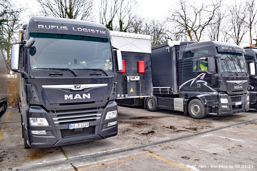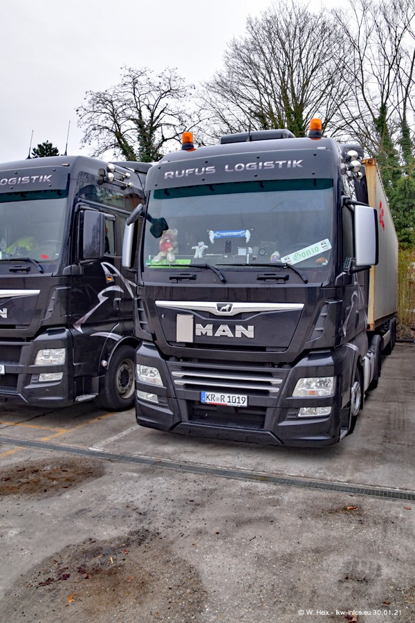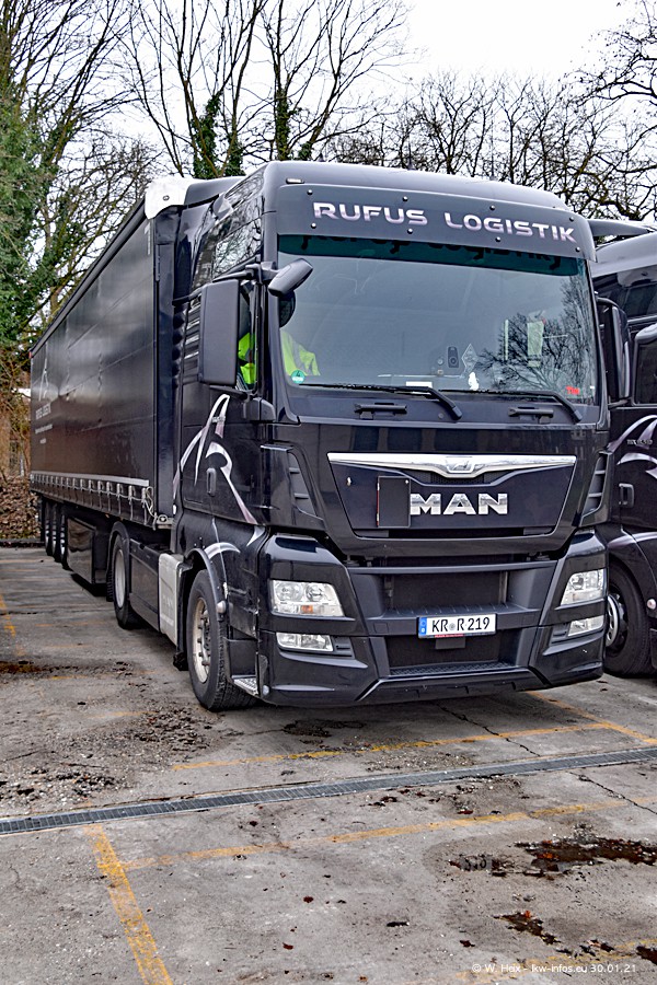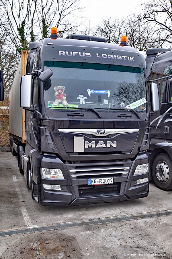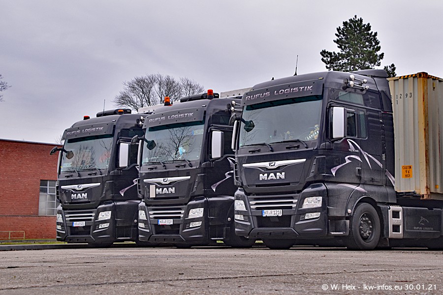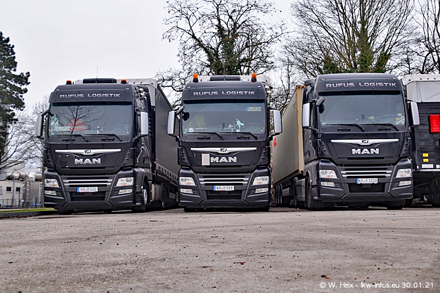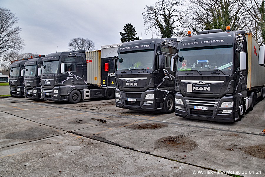 Die Firma Rufus Logistik aus Krefeld hat inzwkschen 10 LKW, fast alles MAN TGX. Drei davon habe ich in den lezten Wochen schon bei den Fahrern zuhause fotografiert. Die heutigen Bilder zeigen den Fuhrpark zuhause in Krefeld mit den "restlichen" sieben Fahrzeugen.