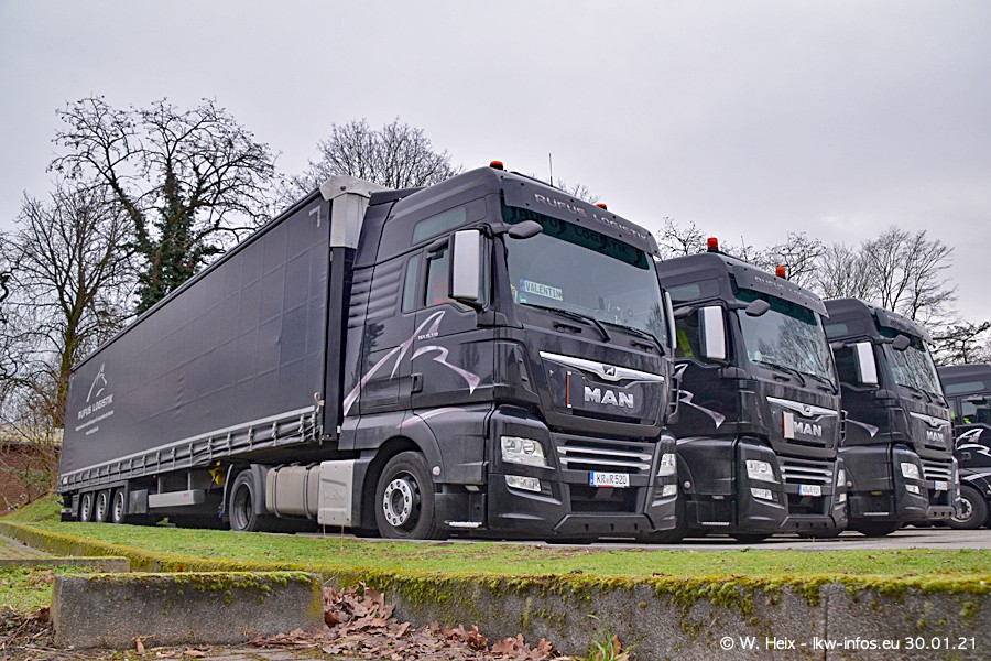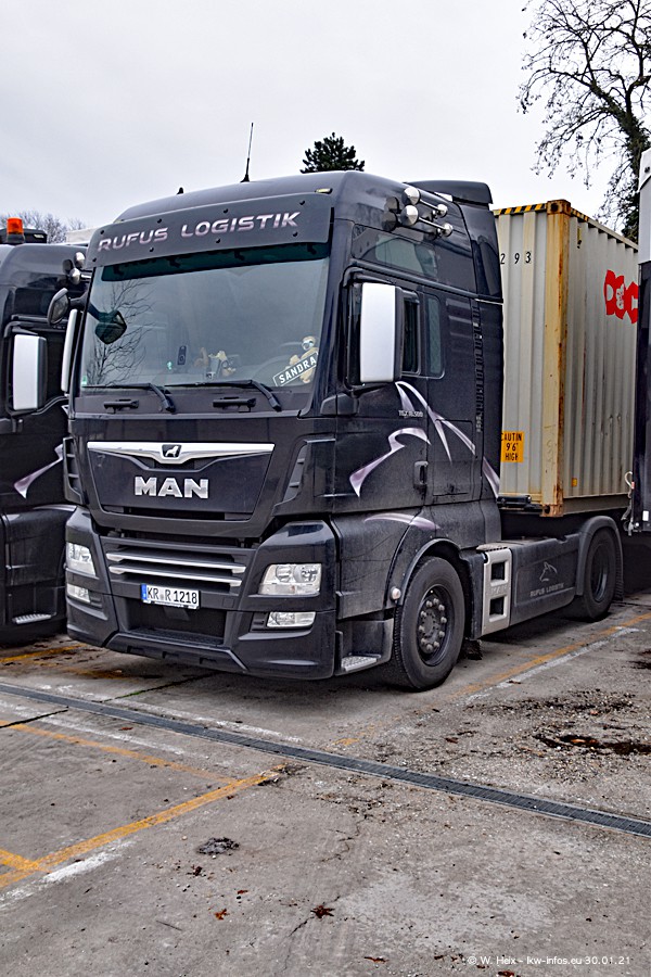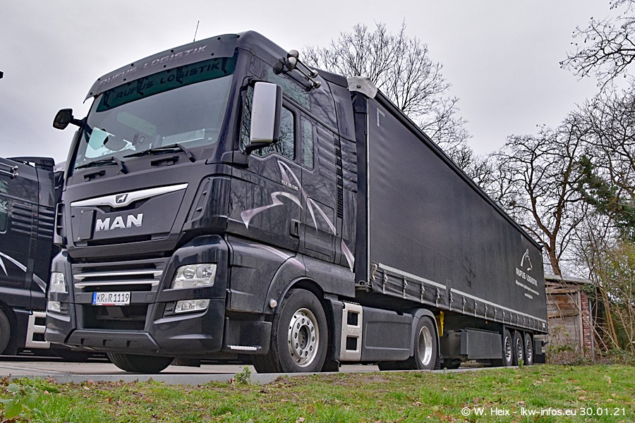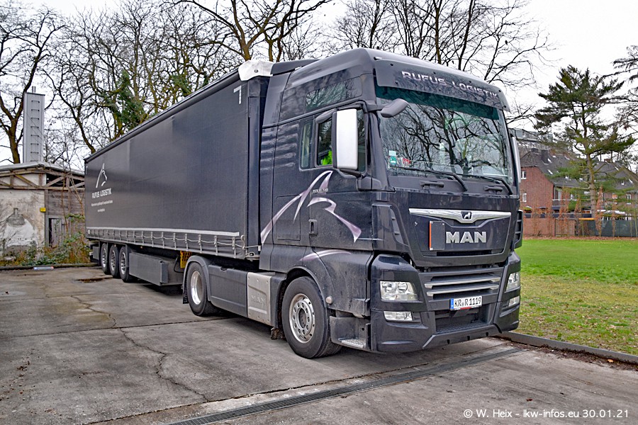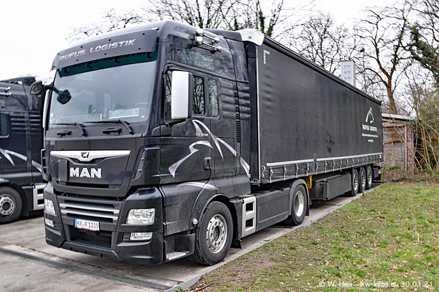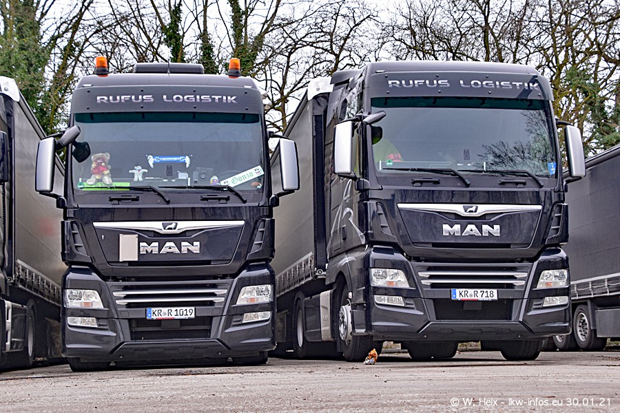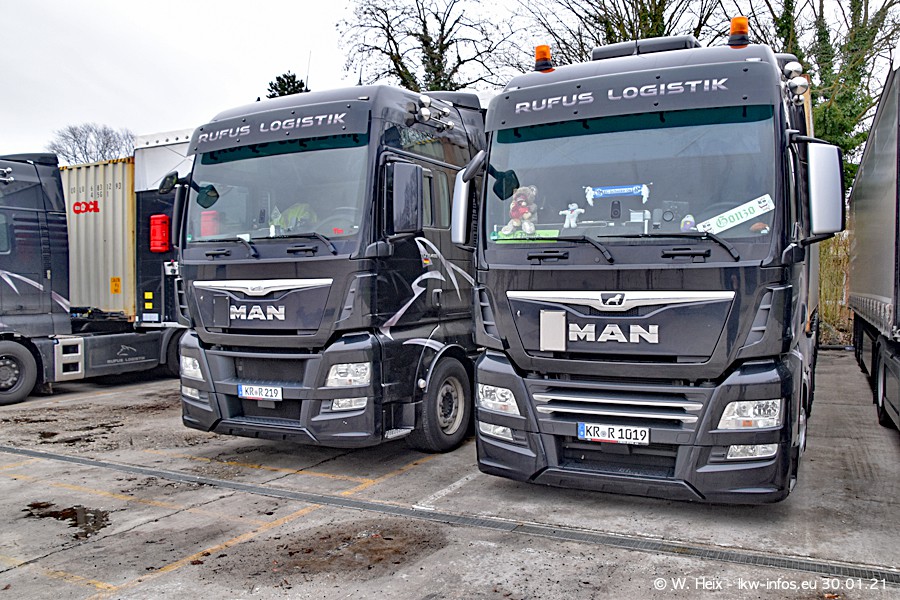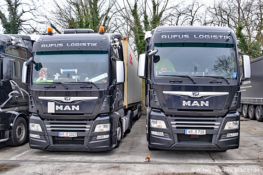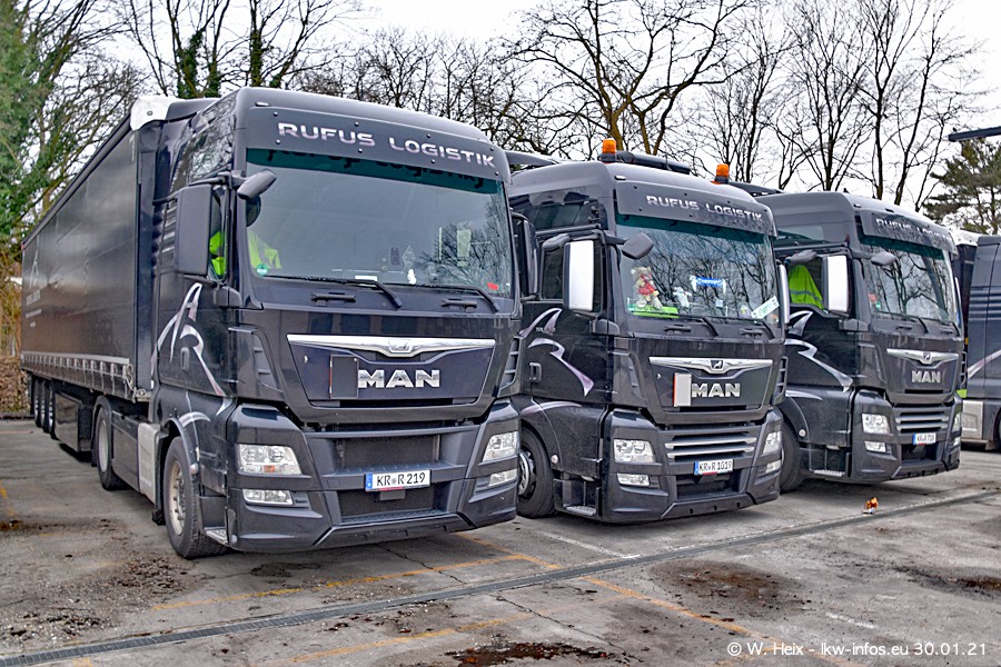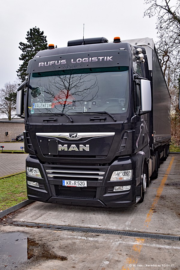 Die Firma Rufus Logistik aus Krefeld hat inzwkschen 10 LKW, fast alles MAN TGX. Drei davon habe ich in den lezten Wochen schon bei den Fahrern zuhause fotografiert. Die heutigen Bilder zeigen den Fuhrpark zuhause in Krefeld mit den "restlichen" sieben Fahrzeugen.