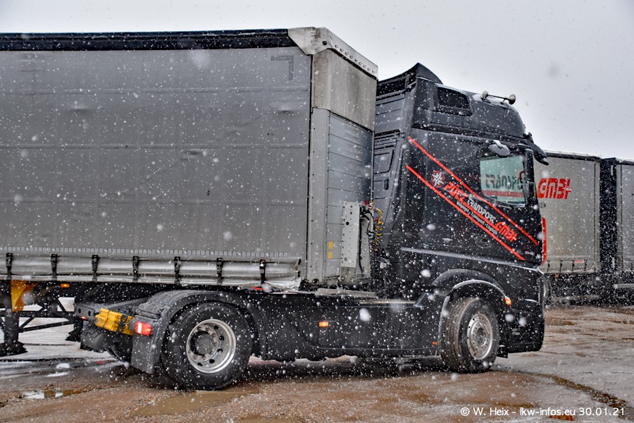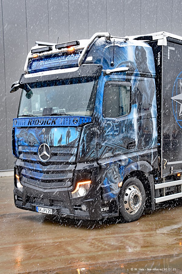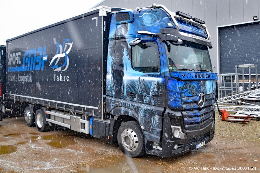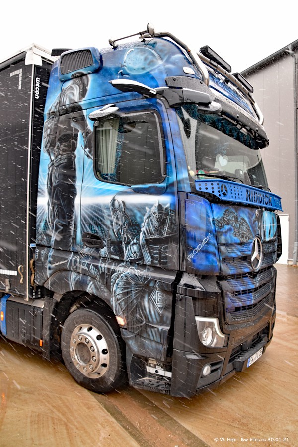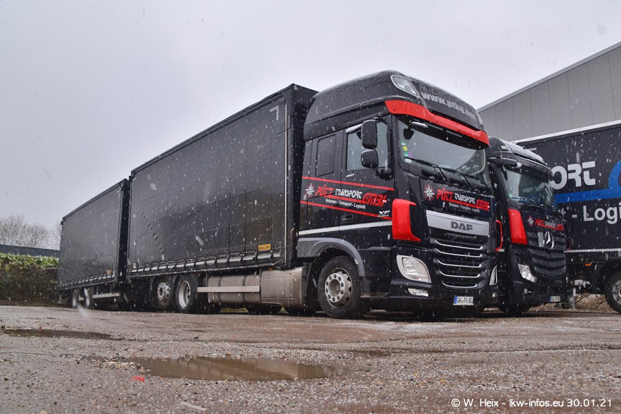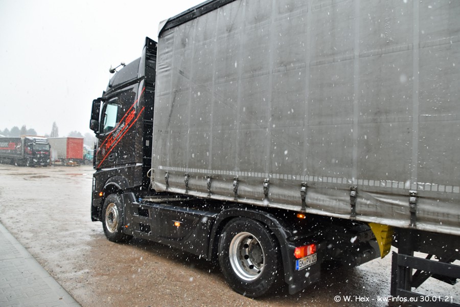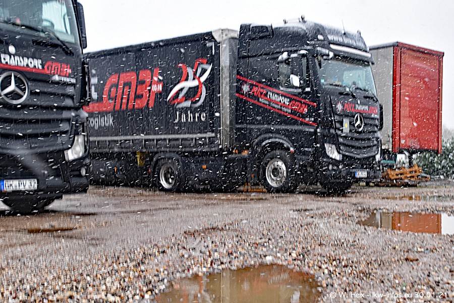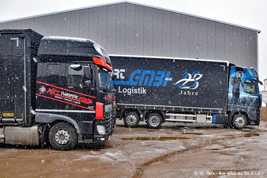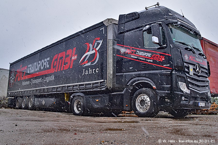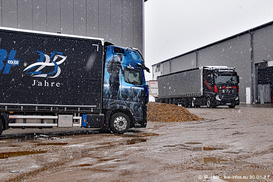 Dies ist mein erster Besuch bei der Firma Pütz in Übach-Palenberg (bei Aachen). Durch eine Reportage in der Zeitschrift "Fernfahrer" in der aktuellen Ausgabe 02/2021 wurde ich in dieser Woche auf die Firma aufmerksam. Denn zum 25-jährigen Firmenjubiläum hat man sich einen richtigen Showtruck/Supertruck gegönnt. Der neue Mercedes-Benz New Actros 4 bzw. Actros 5 (jeder nennt die Baureihe anders) wurde am Faherhaus aufwändig mit Airbrush-Motiven gestaltet. Insgesamt besteht der Fuhrpark aktuell aus 17 LKW. Bis auf einen DAF XF Euro 6 sind alle LKW von Mercedes-Benz. Leider hat mich das Wetter unangenehm überrascht mit einem Wintereinbruch mit Schneefall bei 0°C. Trotzdem habe ich die hier gezeigten Bilder gemacht und in den nächsten Monaten werde ich dann nochmal neue Bilder bei Sonnenschein machen .....