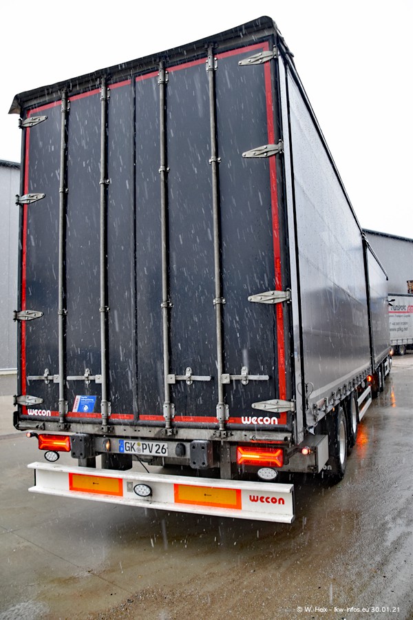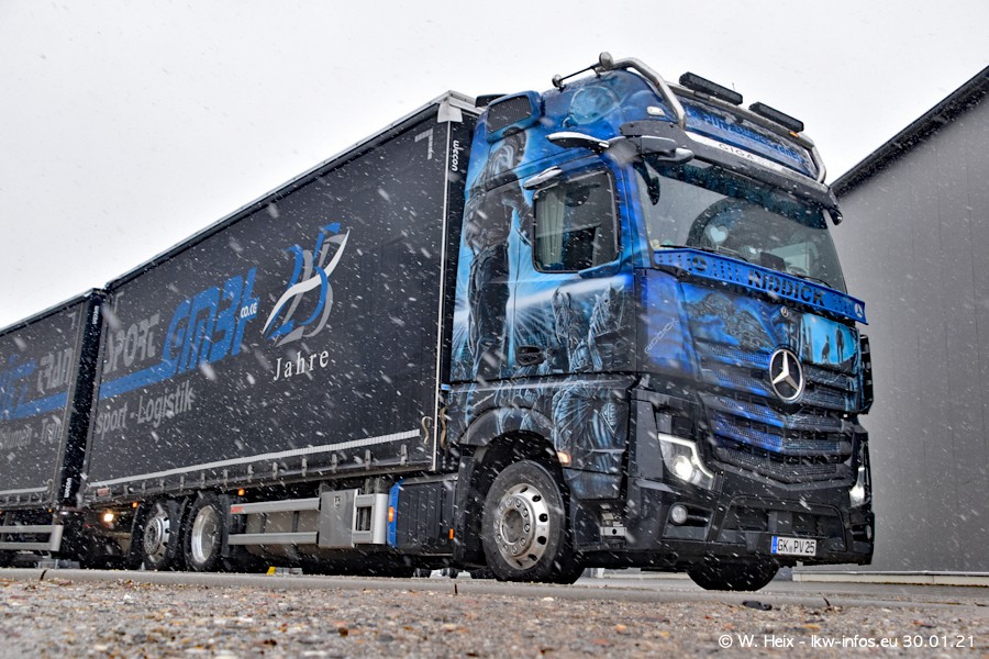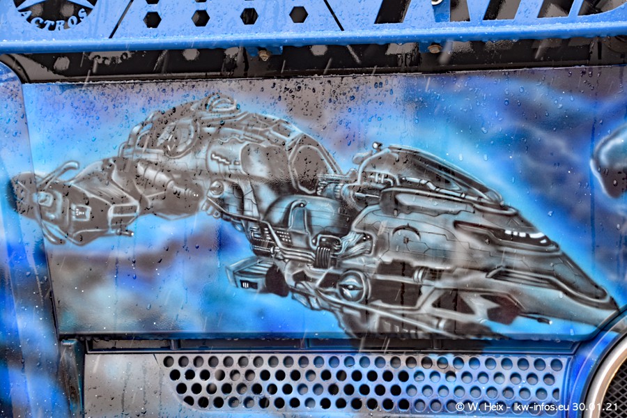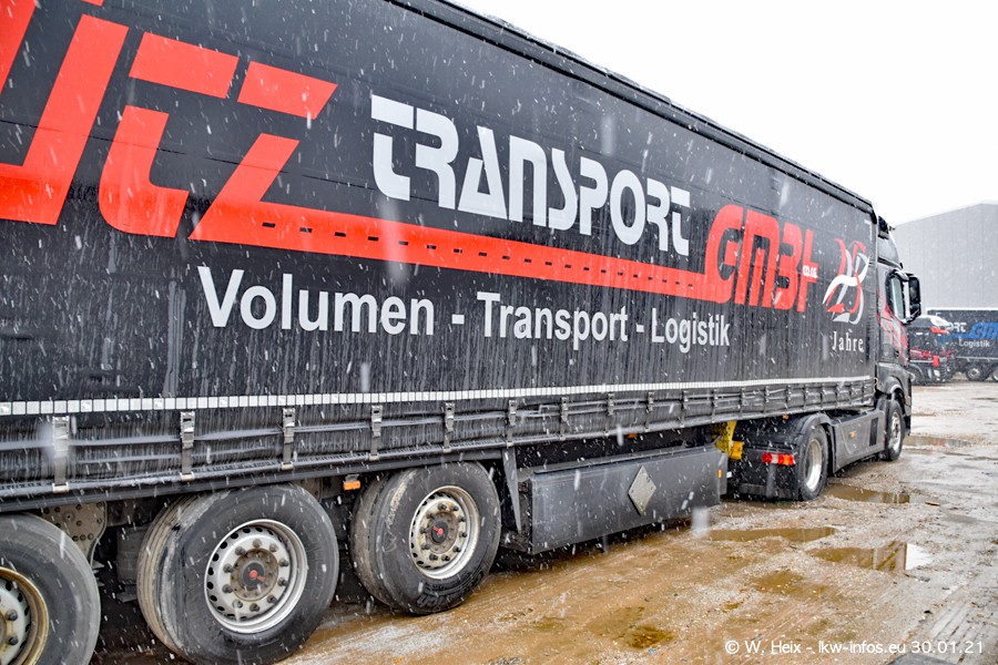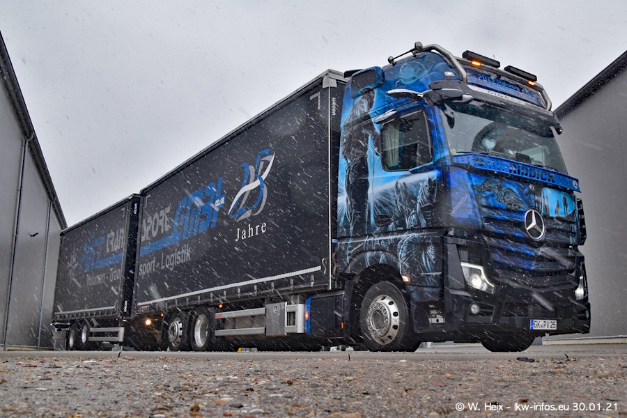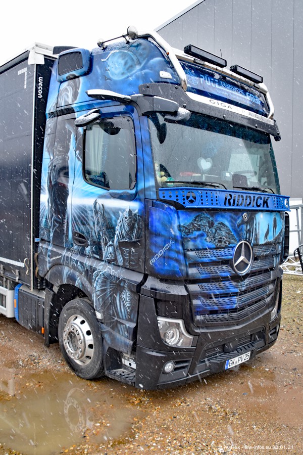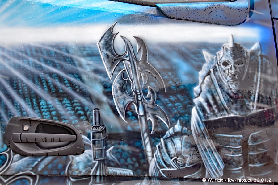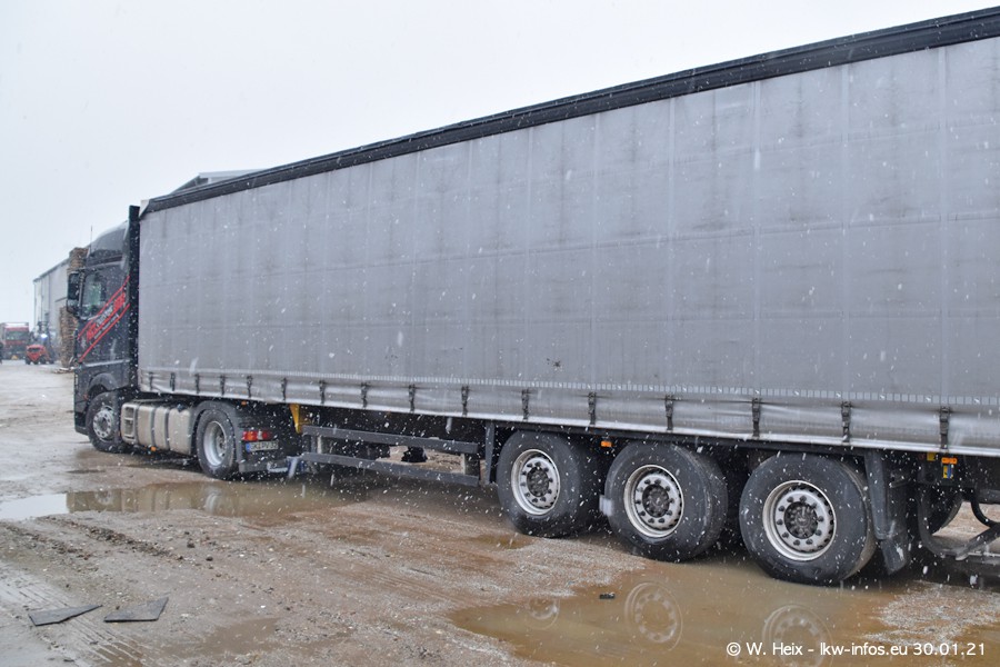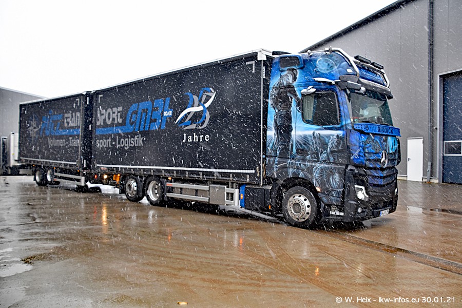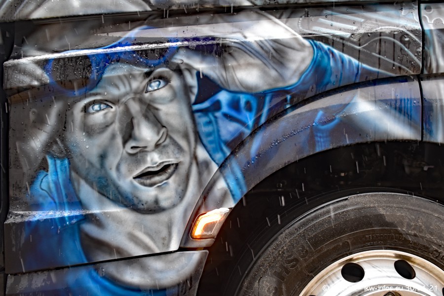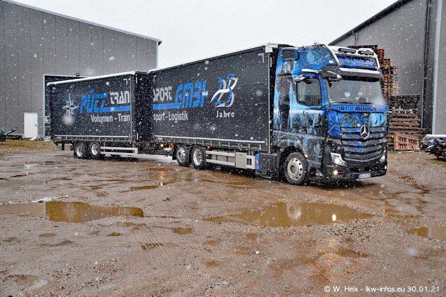 Dies ist mein erster Besuch bei der Firma Pütz in Übach-Palenberg (bei Aachen). Durch eine Reportage in der Zeitschrift "Fernfahrer" in der aktuellen Ausgabe 02/2021 wurde ich in dieser Woche auf die Firma aufmerksam. Denn zum 25-jährigen Firmenjubiläum hat man sich einen richtigen Showtruck/Supertruck gegönnt. Der neue Mercedes-Benz New Actros 4 bzw. Actros 5 (jeder nennt die Baureihe anders) wurde am Faherhaus aufwändig mit Airbrush-Motiven gestaltet. Insgesamt besteht der Fuhrpark aktuell aus 17 LKW. Bis auf einen DAF XF Euro 6 sind alle LKW von Mercedes-Benz. Leider hat mich das Wetter unangenehm überrascht mit einem Wintereinbruch mit Schneefall bei 0°C. Trotzdem habe ich die hier gezeigten Bilder gemacht und in den nächsten Monaten werde ich dann nochmal neue Bilder bei Sonnenschein machen .....