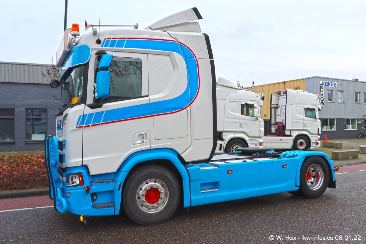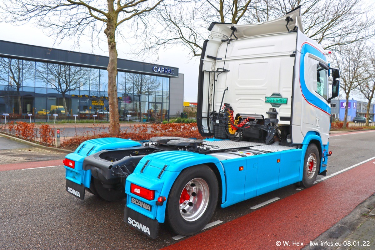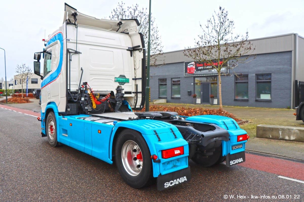 Der vierte Besuch bei Tom Holding widmet sich wieder vor allem dem Thema SCANIA V8. Diesmal gibt es keine Oldtmer, dafür aber wieder einige Klassiker und vor allem auch aktuelle SCANIA V8 aud der Baureihen R und S. Der SCANIA R 650 V8 NextGen von van der Bel gehört natürlich nicht Tom Holding. Aber van der Bel hat an diesem Samstag einen gekauften SCANIA 143 V8 Streamline abgeholt. Der weiß-blaue SCANIA R 520 V8 NextGen am Ende der Galerie wurde gleichzeitig von einem Kunden "angeliefert", also verkauft. Auch hier konnte ich einige schöne Fotos machen. Gefilmt habe ich natürlich auch wieder, in der Halle, draußen und wieder als Beifahrer in einigen SCANIA V8 ....