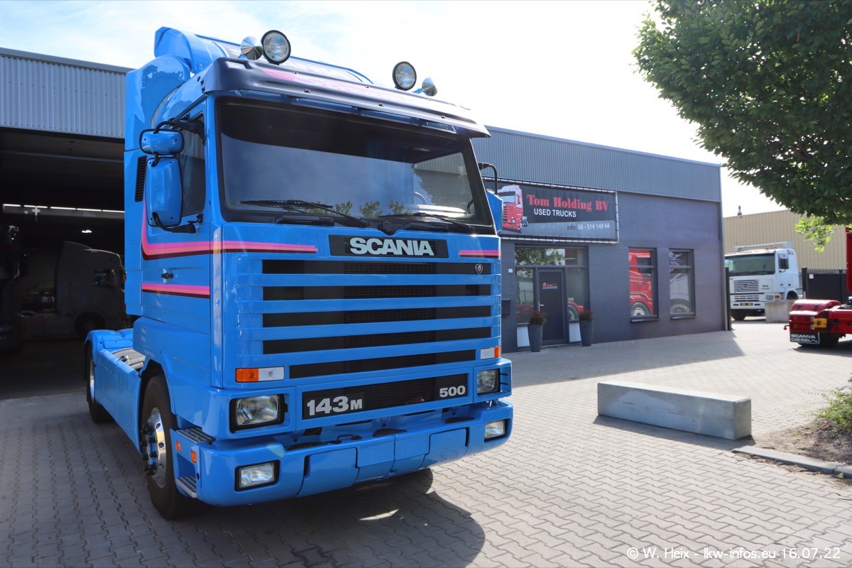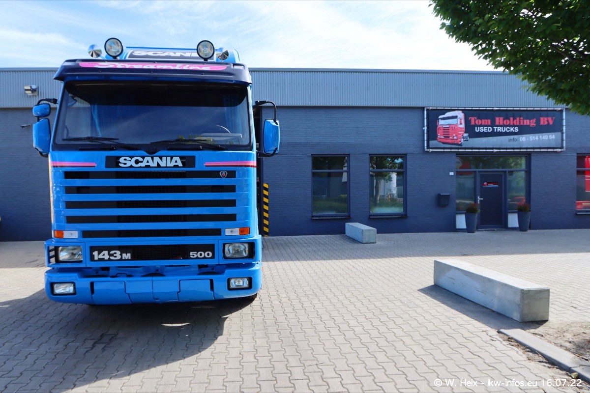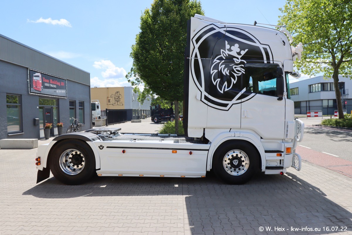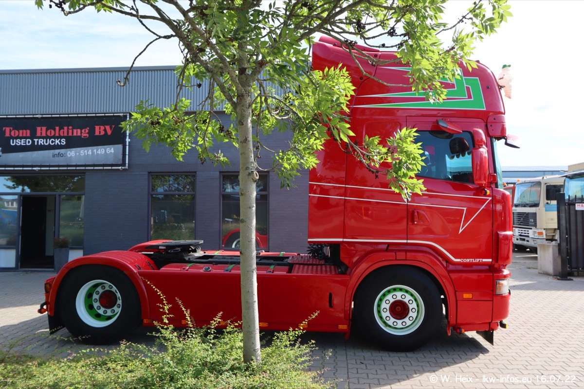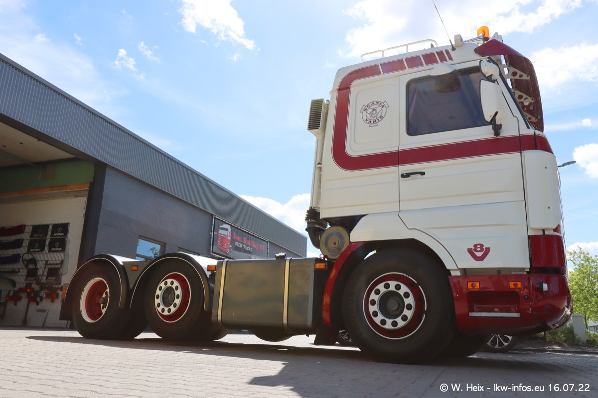Ich war erst vor fünf Wochen bei Tom Holding, aber heute passte es nochmal vor dem Sommerurlaub. Schwerpunkt dieses kleinen Fotoshootings waren wieder SCANIA V8 Trucks. Aktuell sind drei SCANIA 164 und zwei SCANIA 143 interesssant (für mich). Heute kam auch ein nur ein Jahr alter SCANIA 770 S V8 "rein". Ich habe von diesem Fahrzeug auch direkt ein paar schöne Fotos gemacht. Alle SCANIA NextGen, die ein aktuelles Kennzeichen haben, sind verkauft und werden in Kürze von den neuen Besitzern abgeholt. Es sind auch eine ganze Reihe VOLVO F12 da, die auf einen neuen Besitzer warten. Auch diese habe ich fotografiert.