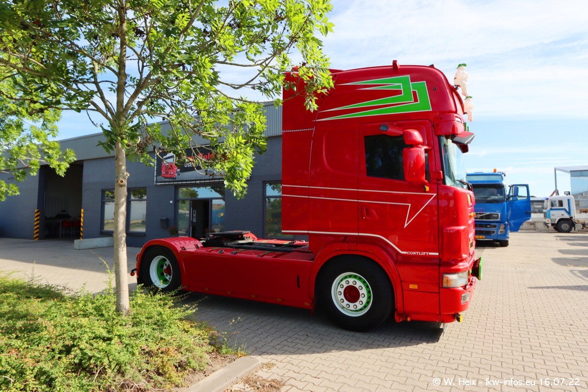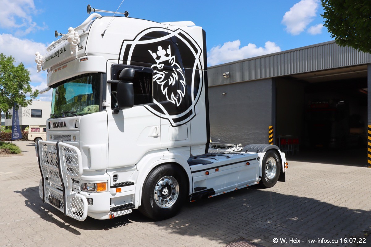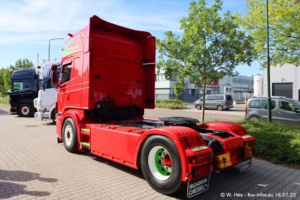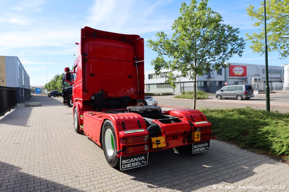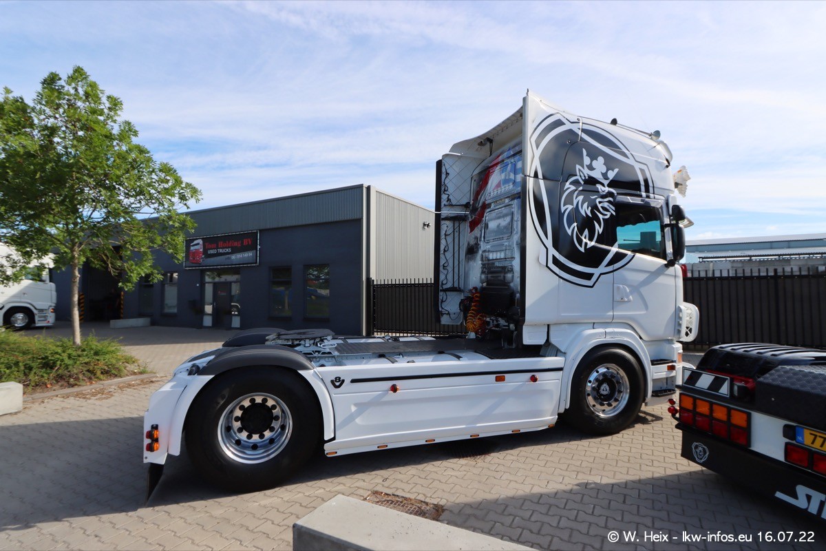 Ich war erst vor fünf Wochen bei Tom Holding, aber heute passte es nochmal vor dem Sommerurlaub. Schwerpunkt dieses kleinen Fotoshootings waren wieder SCANIA V8 Trucks. Aktuell sind drei SCANIA 164 und zwei SCANIA 143 interesssant (für mich). Heute kam auch ein nur ein Jahr alter SCANIA 770 S V8 "rein". Ich habe von diesem Fahrzeug auch direkt ein paar schöne Fotos gemacht. Alle SCANIA NextGen, die ein aktuelles Kennzeichen haben, sind verkauft und werden in Kürze von den neuen Besitzern abgeholt. Es sind auch eine ganze Reihe VOLVO F12 da, die auf einen neuen Besitzer warten. Auch diese habe ich fotografiert.
