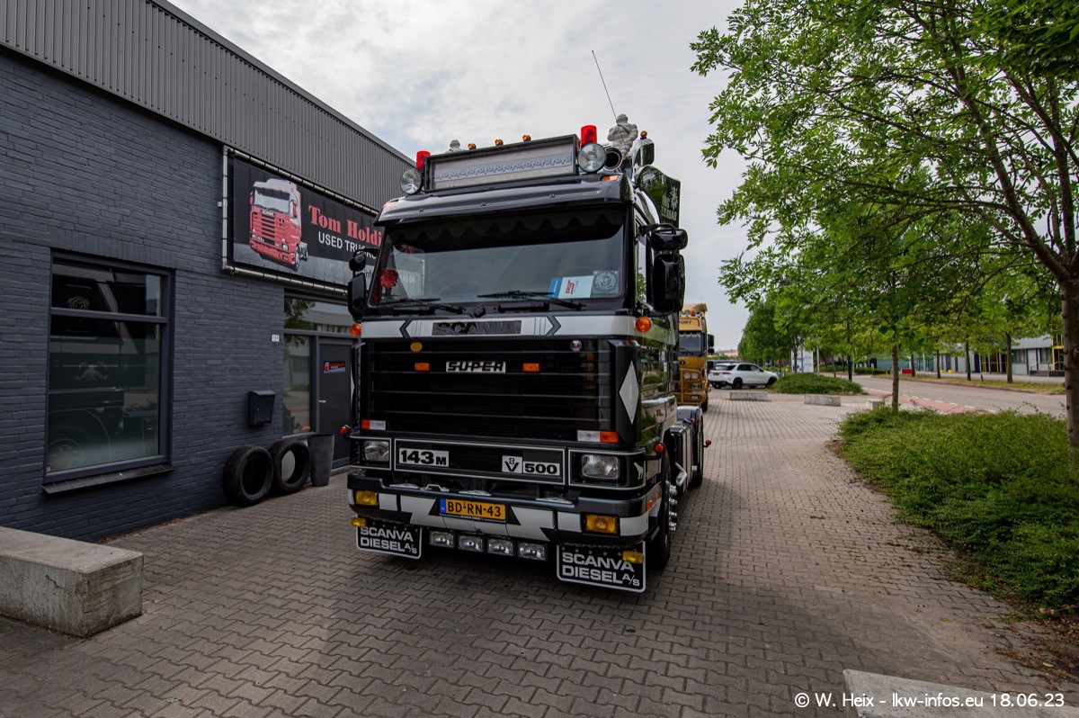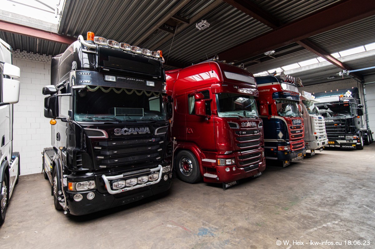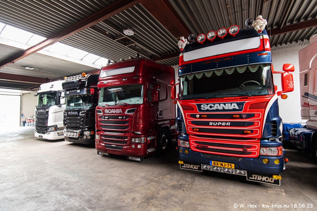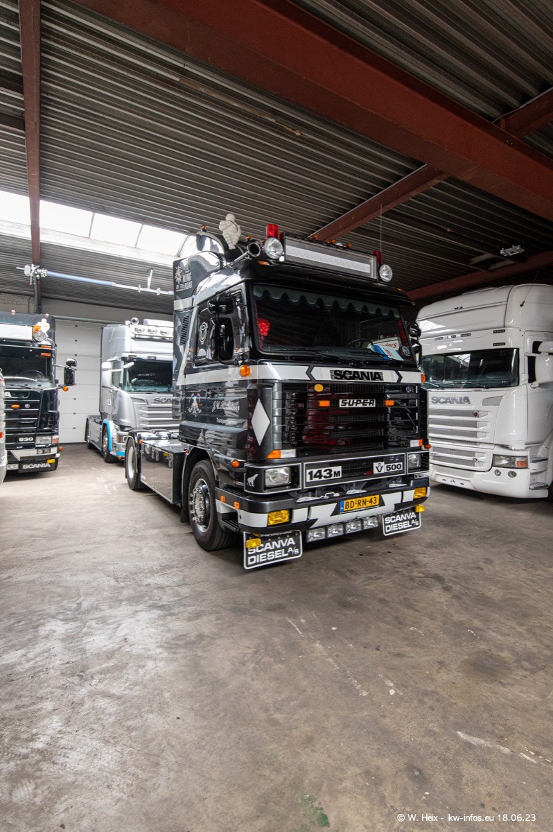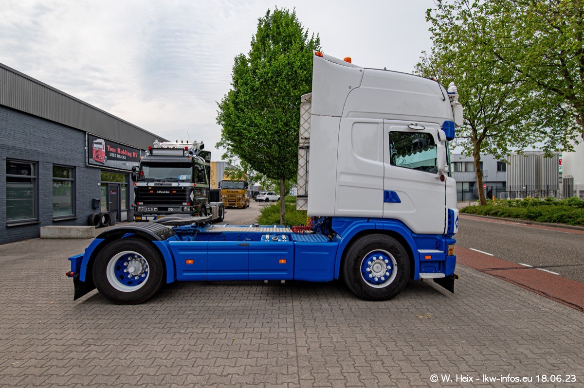 Der letzte Besuch bei Tom Holding B.V. ist zwar erst drei Wochen her, aber es gab schon wieder eninge neue interessante SCANIA V8 und VOLVO. Diesmal haben wir uns sonntags getroffen. Das hat den Vorteil, dass keine Besucher und Kunden kommen und dass auf den Straßen wenig Verkehr ist, was das Filmen "erleichtert".
