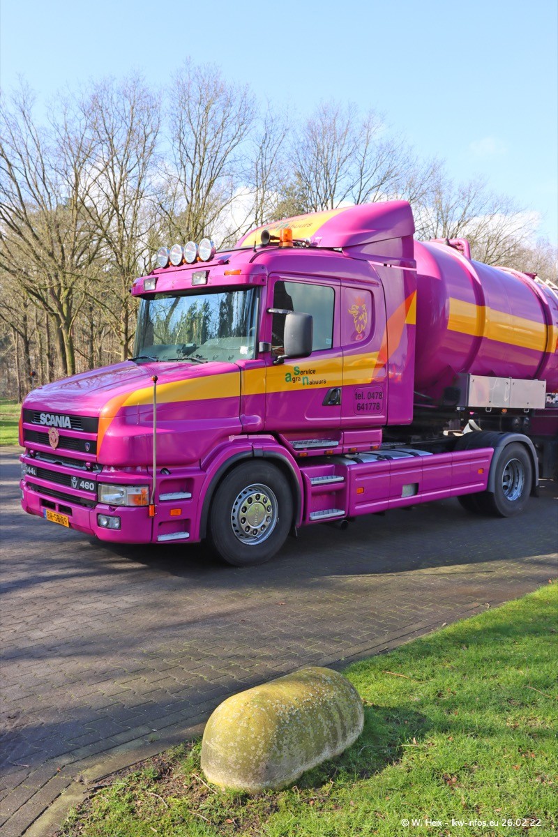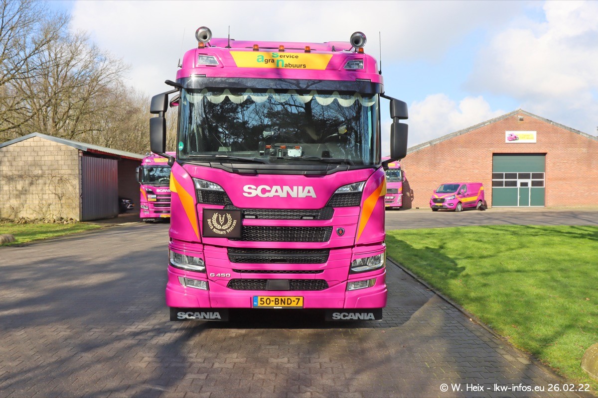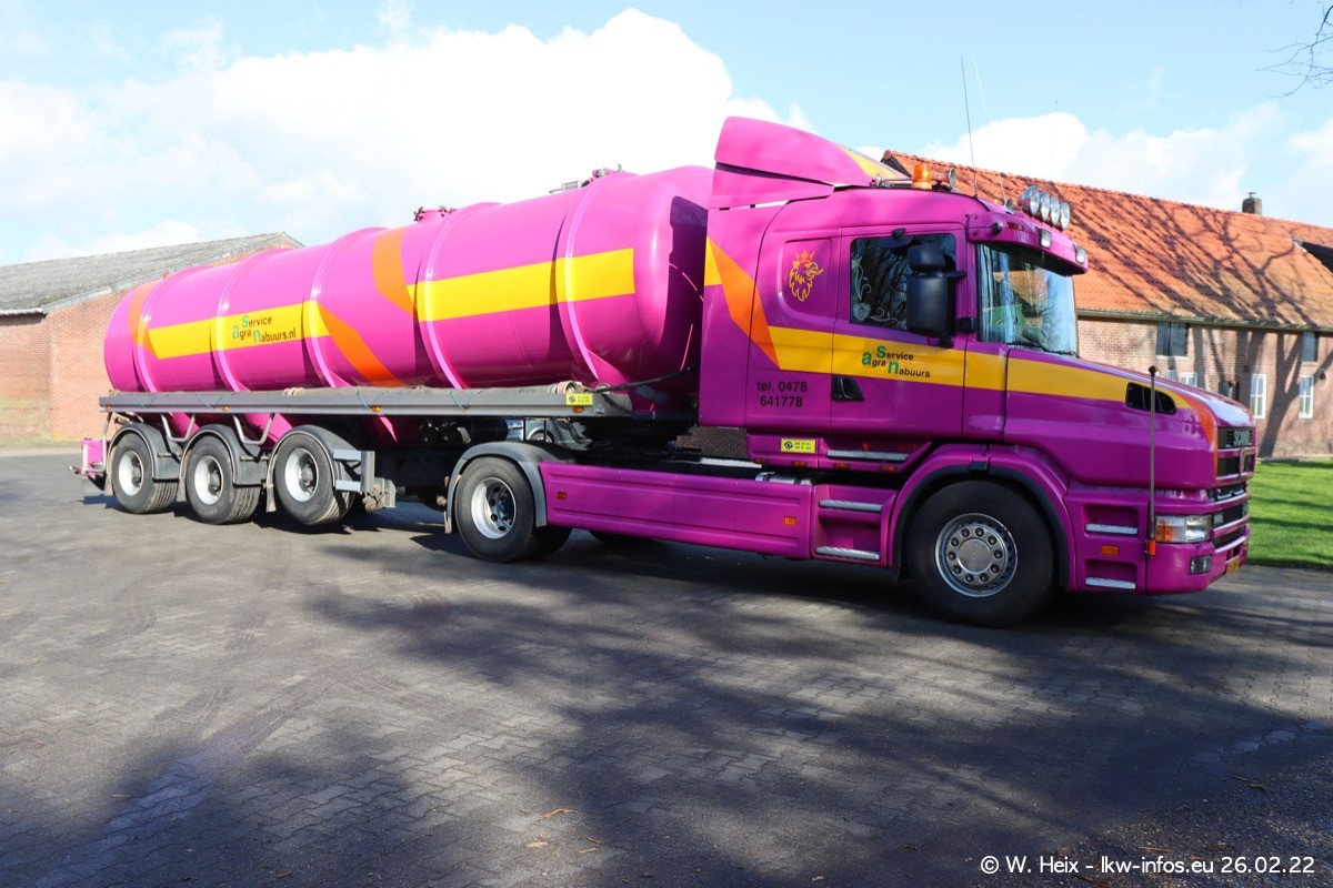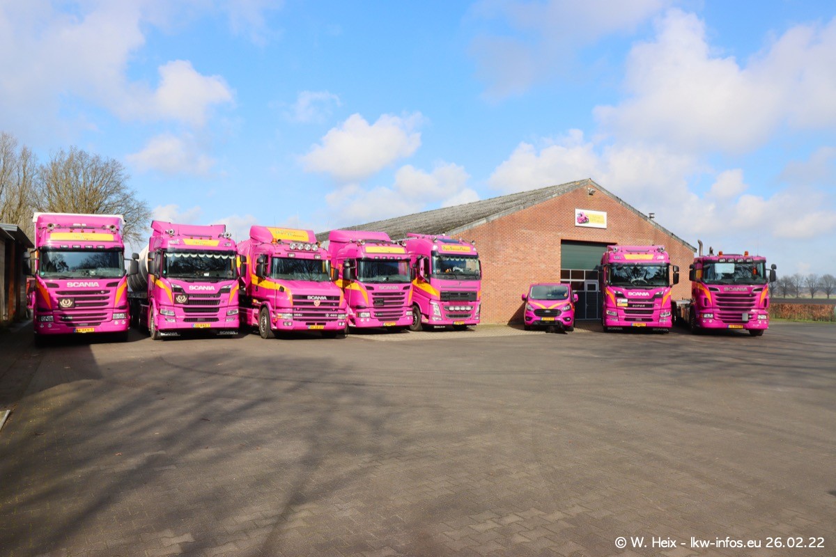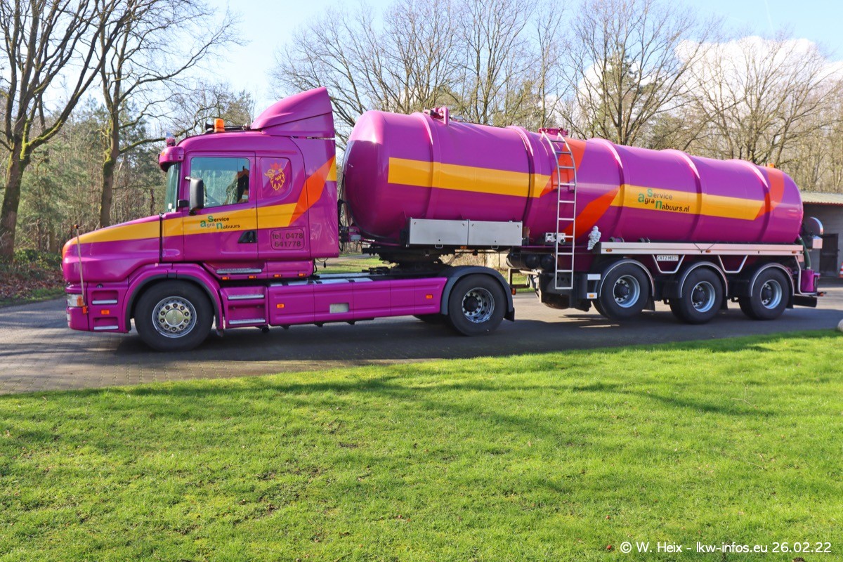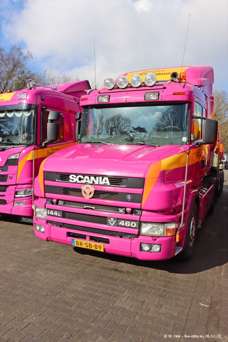 Mein erster Besuch bei der Firma Agra Service Nabuurs in Overloon (in der Nähe von Boxmeer gelegen) begann direkt mit einem schönen Fotoshooting, mit dem ich so nicht gerechnet bzw,. das ich so nicht geplant hatte. Aber gerade so macht das Hobby Spaß! Alle sieben LKW standen frisch gewaschen nebeneinander auf dem Hof. Sechs davon sind im täglichen Einsatz. Der SCANIA T 144 L 460 V8 Hauber wird nur noch als Ersatz und für Hobbyzwecke verwendet und ist inzwischen schon 21 (!) Jahre alt. Das Wetter war fast perfekt, wobei es gegen Ende des Fotoshootings leider wieder grau wurde, der Nebel kam langsam zurück.