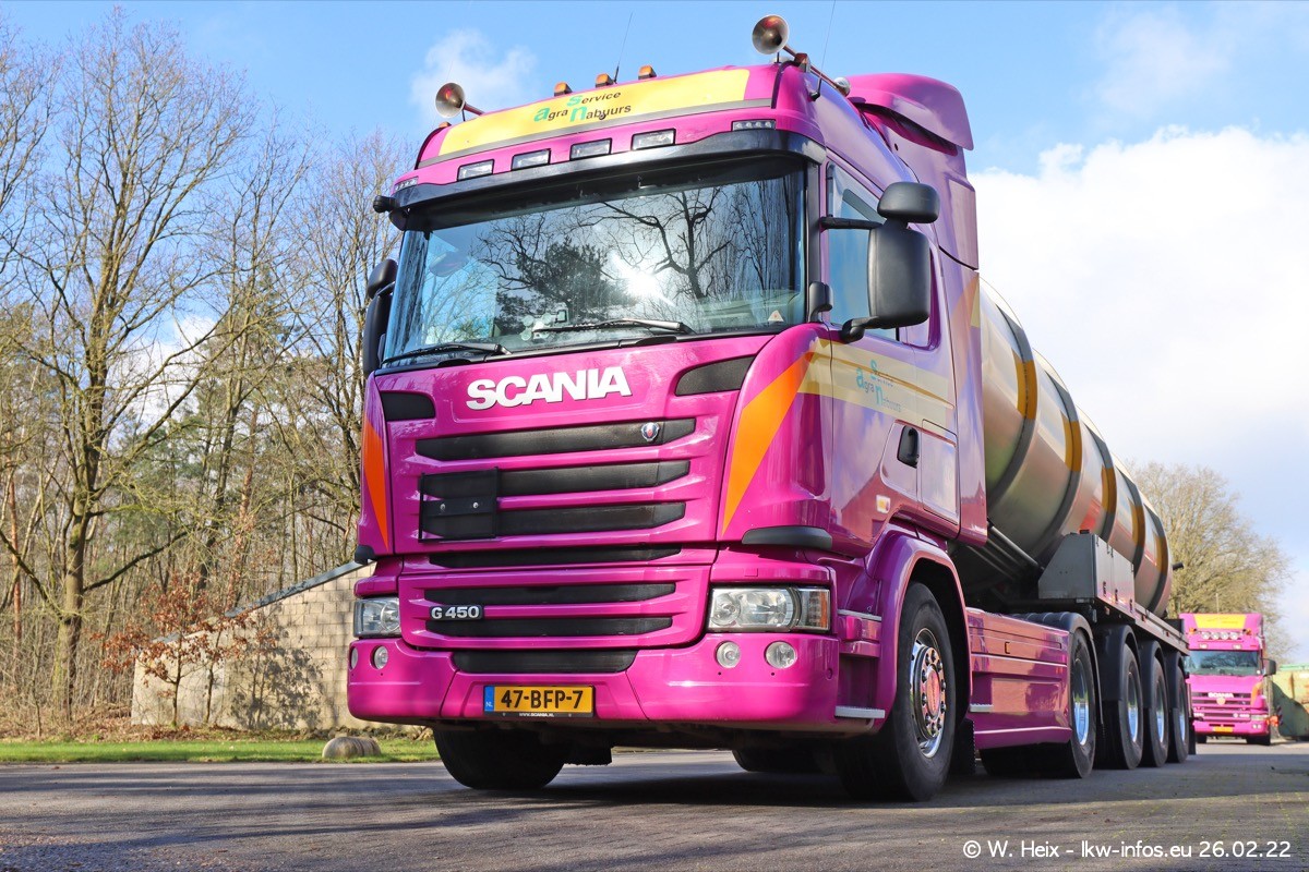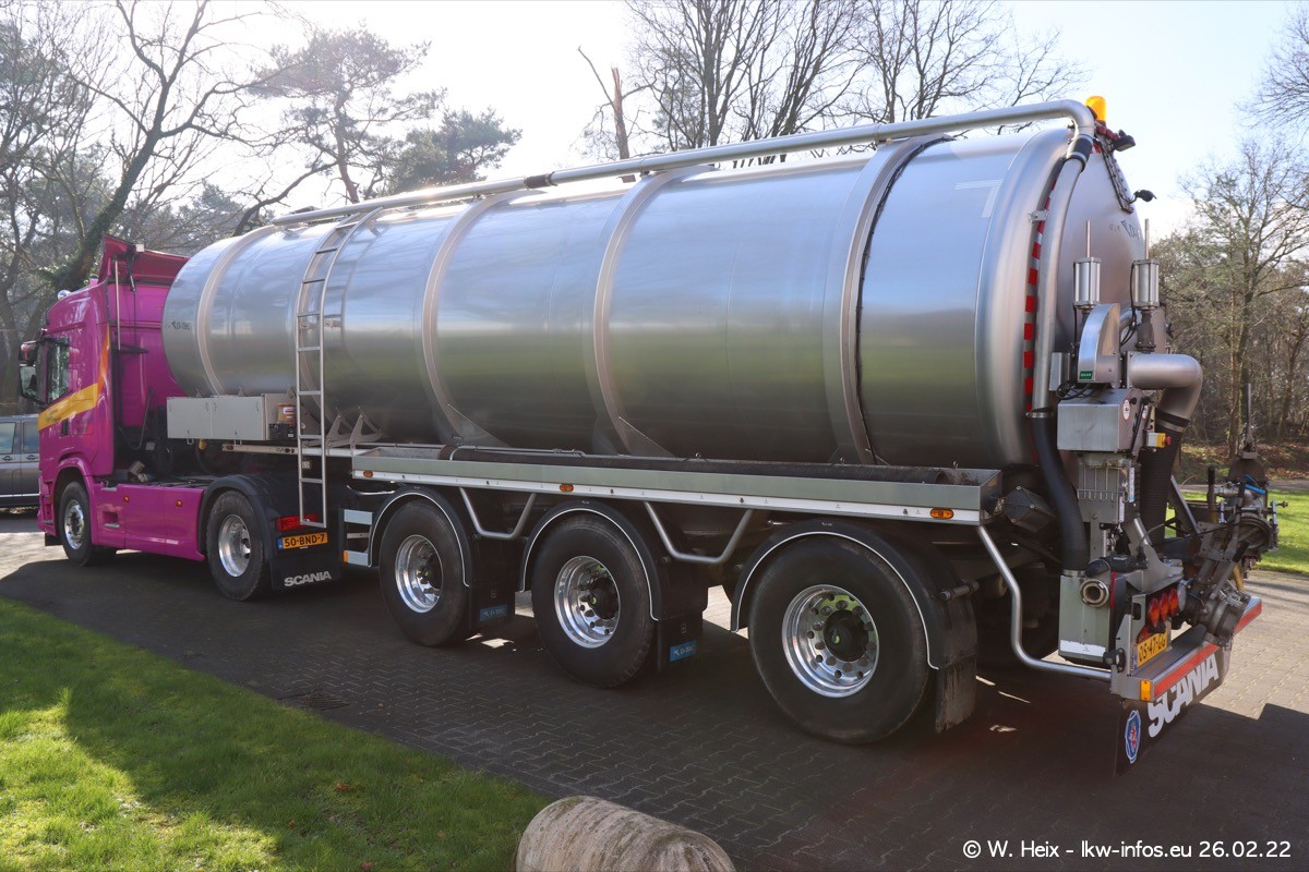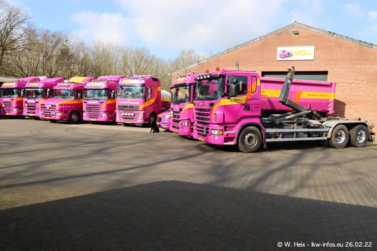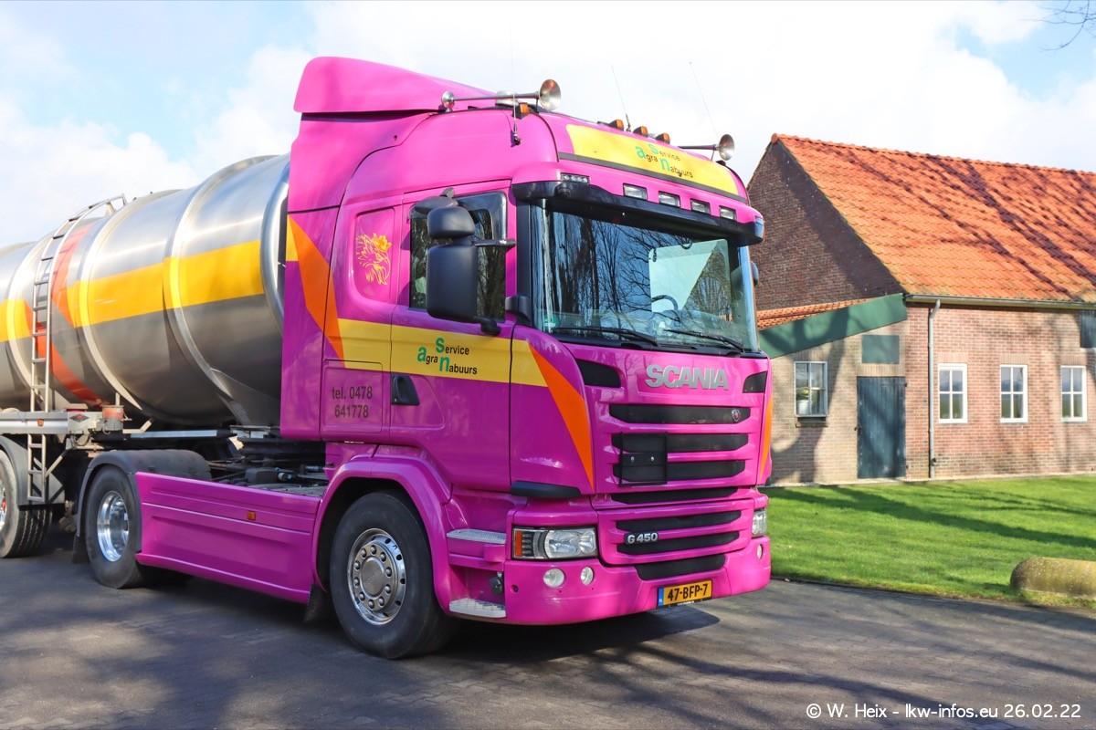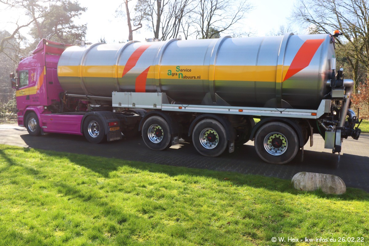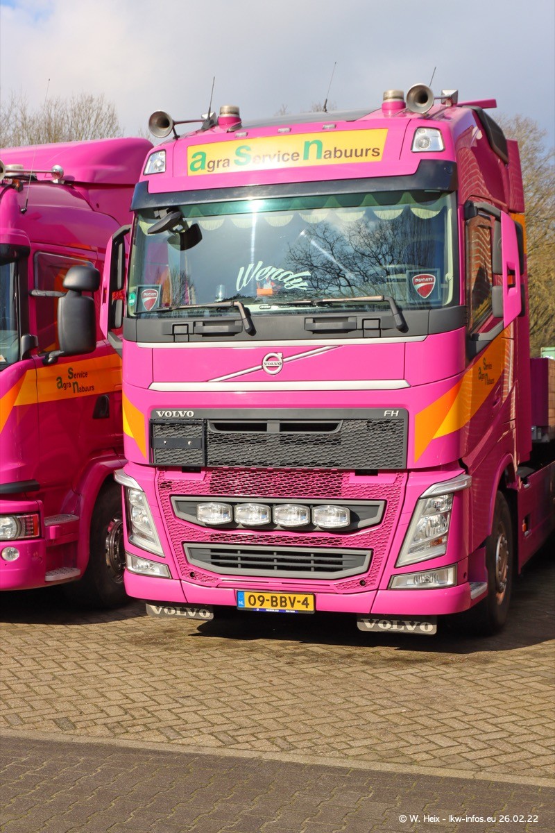 Mein erster Besuch bei der Firma Agra Service Nabuurs in Overloon (in der Nähe von Boxmeer gelegen) begann direkt mit einem schönen Fotoshooting, mit dem ich so nicht gerechnet bzw,. das ich so nicht geplant hatte. Aber gerade so macht das Hobby Spaß! Alle sieben LKW standen frisch gewaschen nebeneinander auf dem Hof. Sechs davon sind im täglichen Einsatz. Der SCANIA T 144 L 460 V8 Hauber wird nur noch als Ersatz und für Hobbyzwecke verwendet und ist inzwischen schon 21 (!) Jahre alt. Das Wetter war fast perfekt, wobei es gegen Ende des Fotoshootings leider wieder grau wurde, der Nebel kam langsam zurück.