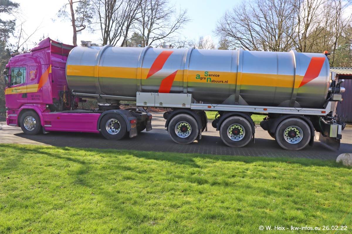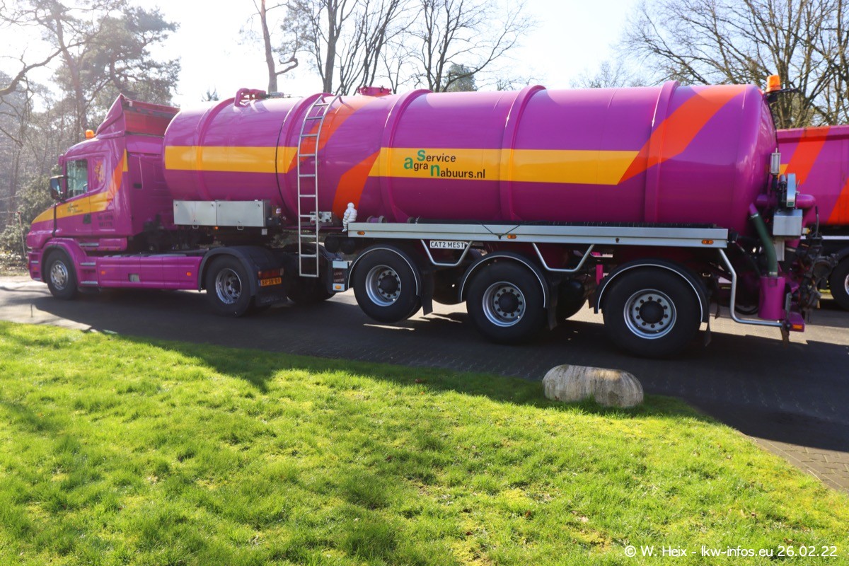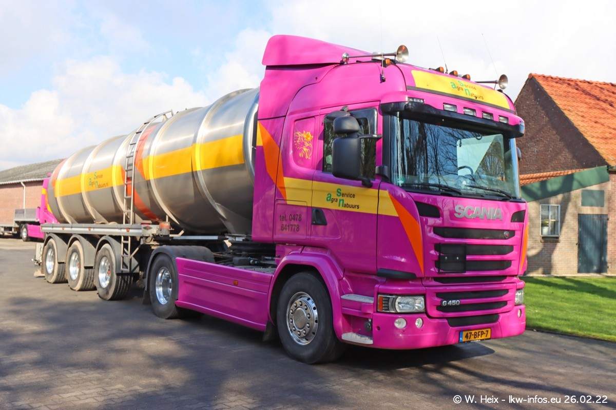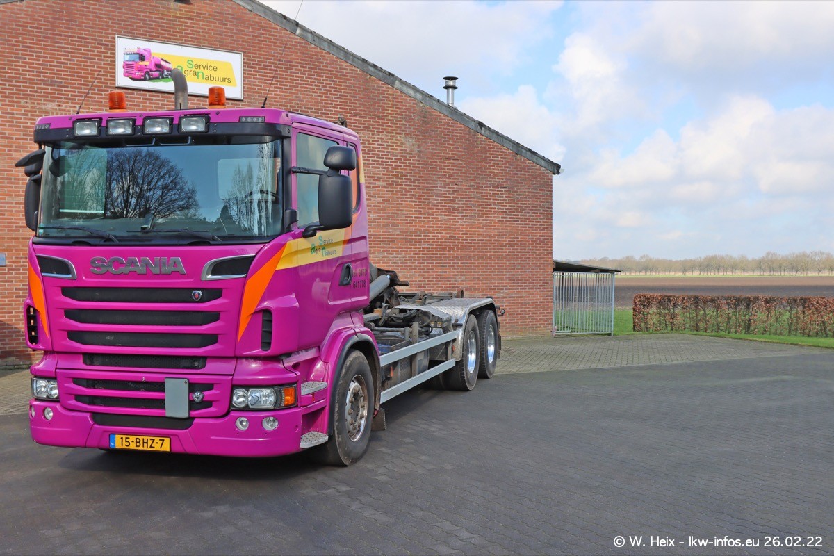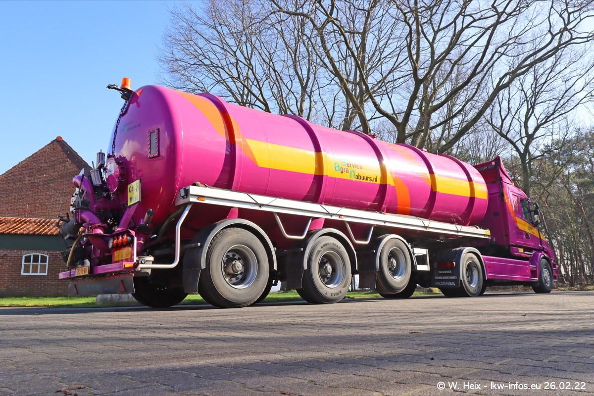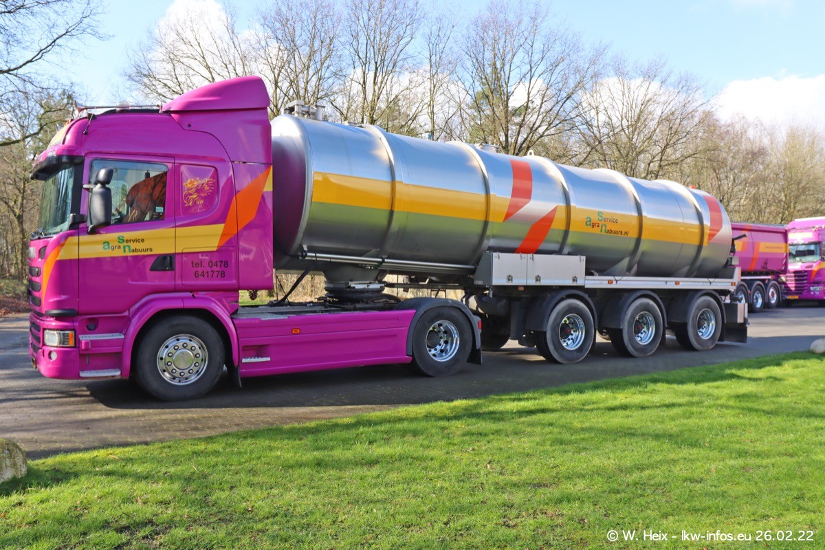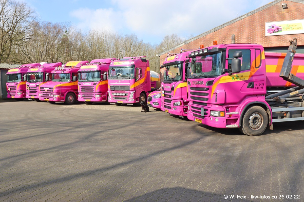Mein erster Besuch bei der Firma Agra Service Nabuurs in Overloon (in der Nähe von Boxmeer gelegen) begann direkt mit einem schönen Fotoshooting, mit dem ich so nicht gerechnet bzw,. das ich so nicht geplant hatte. Aber gerade so macht das Hobby Spaß! Alle sieben LKW standen frisch gewaschen nebeneinander auf dem Hof. Sechs davon sind im täglichen Einsatz. Der SCANIA T 144 L 460 V8 Hauber wird nur noch als Ersatz und für Hobbyzwecke verwendet und ist inzwischen schon 21 (!) Jahre alt. Das Wetter war fast perfekt, wobei es gegen Ende des Fotoshootings leider wieder grau wurde, der Nebel kam langsam zurück.