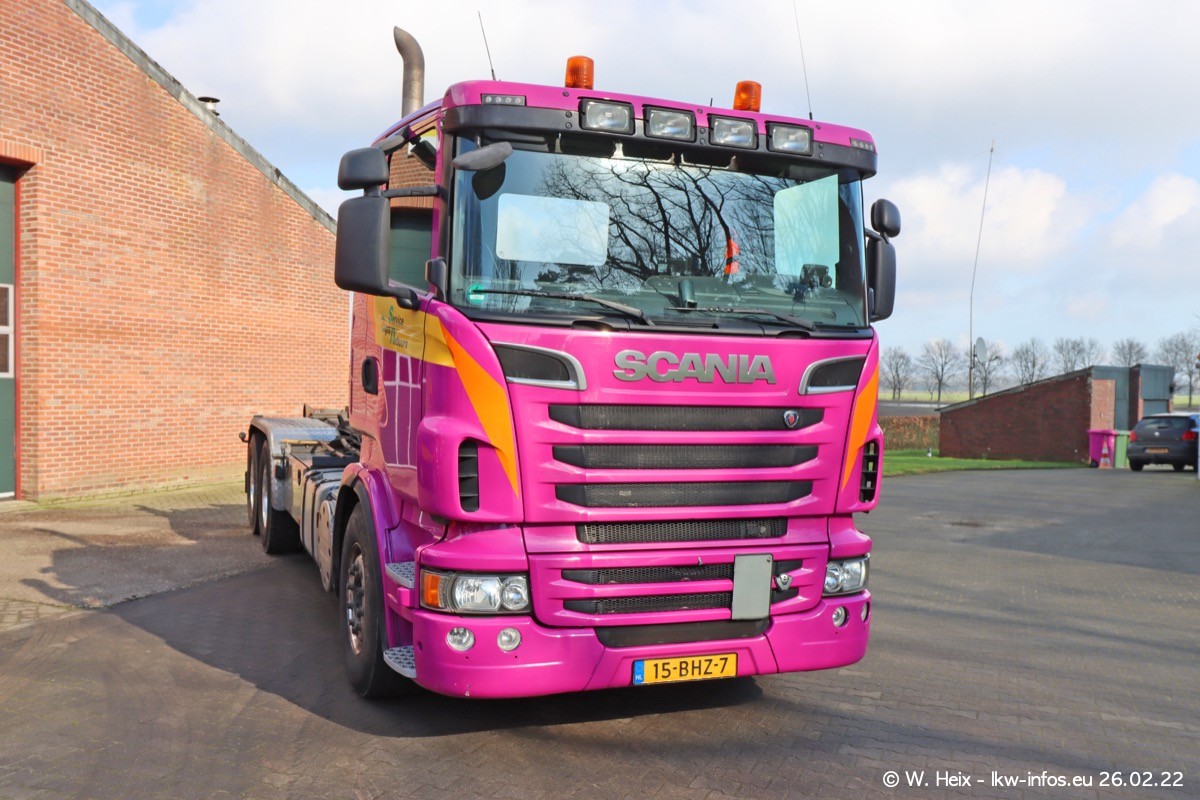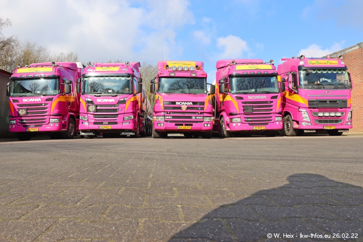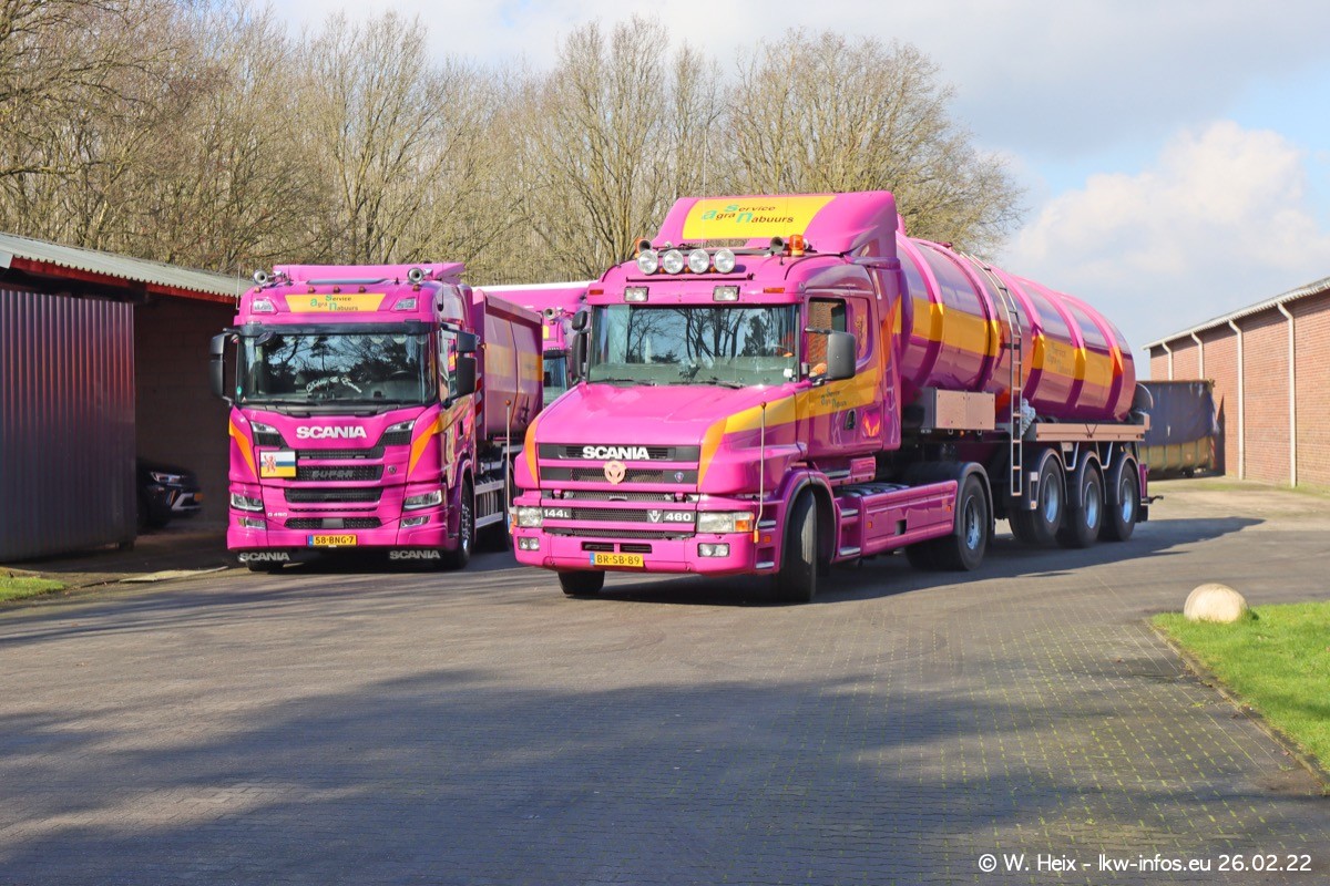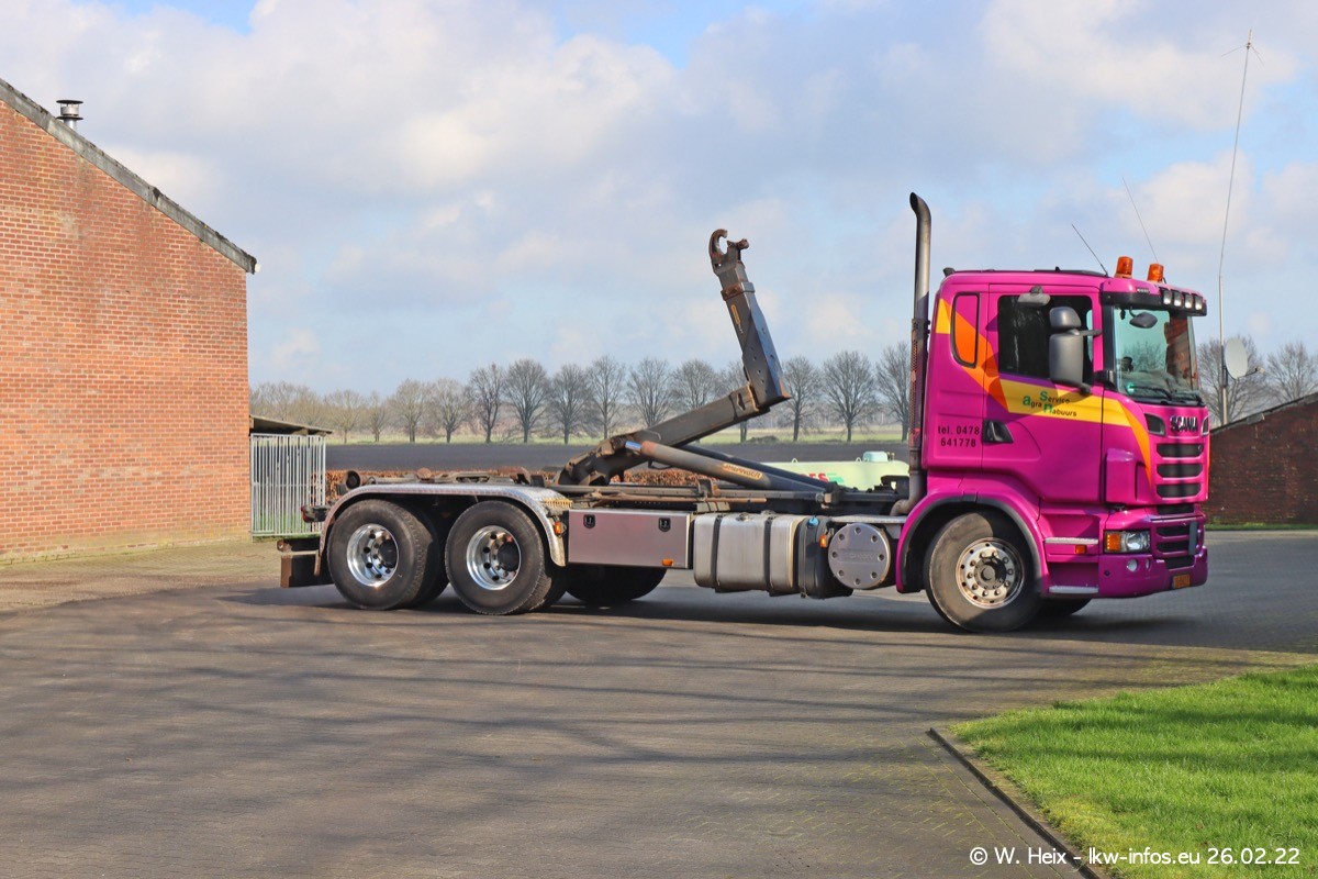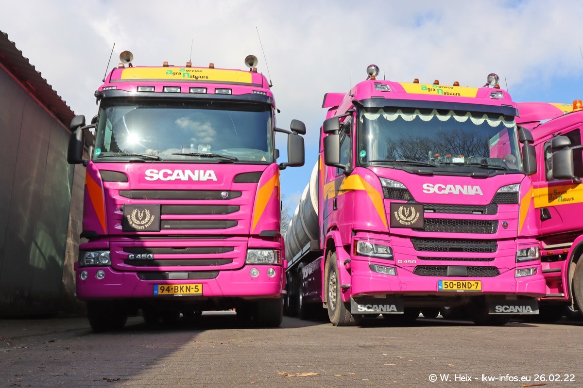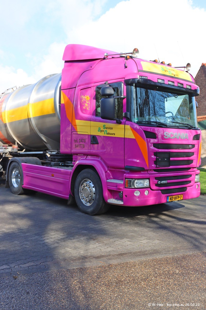 Mein erster Besuch bei der Firma Agra Service Nabuurs in Overloon (in der Nähe von Boxmeer gelegen) begann direkt mit einem schönen Fotoshooting, mit dem ich so nicht gerechnet bzw,. das ich so nicht geplant hatte. Aber gerade so macht das Hobby Spaß! Alle sieben LKW standen frisch gewaschen nebeneinander auf dem Hof. Sechs davon sind im täglichen Einsatz. Der SCANIA T 144 L 460 V8 Hauber wird nur noch als Ersatz und für Hobbyzwecke verwendet und ist inzwischen schon 21 (!) Jahre alt. Das Wetter war fast perfekt, wobei es gegen Ende des Fotoshootings leider wieder grau wurde, der Nebel kam langsam zurück.