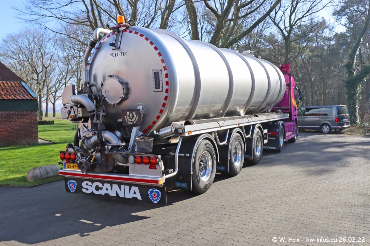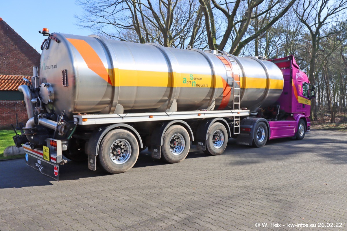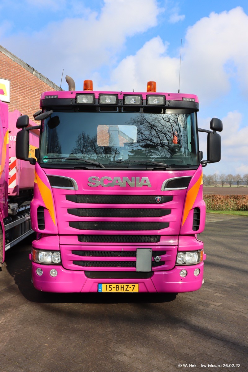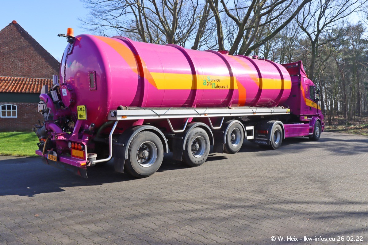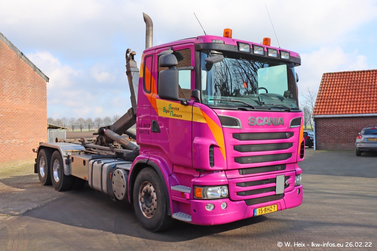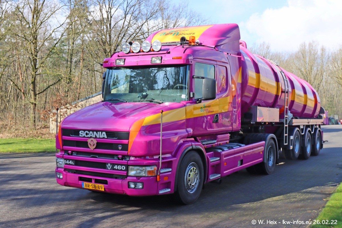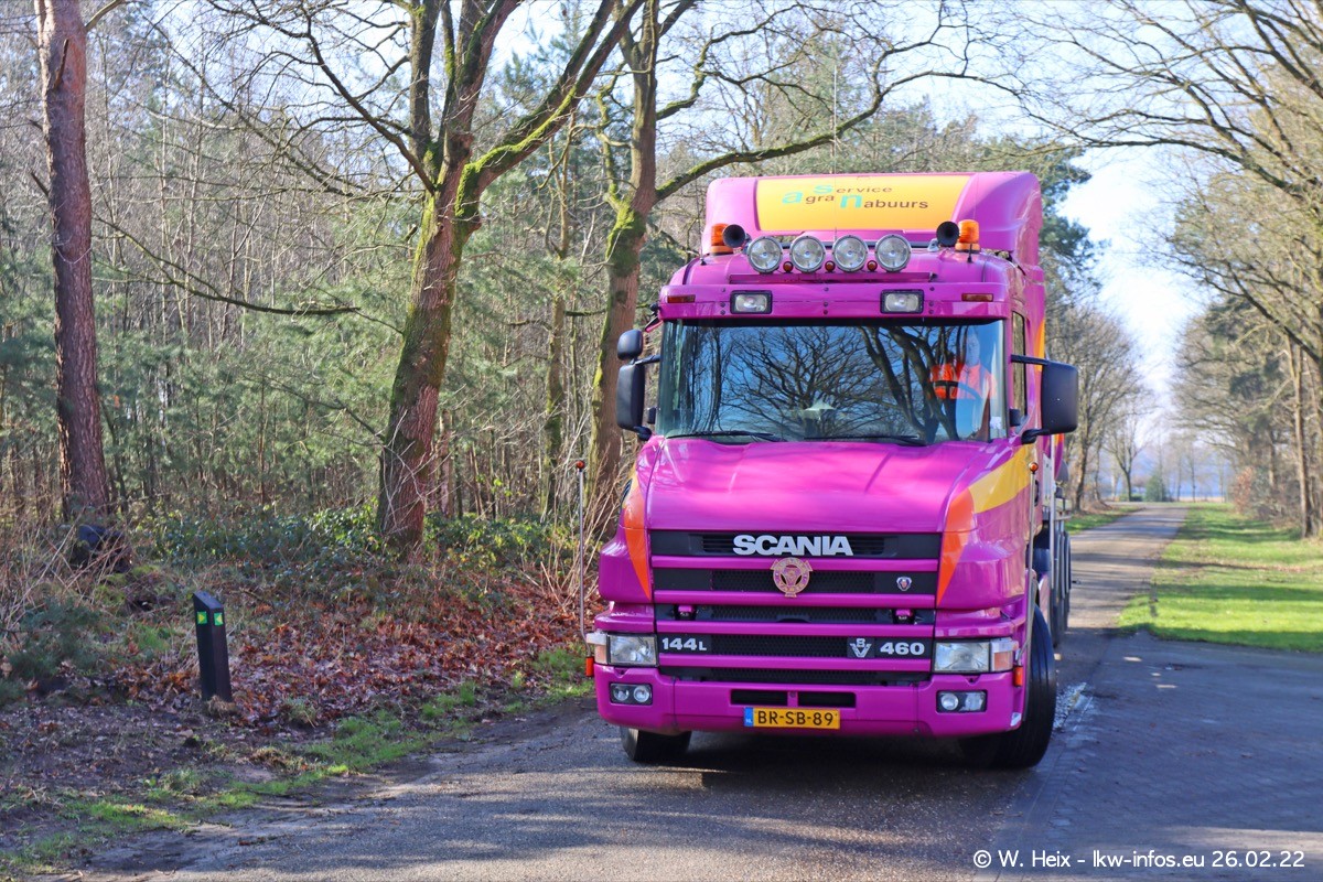 Mein erster Besuch bei der Firma Agra Service Nabuurs in Overloon (in der Nähe von Boxmeer gelegen) begann direkt mit einem schönen Fotoshooting, mit dem ich so nicht gerechnet bzw,. das ich so nicht geplant hatte. Aber gerade so macht das Hobby Spaß! Alle sieben LKW standen frisch gewaschen nebeneinander auf dem Hof. Sechs davon sind im täglichen Einsatz. Der SCANIA T 144 L 460 V8 Hauber wird nur noch als Ersatz und für Hobbyzwecke verwendet und ist inzwischen schon 21 (!) Jahre alt. Das Wetter war fast perfekt, wobei es gegen Ende des Fotoshootings leider wieder grau wurde, der Nebel kam langsam zurück.