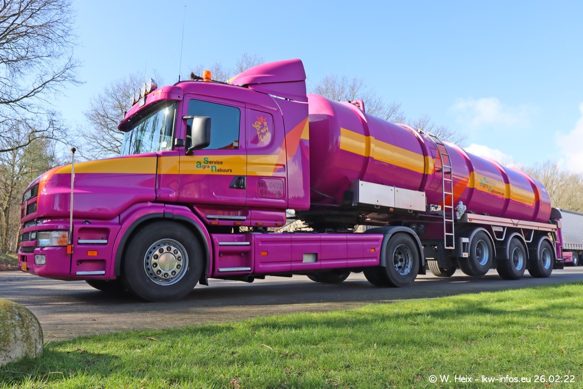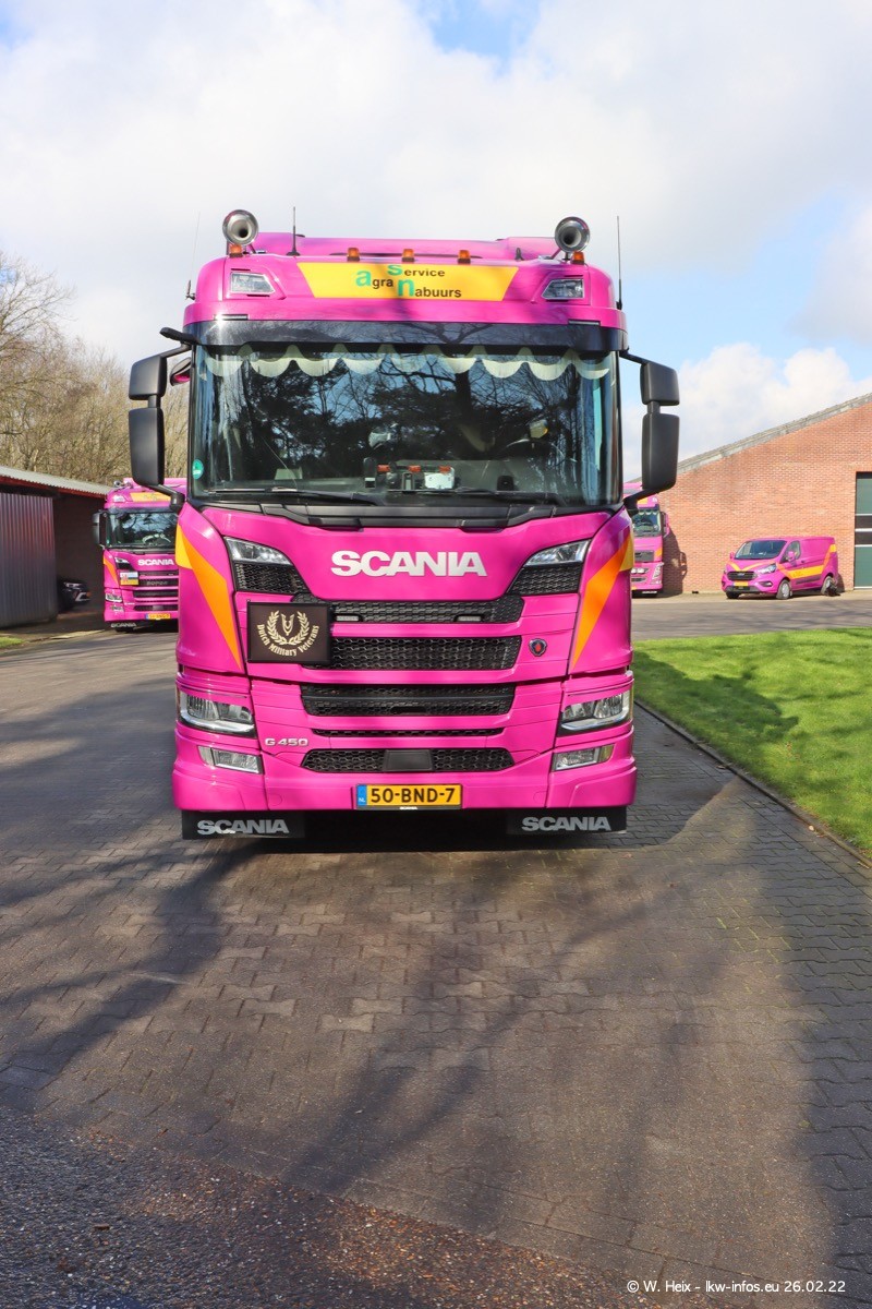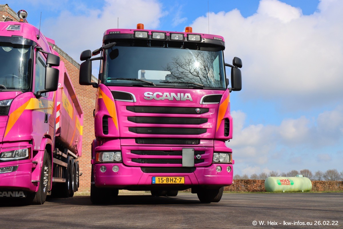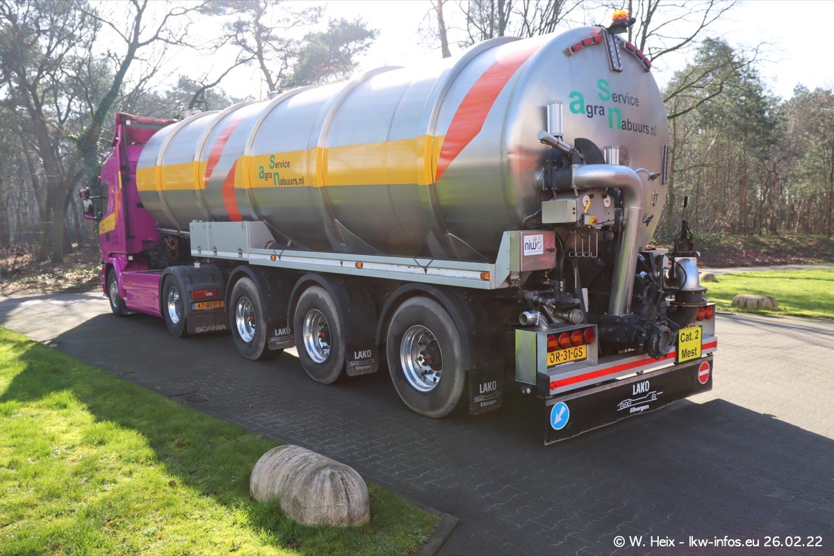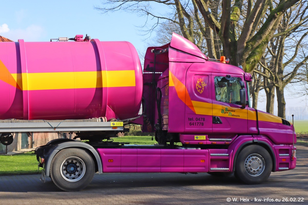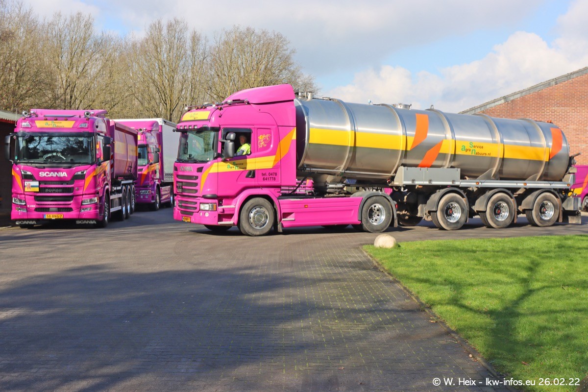 Mein erster Besuch bei der Firma Agra Service Nabuurs in Overloon (in der Nähe von Boxmeer gelegen) begann direkt mit einem schönen Fotoshooting, mit dem ich so nicht gerechnet bzw,. das ich so nicht geplant hatte. Aber gerade so macht das Hobby Spaß! Alle sieben LKW standen frisch gewaschen nebeneinander auf dem Hof. Sechs davon sind im täglichen Einsatz. Der SCANIA T 144 L 460 V8 Hauber wird nur noch als Ersatz und für Hobbyzwecke verwendet und ist inzwischen schon 21 (!) Jahre alt. Das Wetter war fast perfekt, wobei es gegen Ende des Fotoshootings leider wieder grau wurde, der Nebel kam langsam zurück.