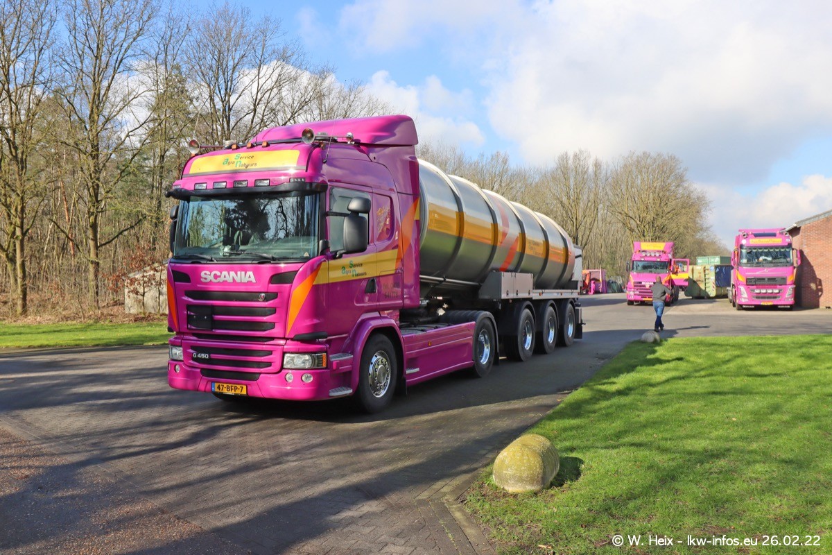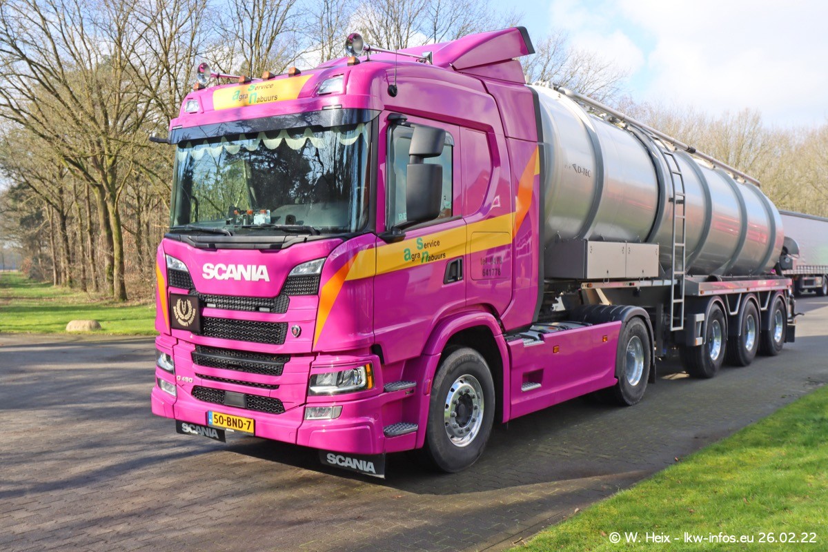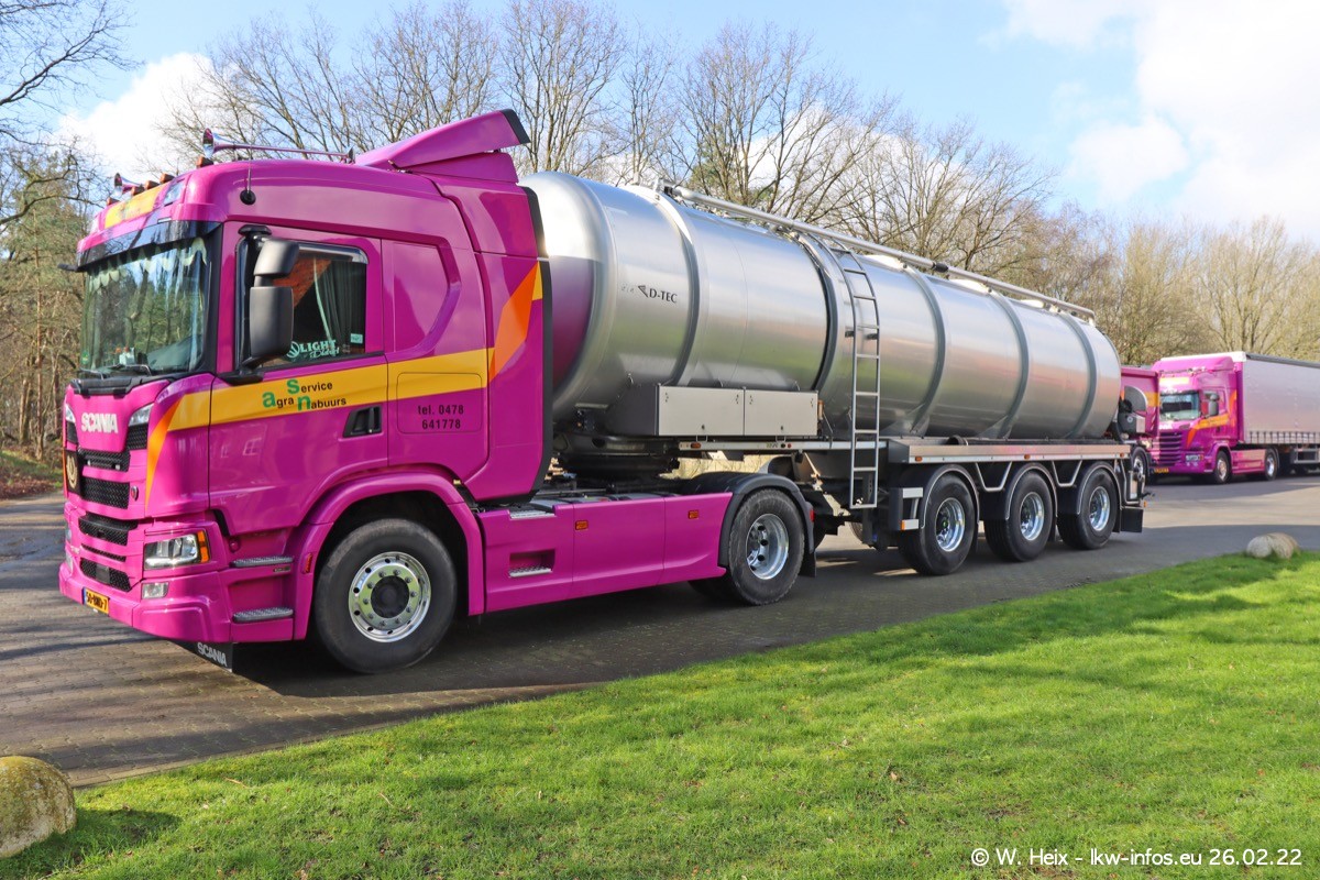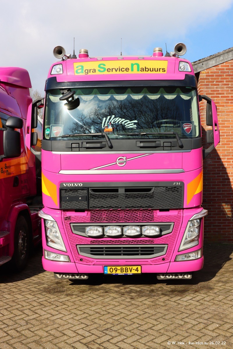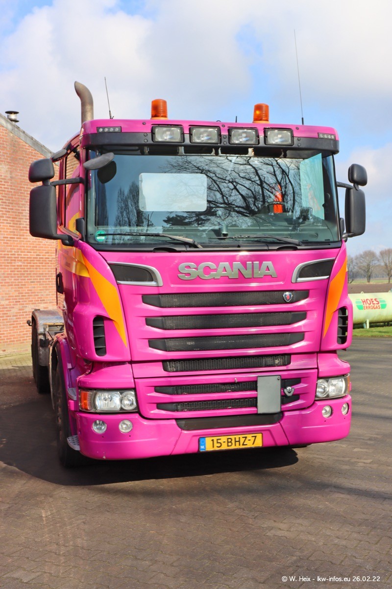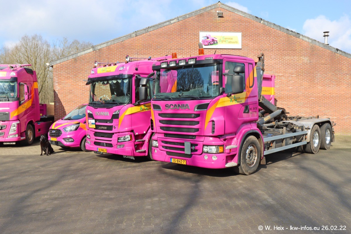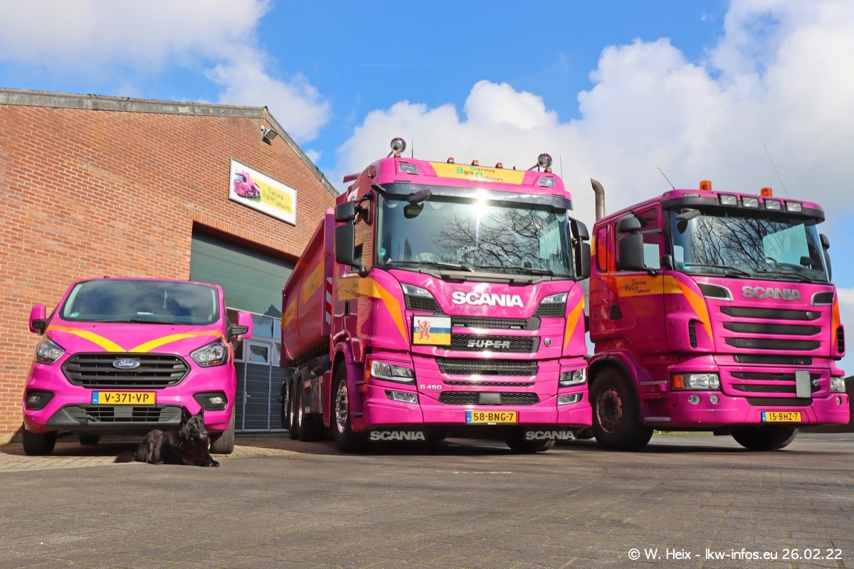 Mein erster Besuch bei der Firma Agra Service Nabuurs in Overloon (in der Nähe von Boxmeer gelegen) begann direkt mit einem schönen Fotoshooting, mit dem ich so nicht gerechnet bzw,. das ich so nicht geplant hatte. Aber gerade so macht das Hobby Spaß! Alle sieben LKW standen frisch gewaschen nebeneinander auf dem Hof. Sechs davon sind im täglichen Einsatz. Der SCANIA T 144 L 460 V8 Hauber wird nur noch als Ersatz und für Hobbyzwecke verwendet und ist inzwischen schon 21 (!) Jahre alt. Das Wetter war fast perfekt, wobei es gegen Ende des Fotoshootings leider wieder grau wurde, der Nebel kam langsam zurück.