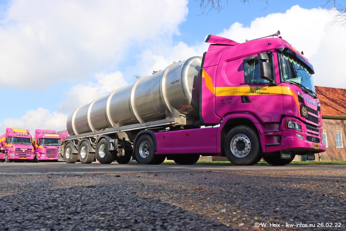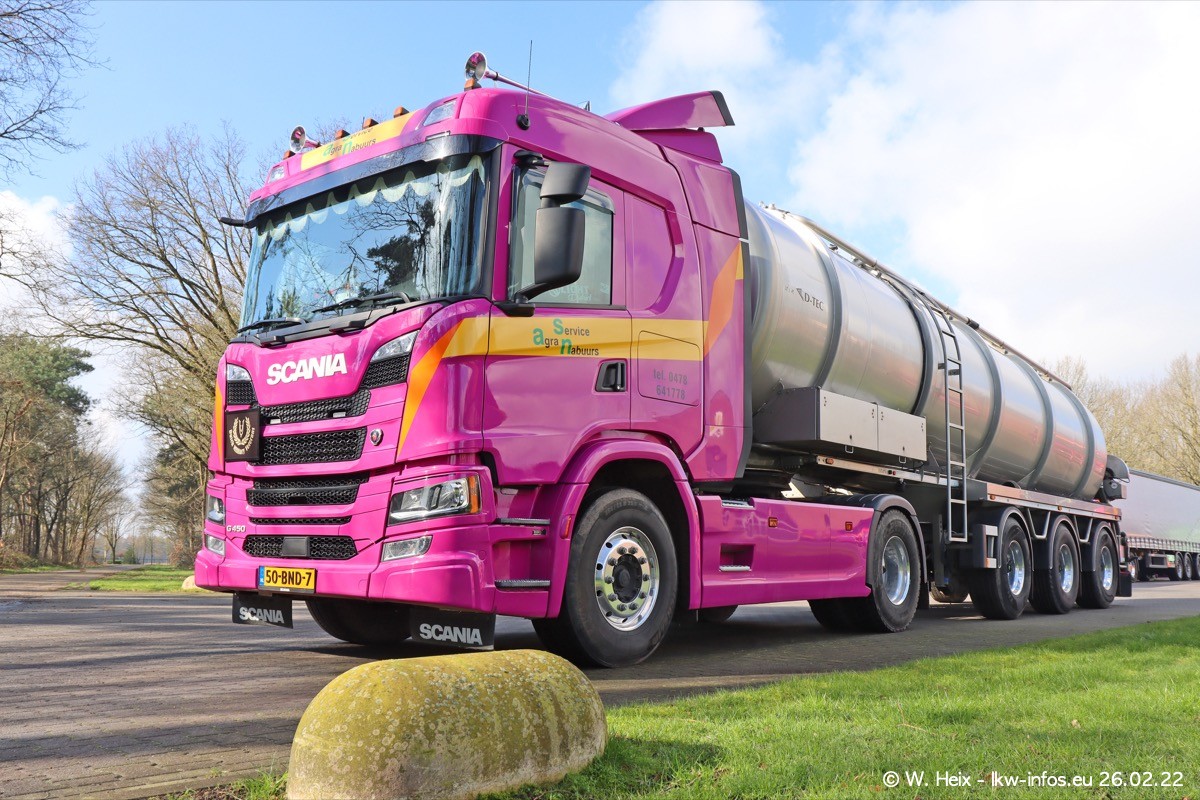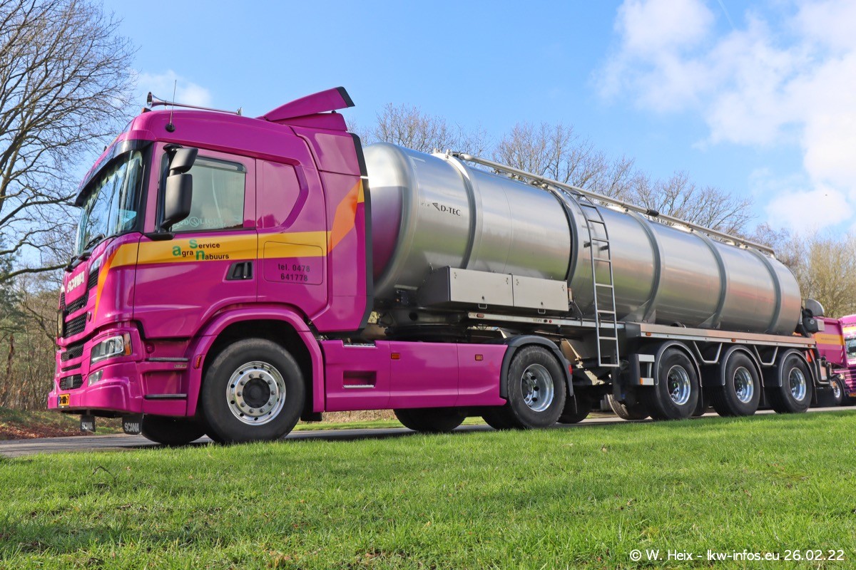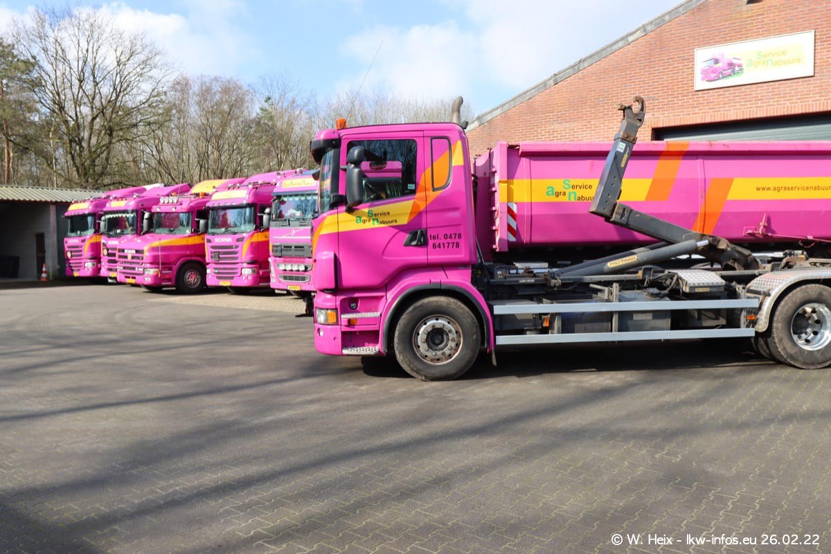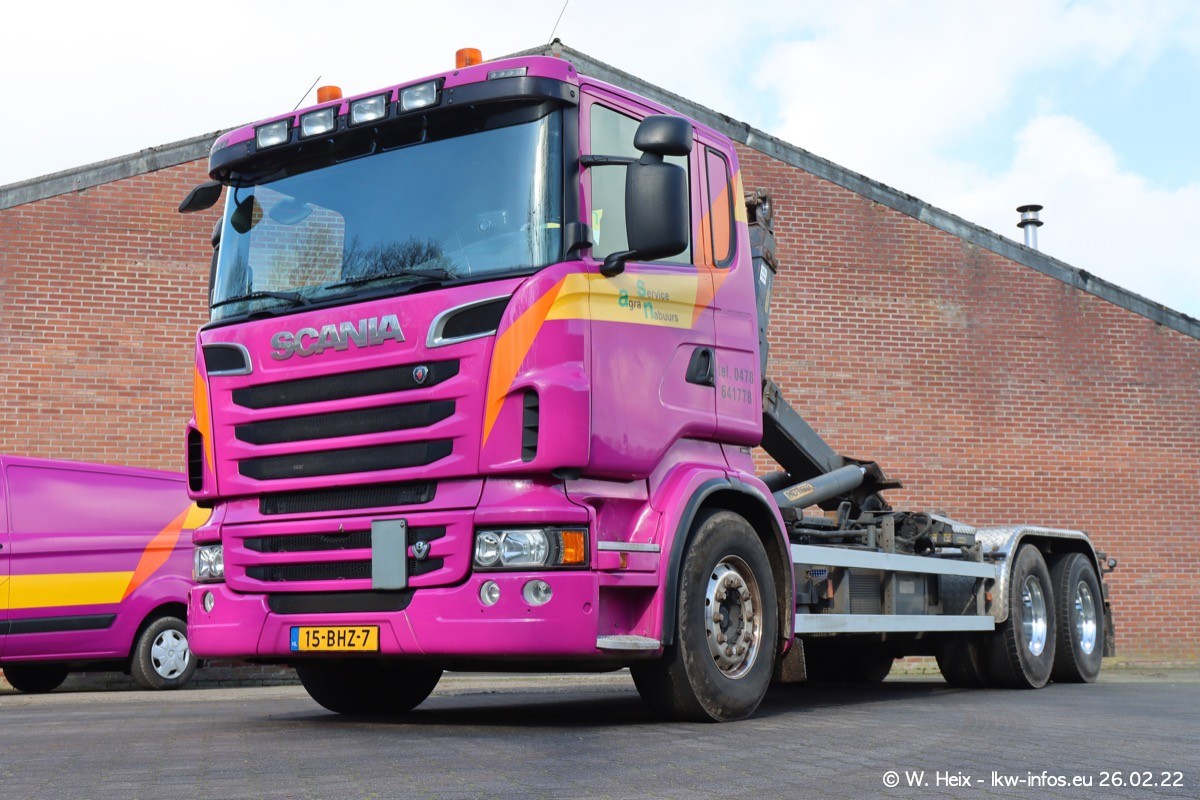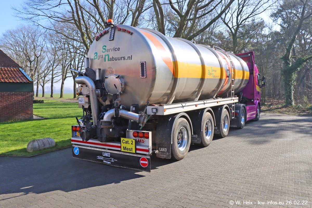Mein erster Besuch bei der Firma Agra Service Nabuurs in Overloon (in der Nähe von Boxmeer gelegen) begann direkt mit einem schönen Fotoshooting, mit dem ich so nicht gerechnet bzw,. das ich so nicht geplant hatte. Aber gerade so macht das Hobby Spaß! Alle sieben LKW standen frisch gewaschen nebeneinander auf dem Hof. Sechs davon sind im täglichen Einsatz. Der SCANIA T 144 L 460 V8 Hauber wird nur noch als Ersatz und für Hobbyzwecke verwendet und ist inzwischen schon 21 (!) Jahre alt. Das Wetter war fast perfekt, wobei es gegen Ende des Fotoshootings leider wieder grau wurde, der Nebel kam langsam zurück.