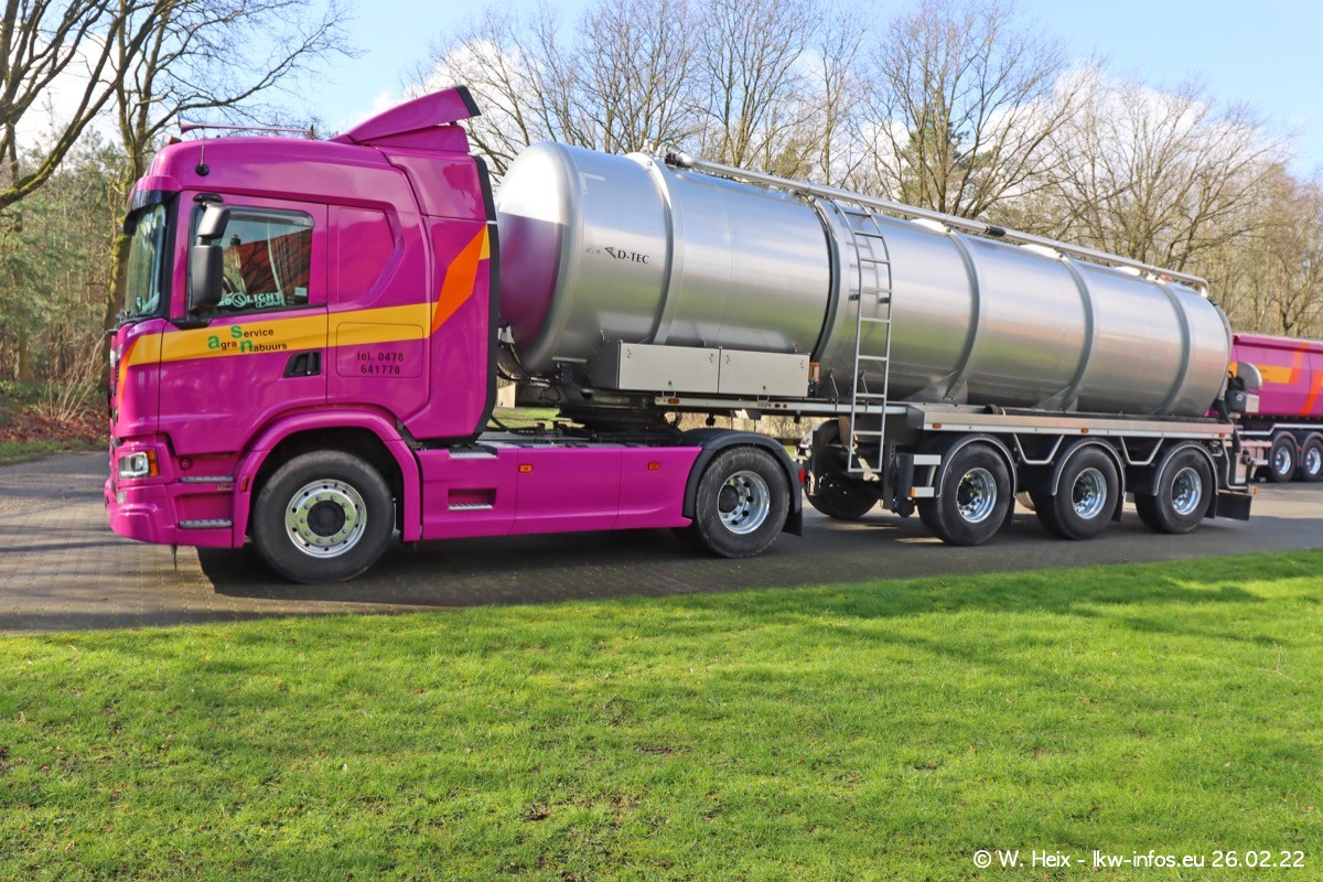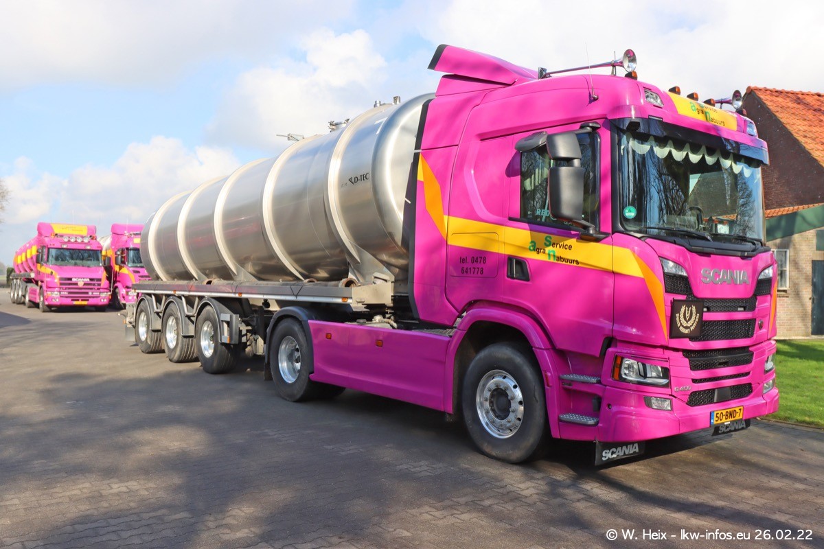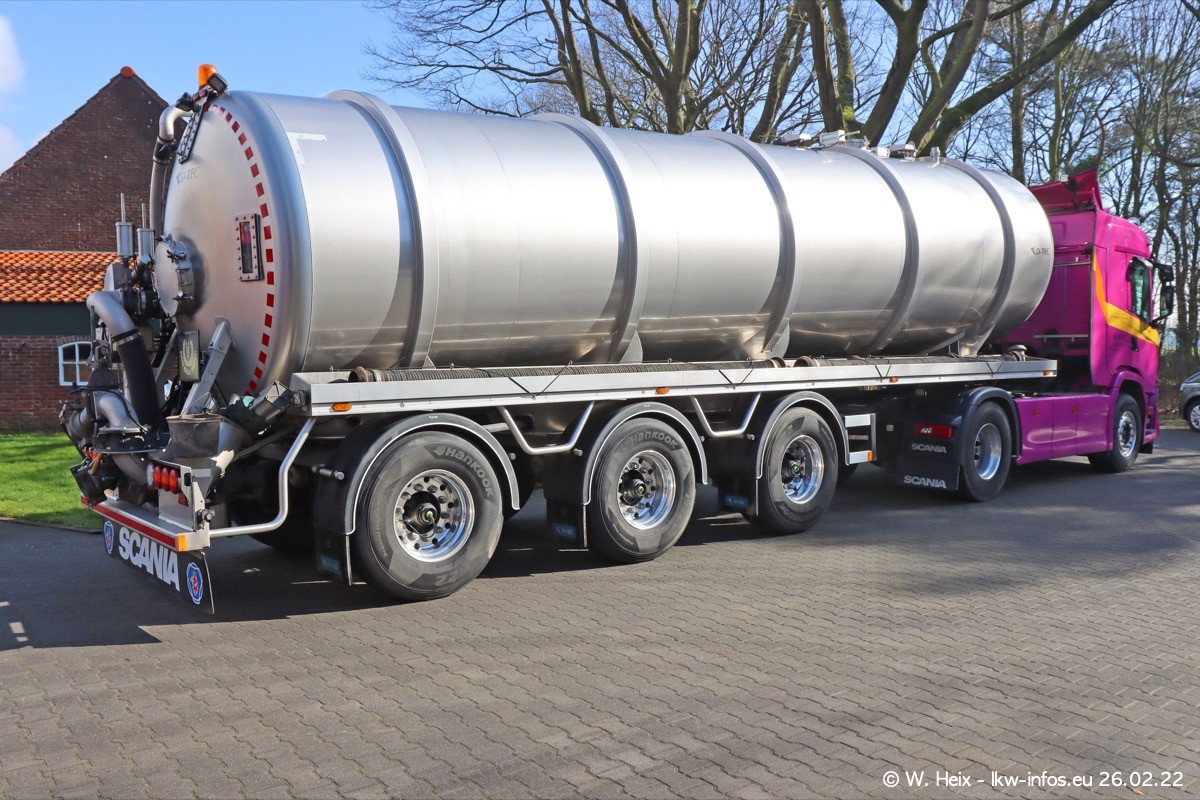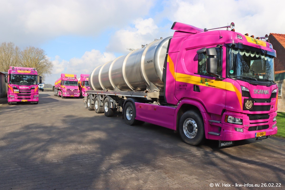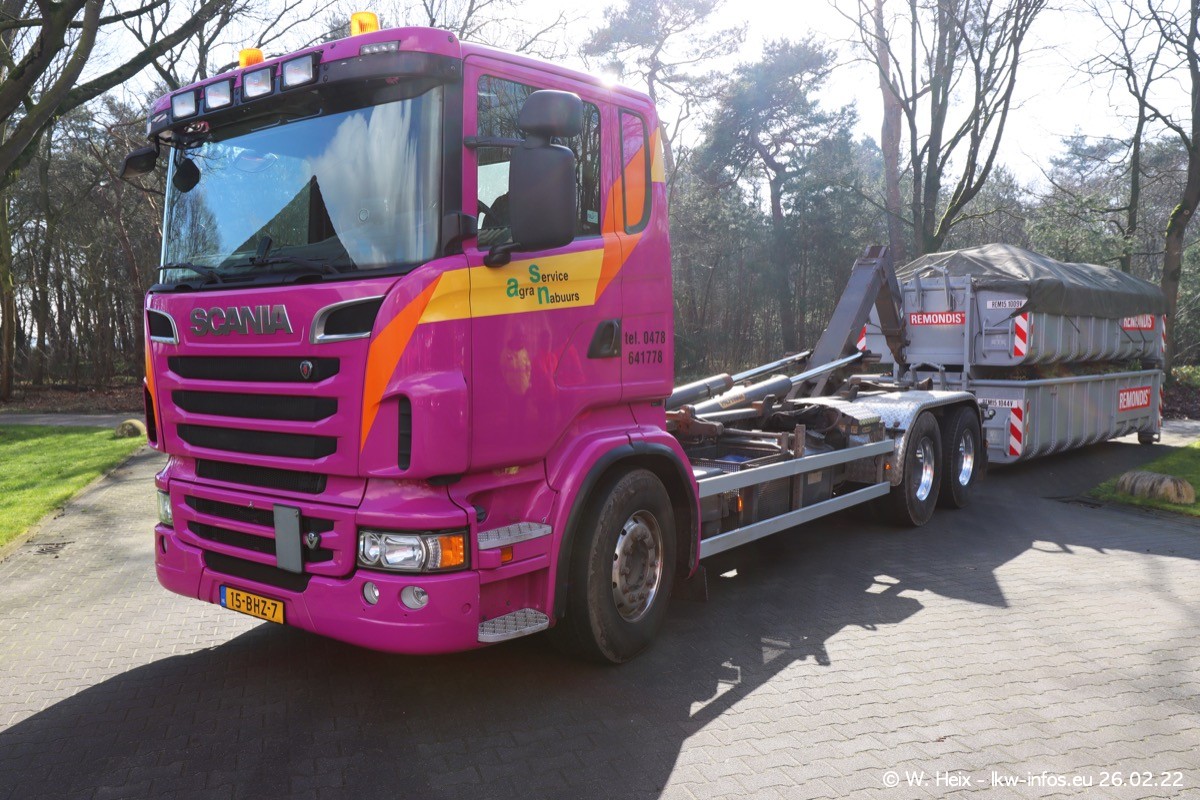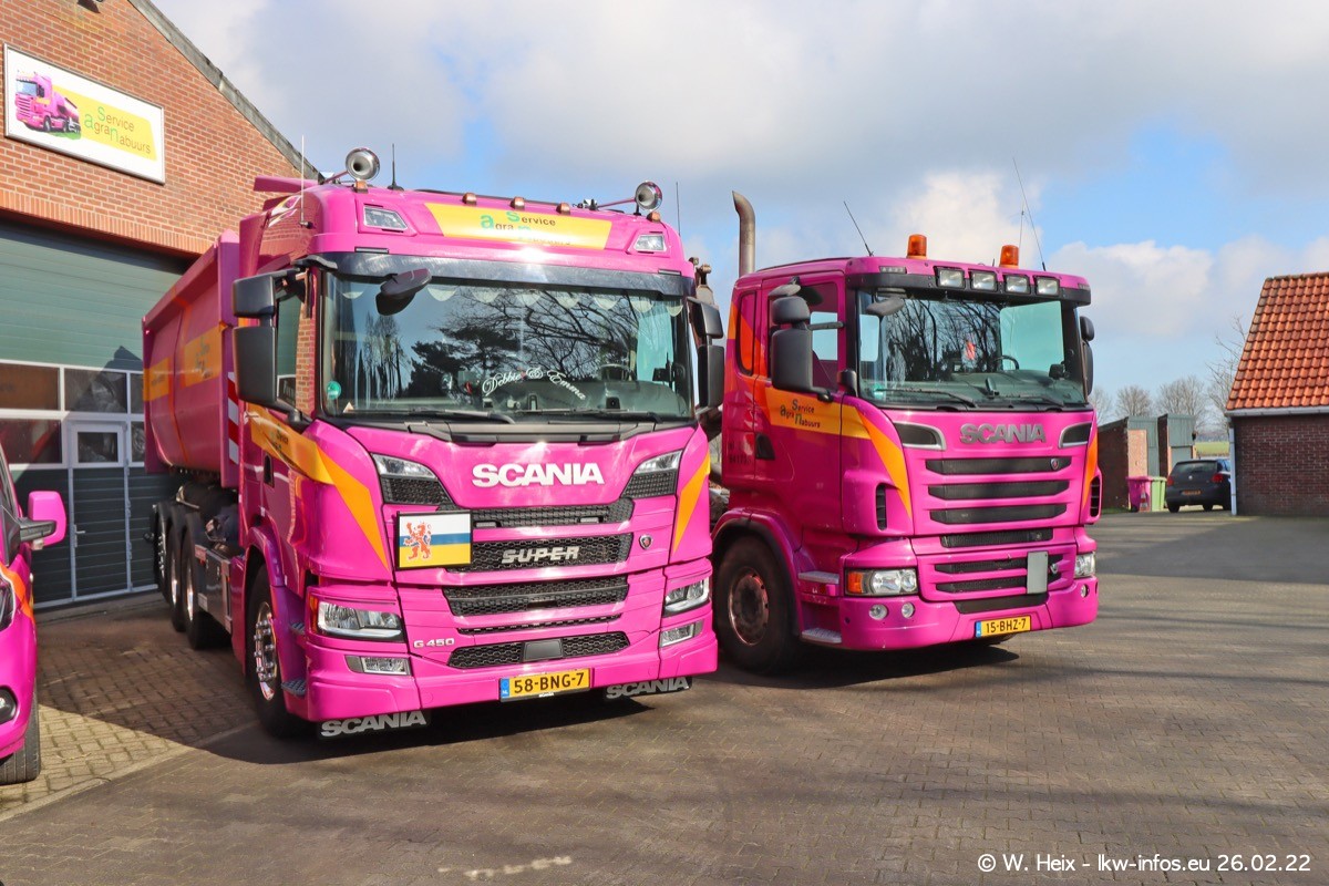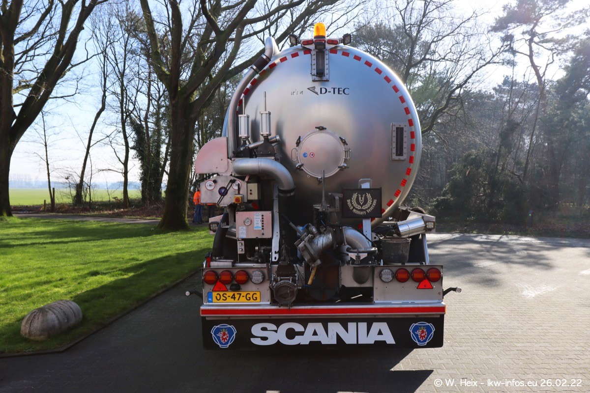 Mein erster Besuch bei der Firma Agra Service Nabuurs in Overloon (in der Nähe von Boxmeer gelegen) begann direkt mit einem schönen Fotoshooting, mit dem ich so nicht gerechnet bzw,. das ich so nicht geplant hatte. Aber gerade so macht das Hobby Spaß! Alle sieben LKW standen frisch gewaschen nebeneinander auf dem Hof. Sechs davon sind im täglichen Einsatz. Der SCANIA T 144 L 460 V8 Hauber wird nur noch als Ersatz und für Hobbyzwecke verwendet und ist inzwischen schon 21 (!) Jahre alt. Das Wetter war fast perfekt, wobei es gegen Ende des Fotoshootings leider wieder grau wurde, der Nebel kam langsam zurück.